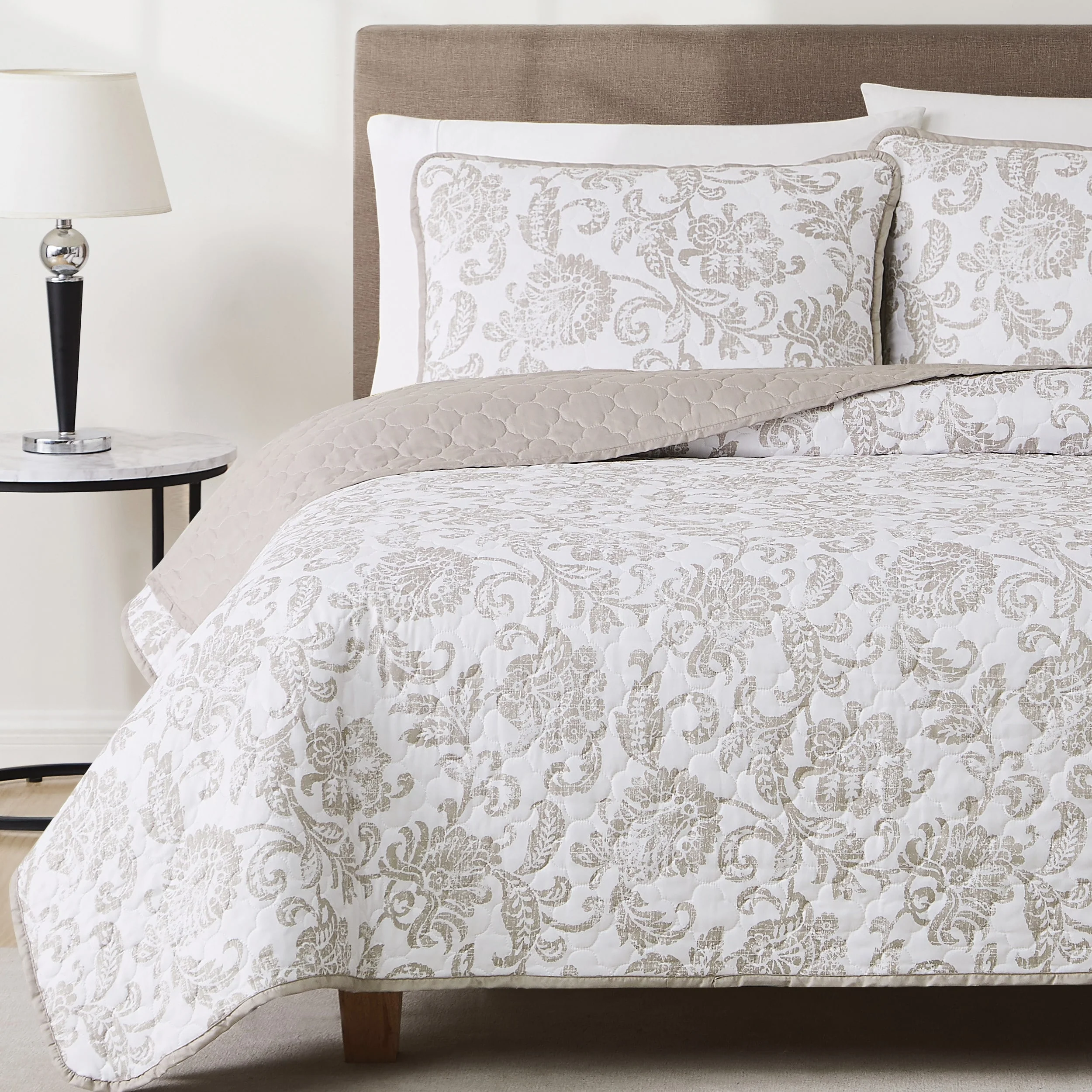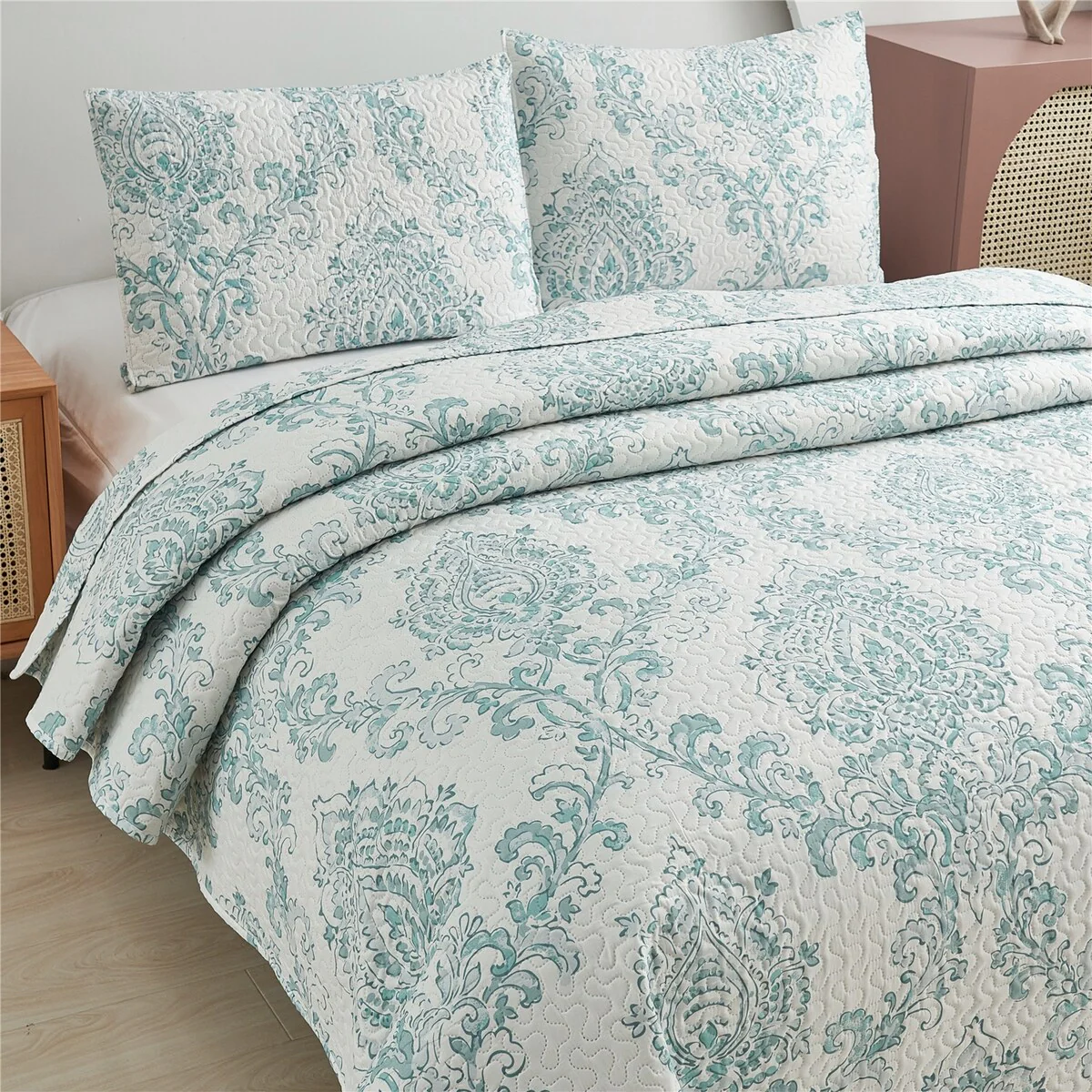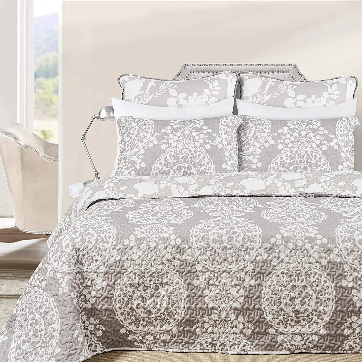 DriftAway 3 Piece Samantha Reversible Quilt Set Bedspreads Coverlets Floral Medallion Pattern Cover Prewashed