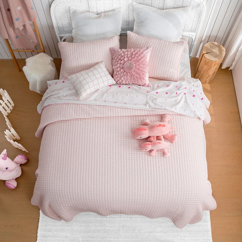 Coverlet Set: Light Grey, Sheet Set: White - Twin XL