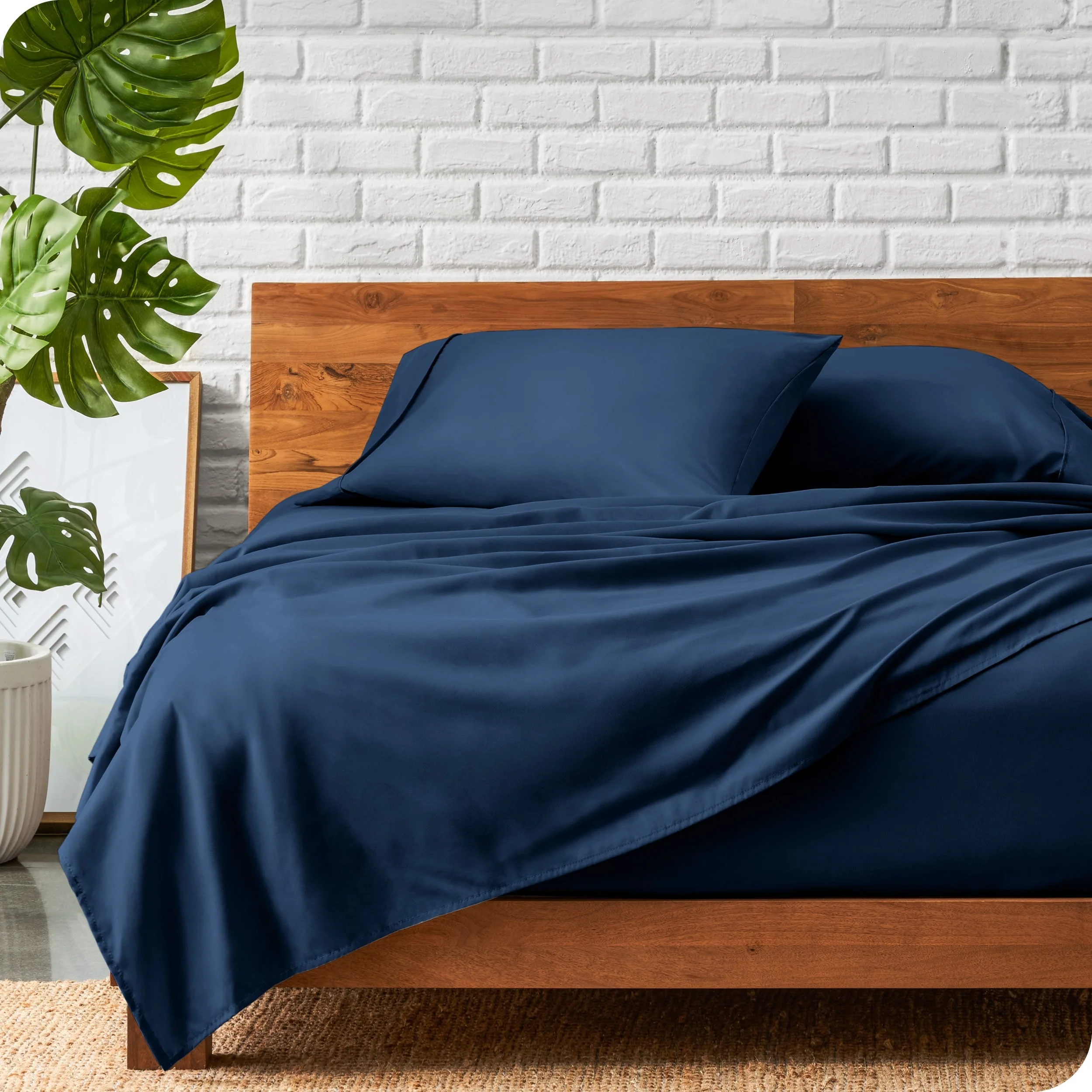 Coverlet Set: Dark Blue, Sheet Set: White - Twin XL
