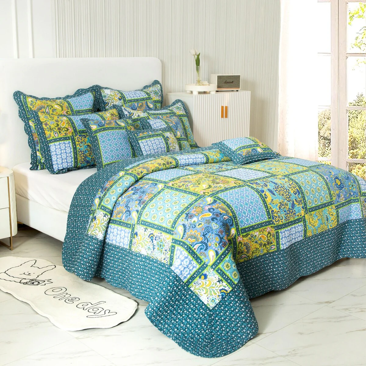 Coverlet Set: Coronet Blue, Sheet Set: White - Twin