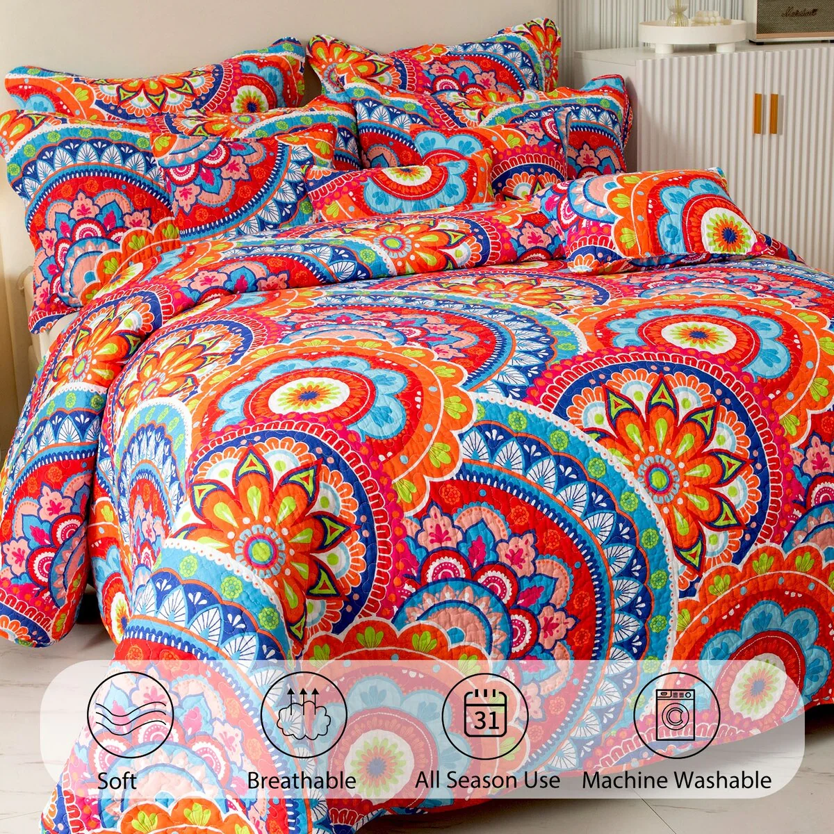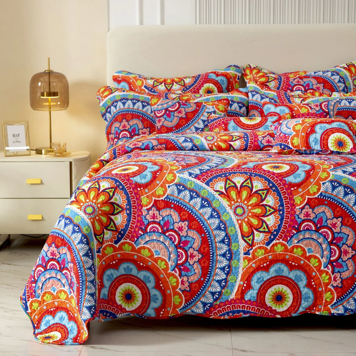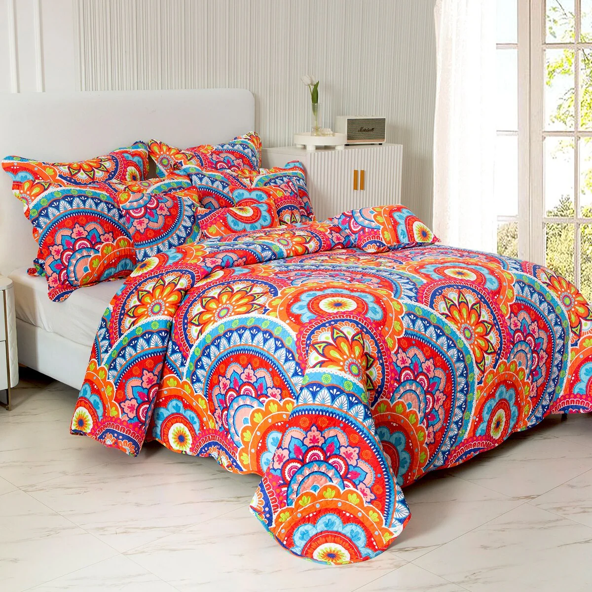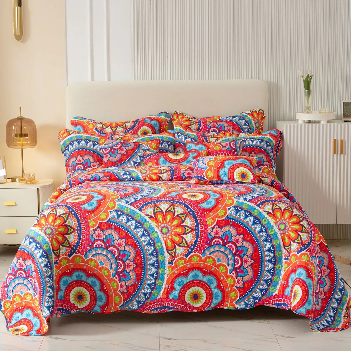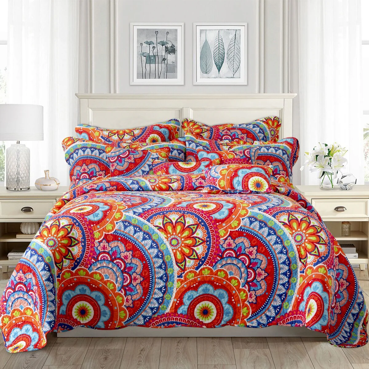 Coverlet Set: Red, Sheet Set: White - Queen