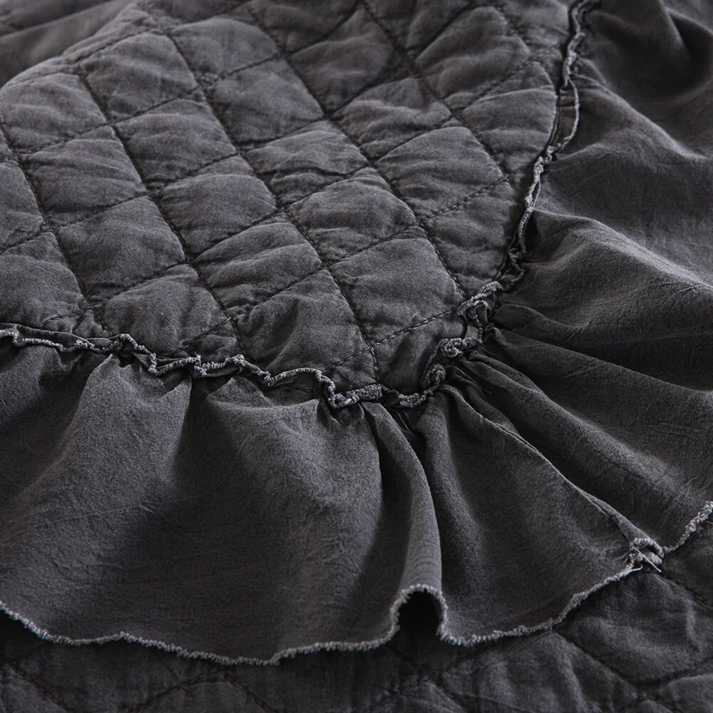 Coverlet Set: Black, Sheet Set: Grey - Queen