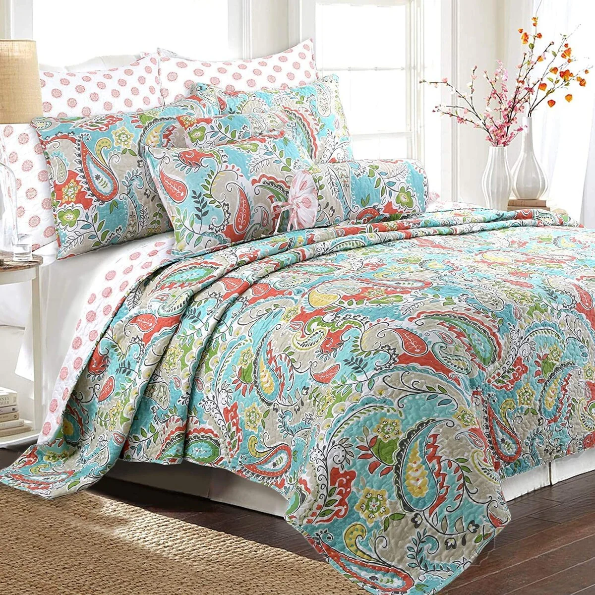 Coverlet Set: Red, Sheet Set: Grey - Queen