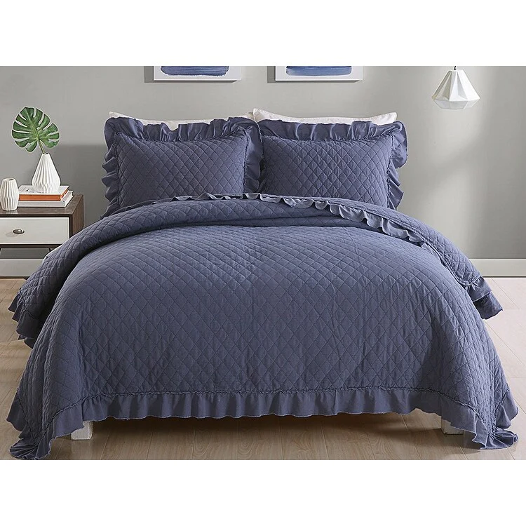 Coverlet Set: Dark Blue, Sheet Set: Grey - Queen