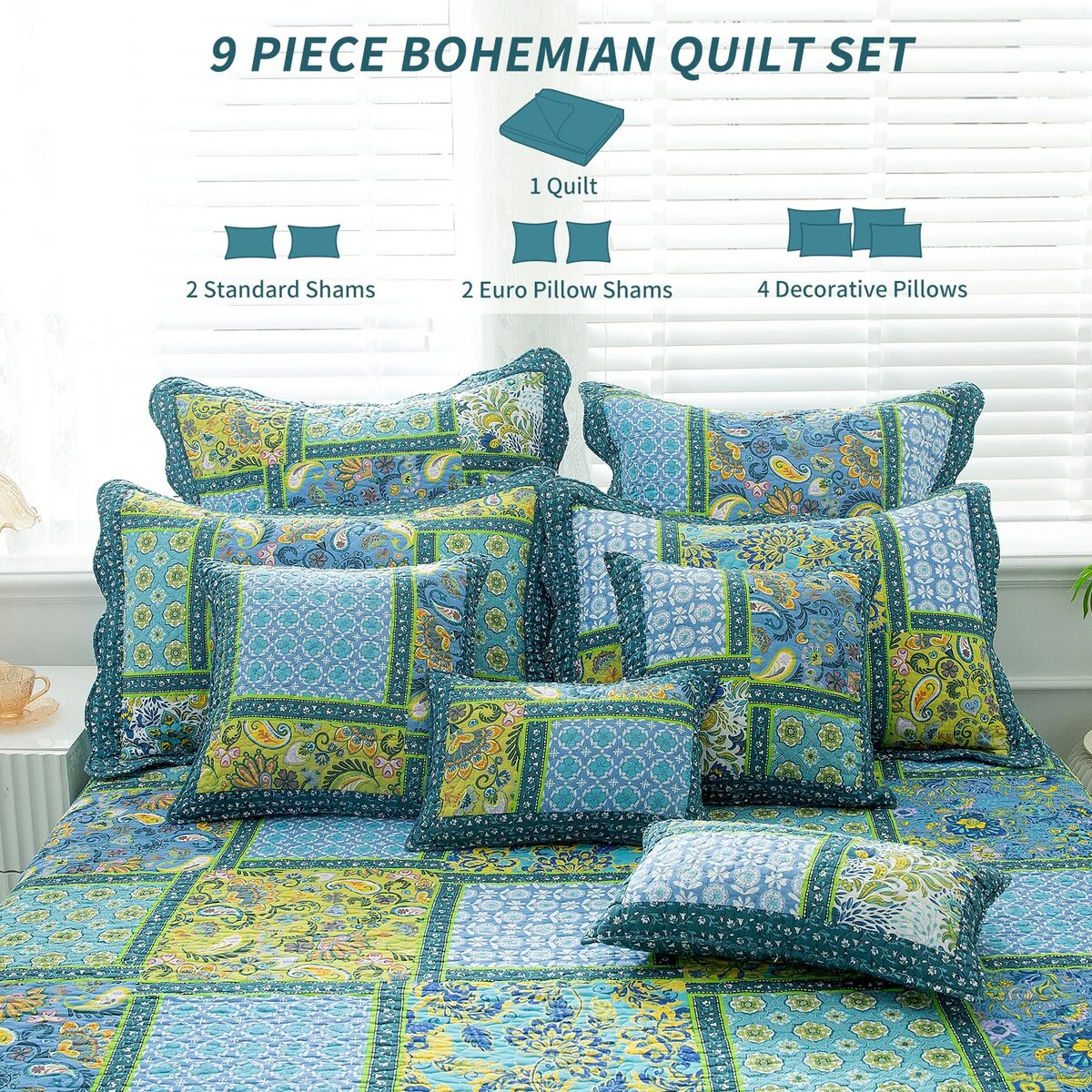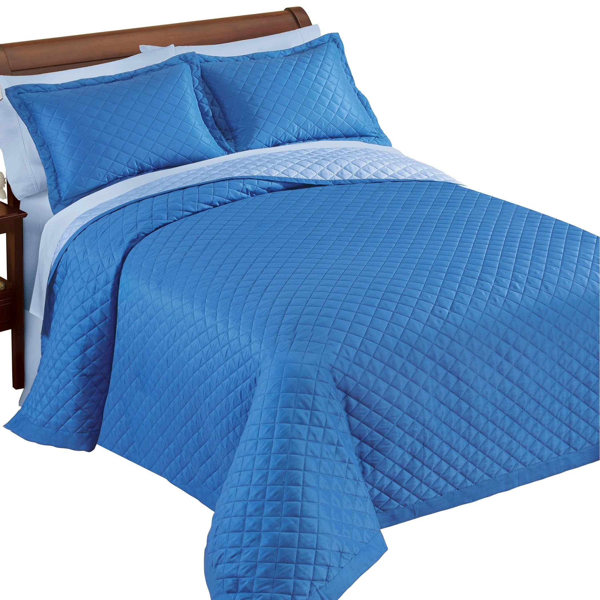 Coverlet Set: Dark Blue, Sheet Set: Light Blue - Queen