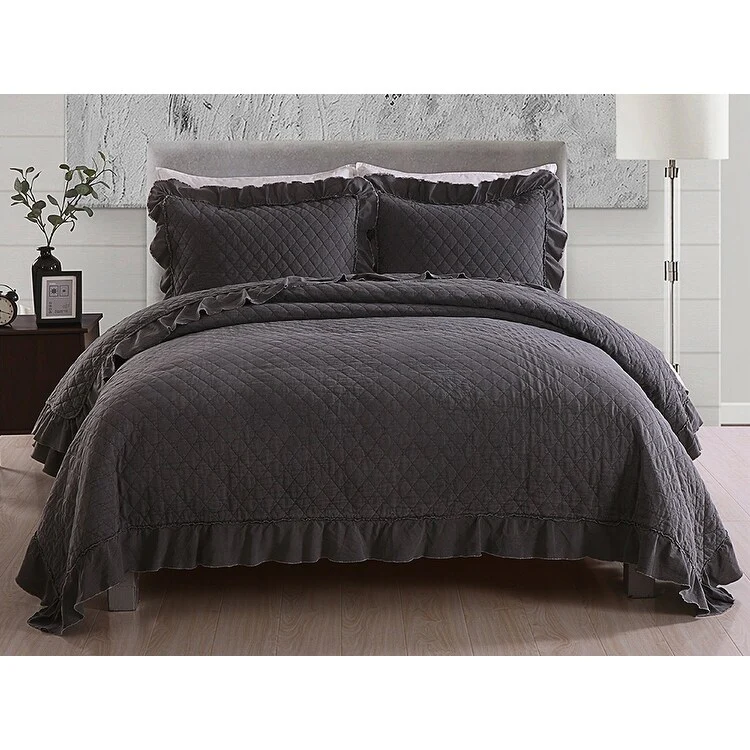 Coverlet Set: Grey, Sheet Set: Black - Queen