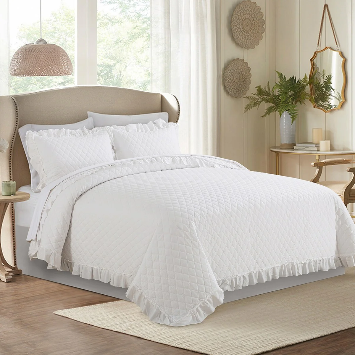 Coverlet Set: White, Sheet Set: White - Queen
