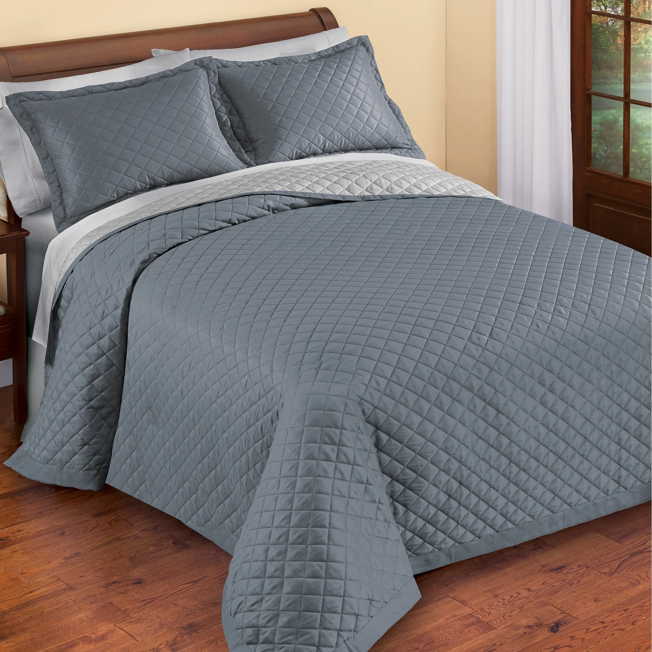 Coverlet Set: Grey, Sheet Set: Light Grey - King