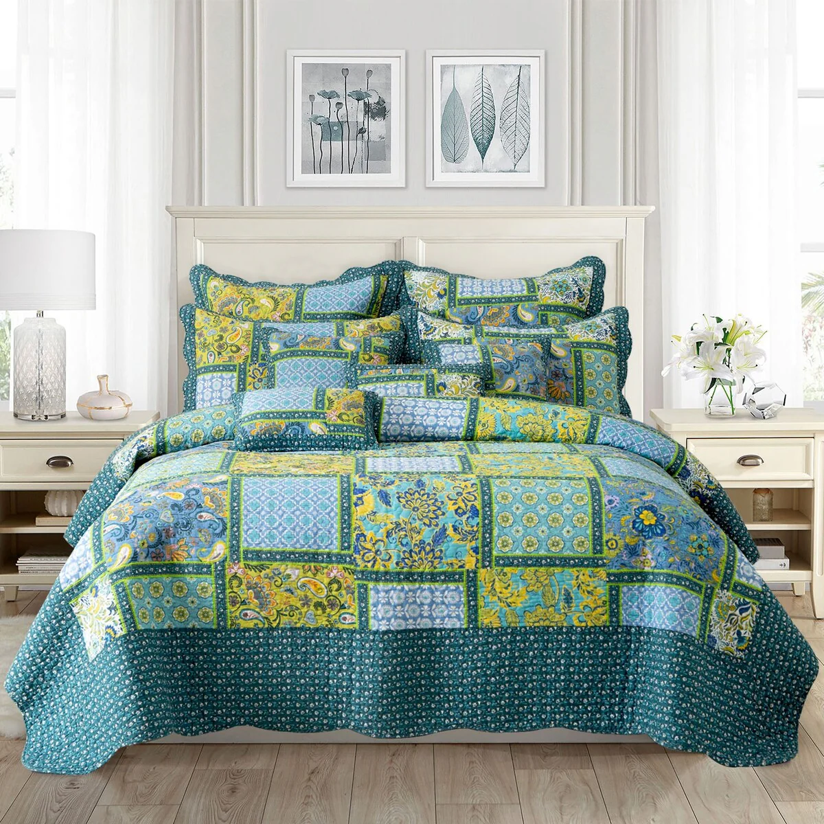 Coverlet Set: White, Sheet Set: Grey - Queen