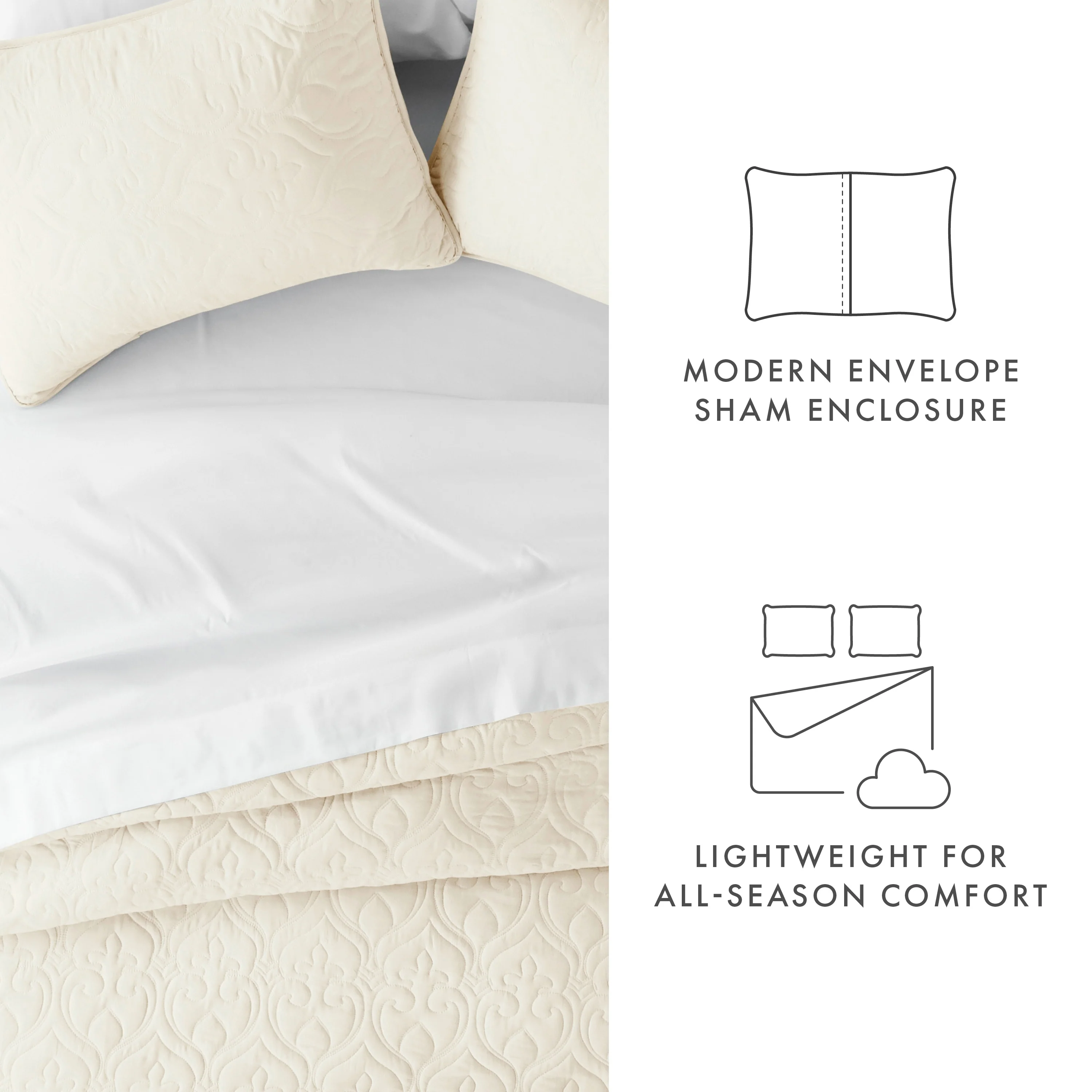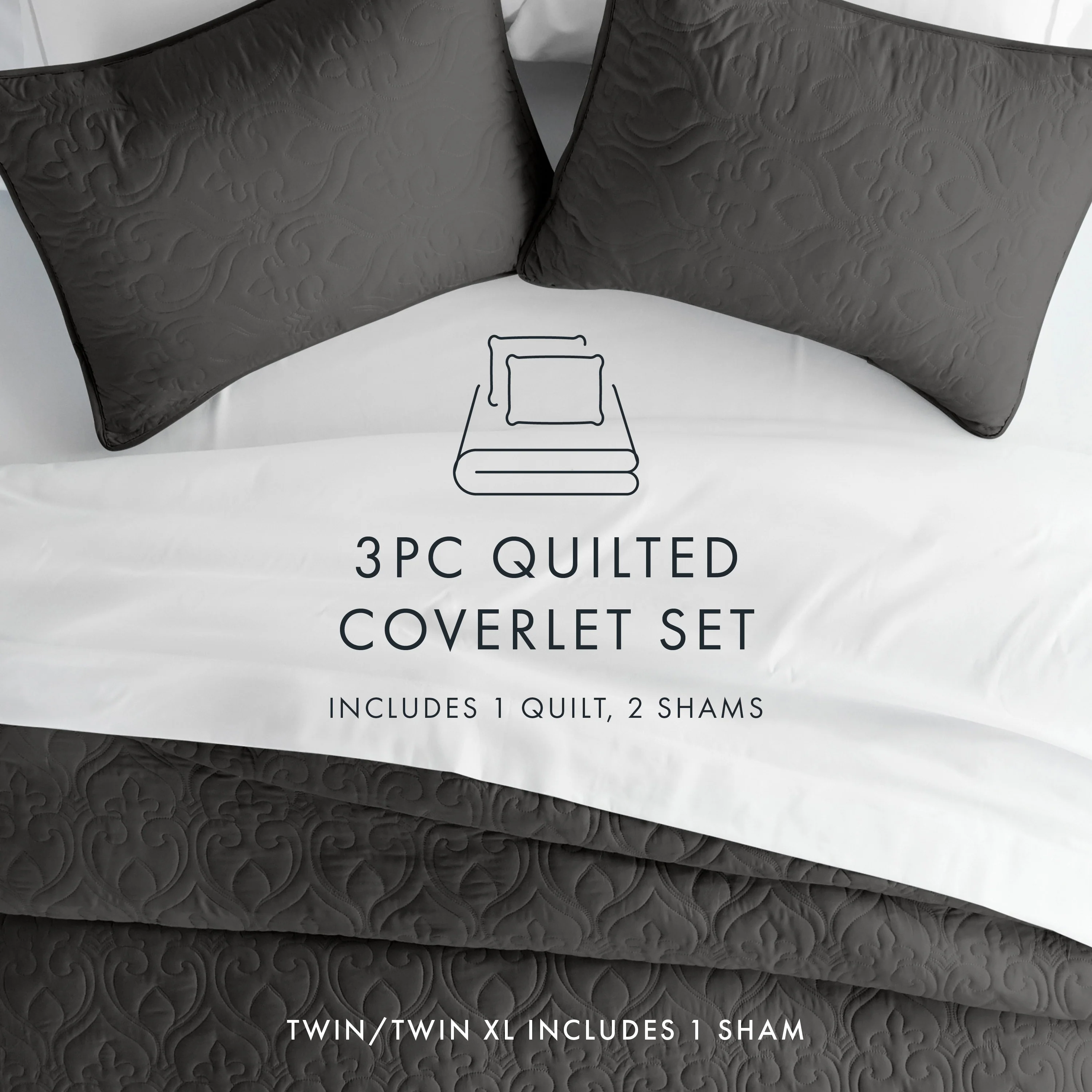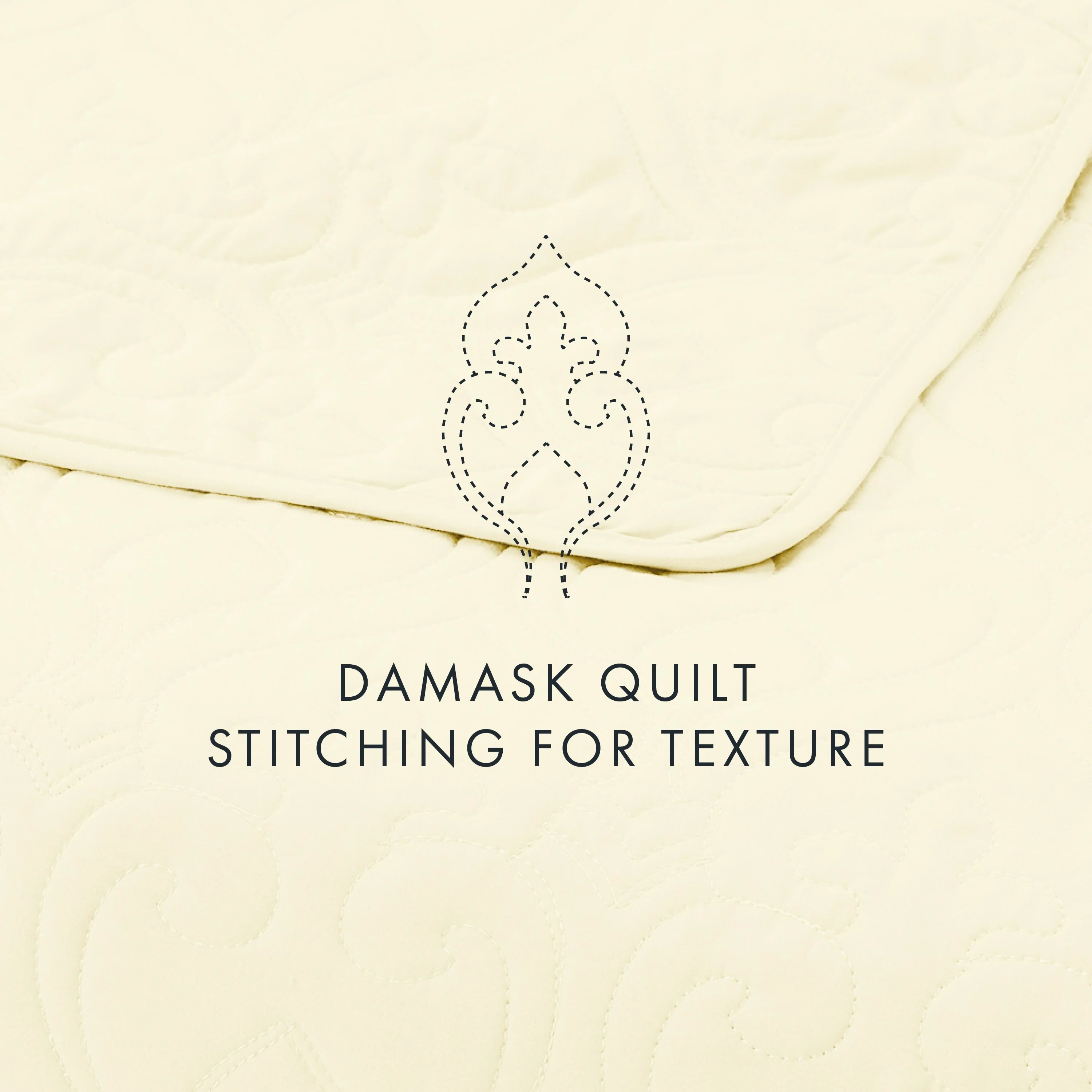 Soft Essentials Premium Ultra Soft Damask Pattern Quilted Coverlet Set