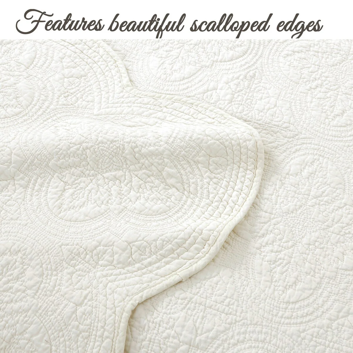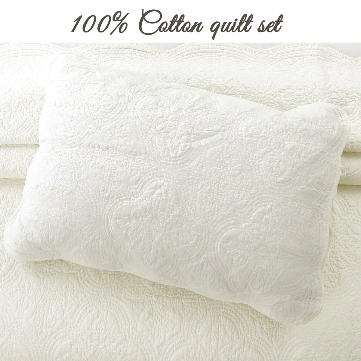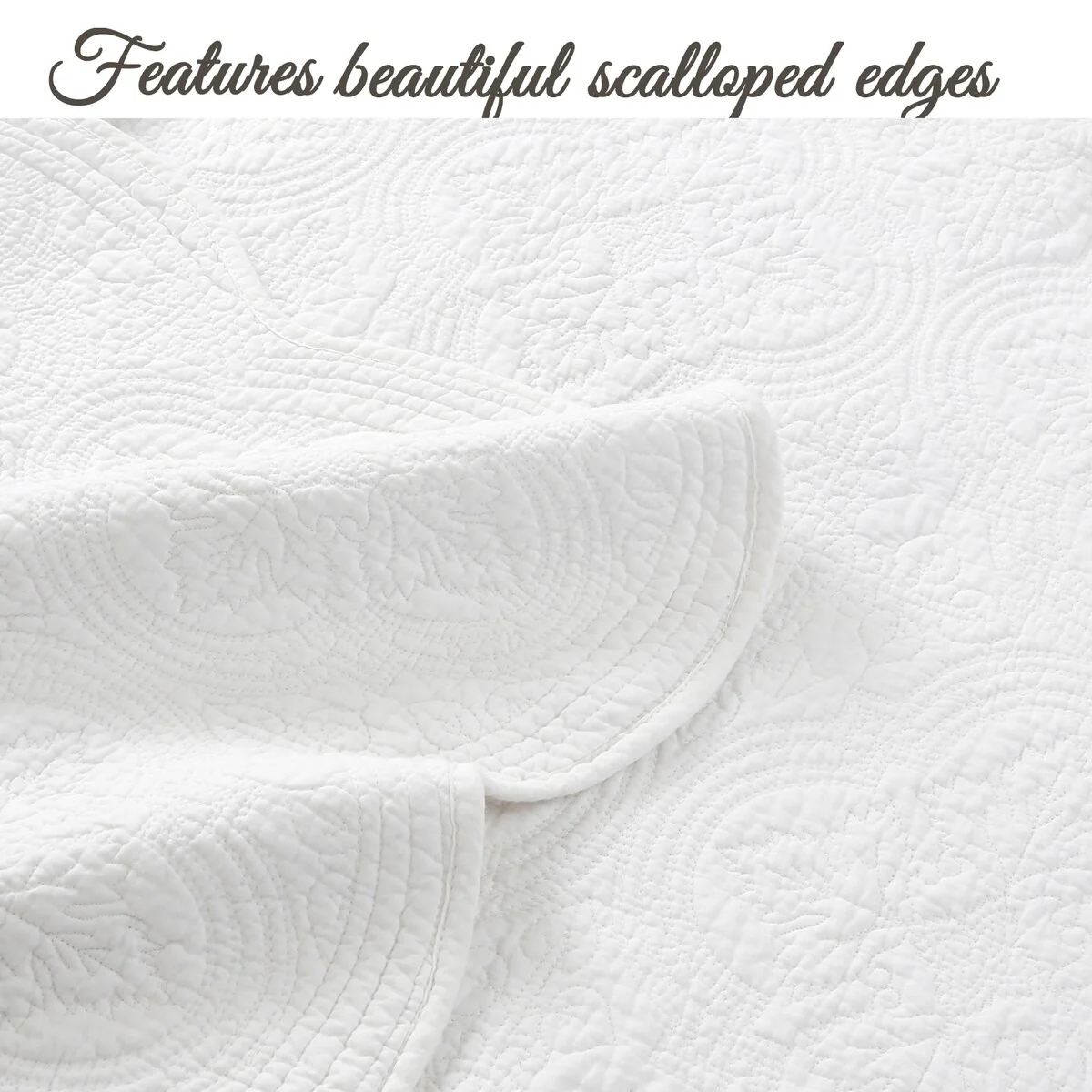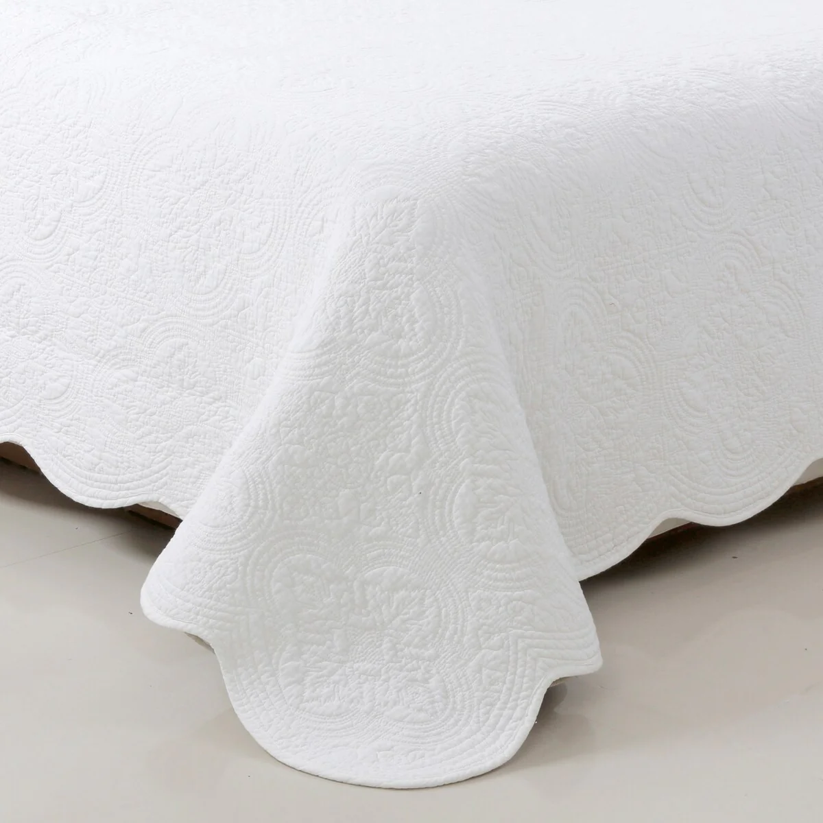 Blantyre Scalloped Edge White Cotton 3-piece Oversized Quilt Bedding Set