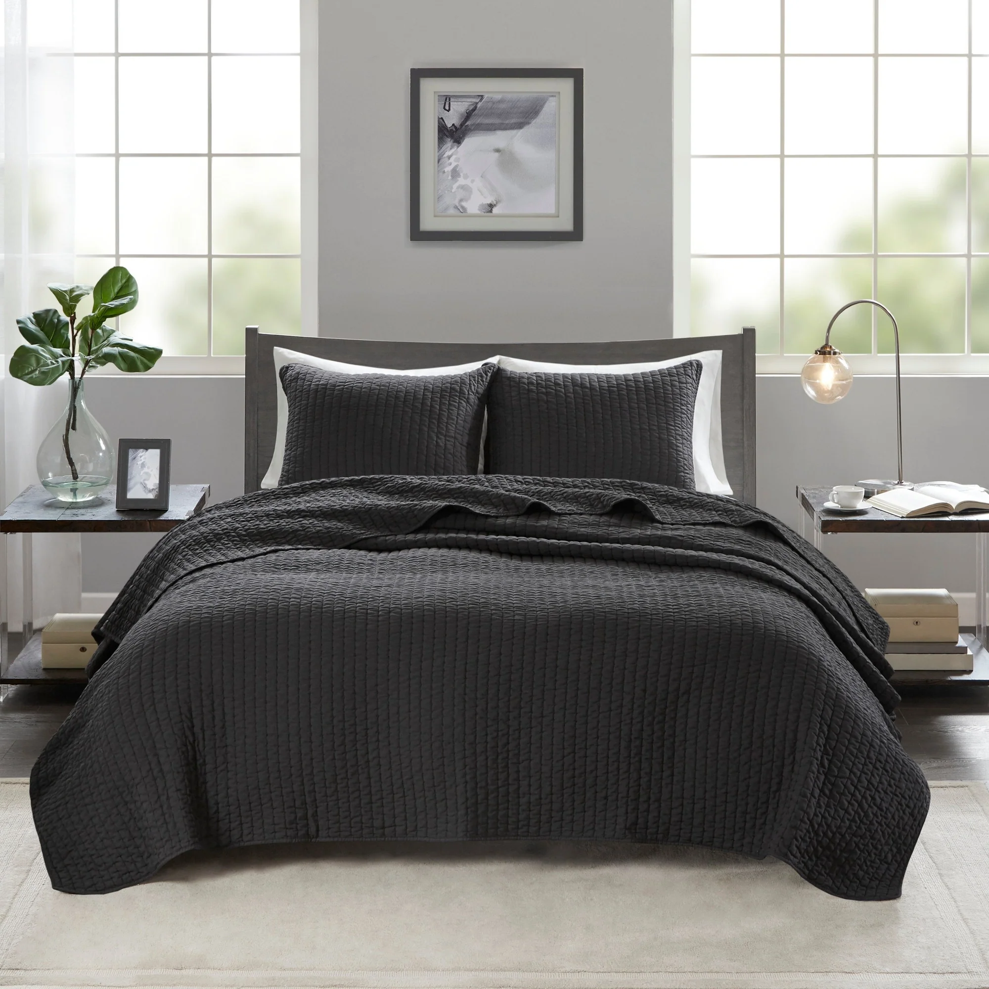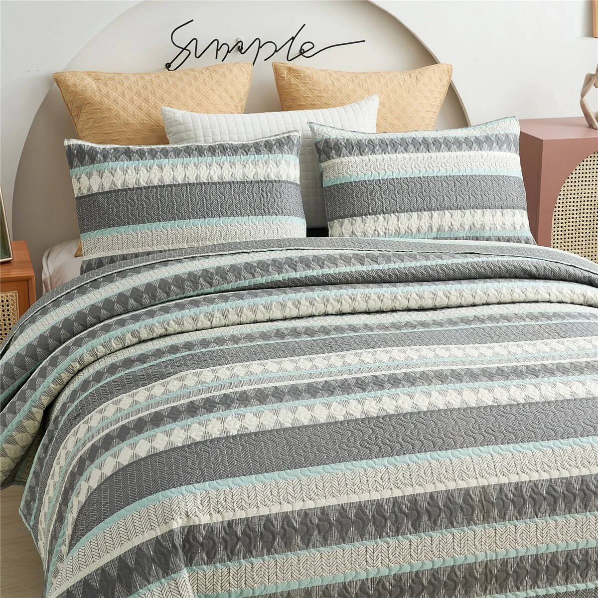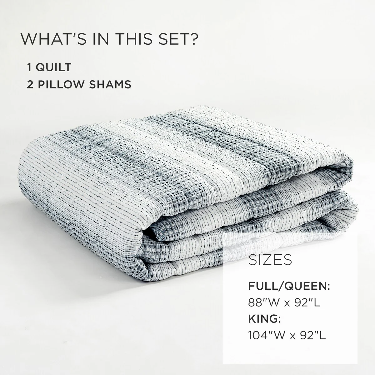Lush Decor Yarn Dyed Textured Stripe Waffle Quilt 3 Pieces Set