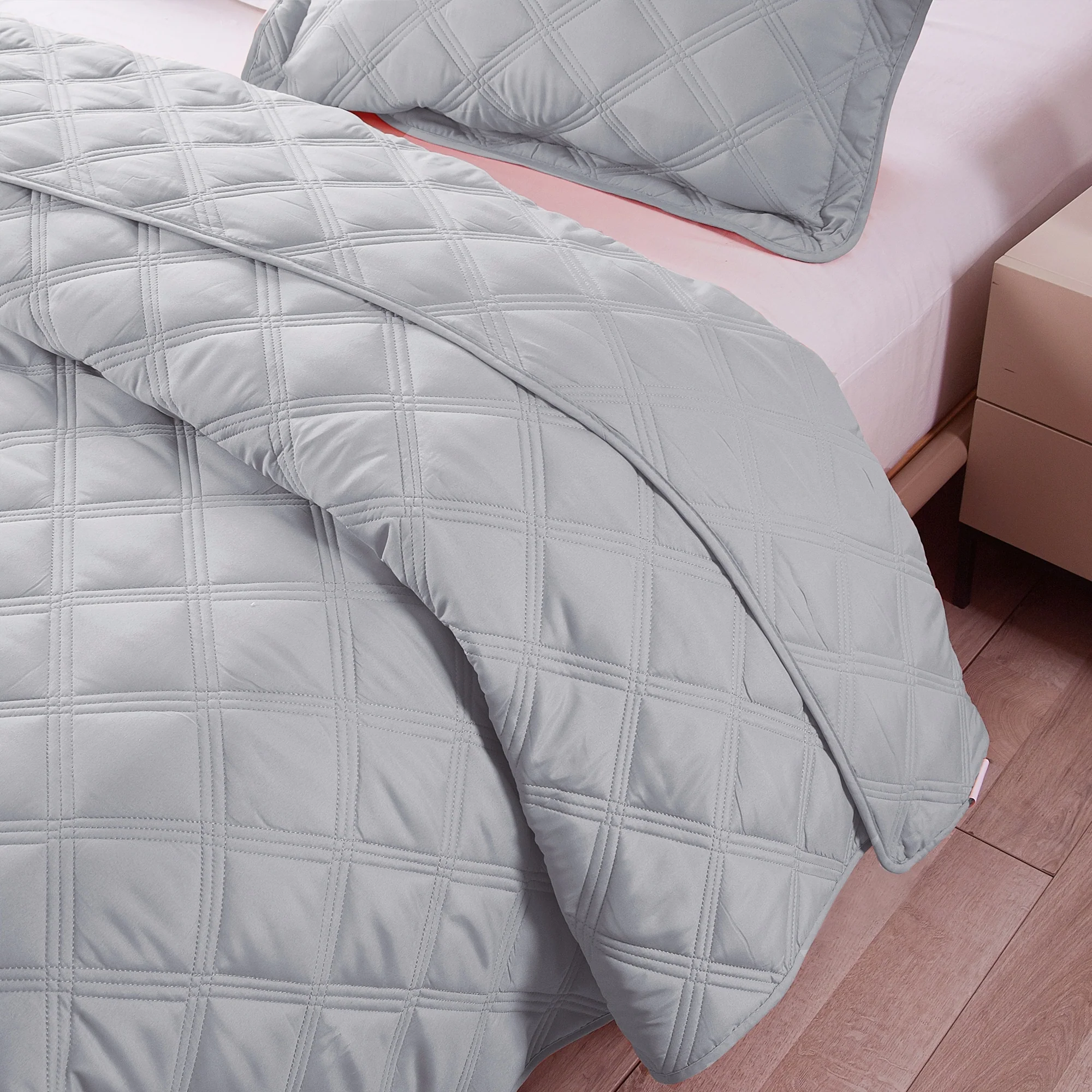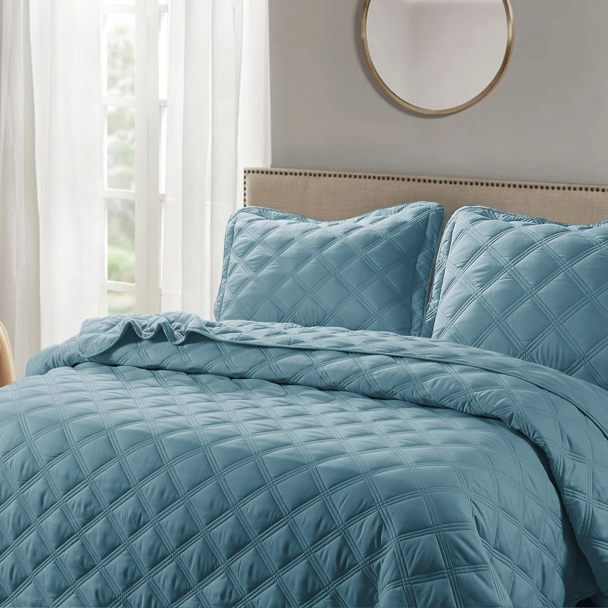 Down Alternative Quilted Oversized Charleston 3 Piece Comforter Set