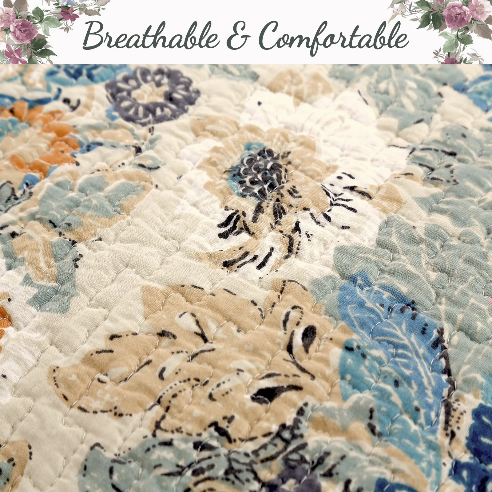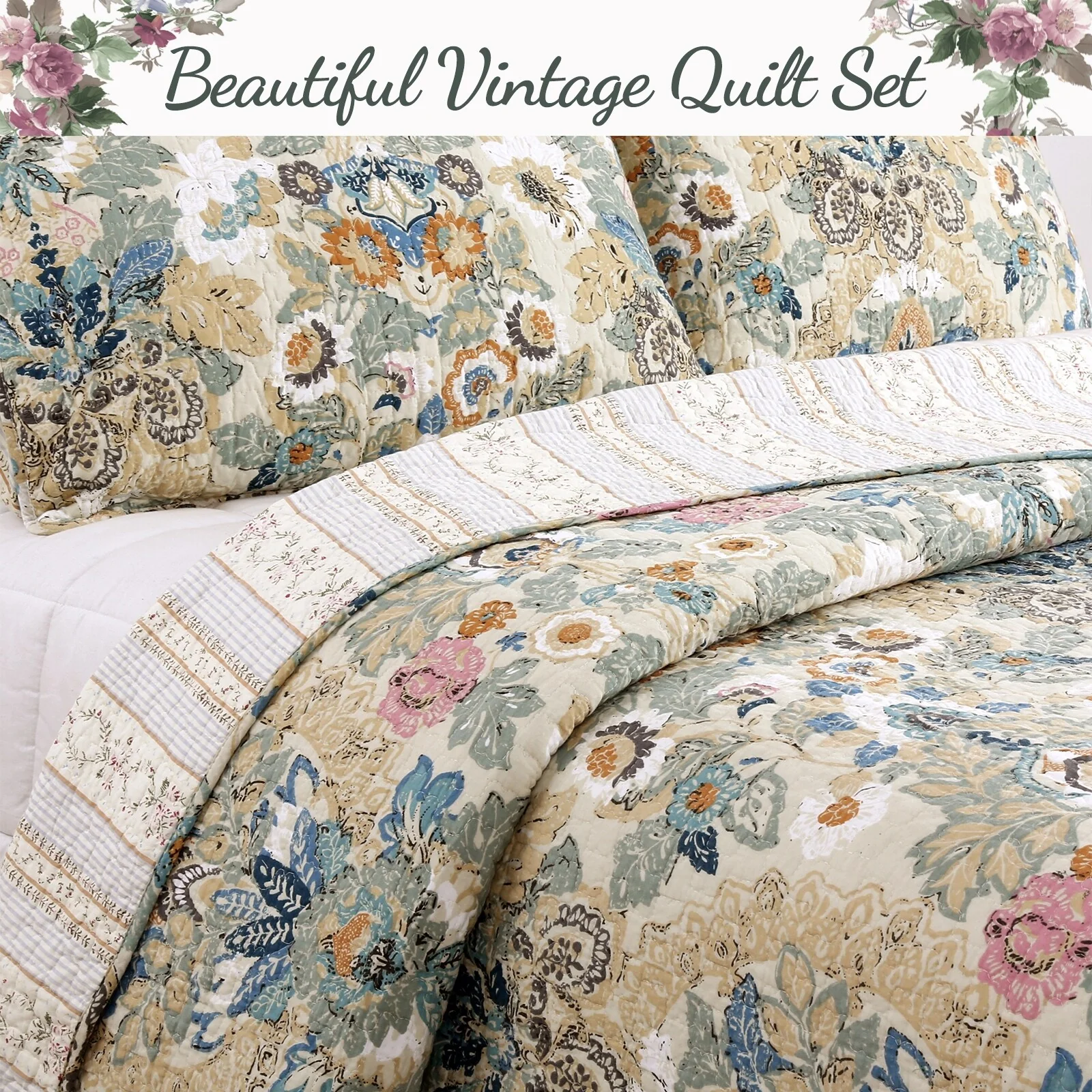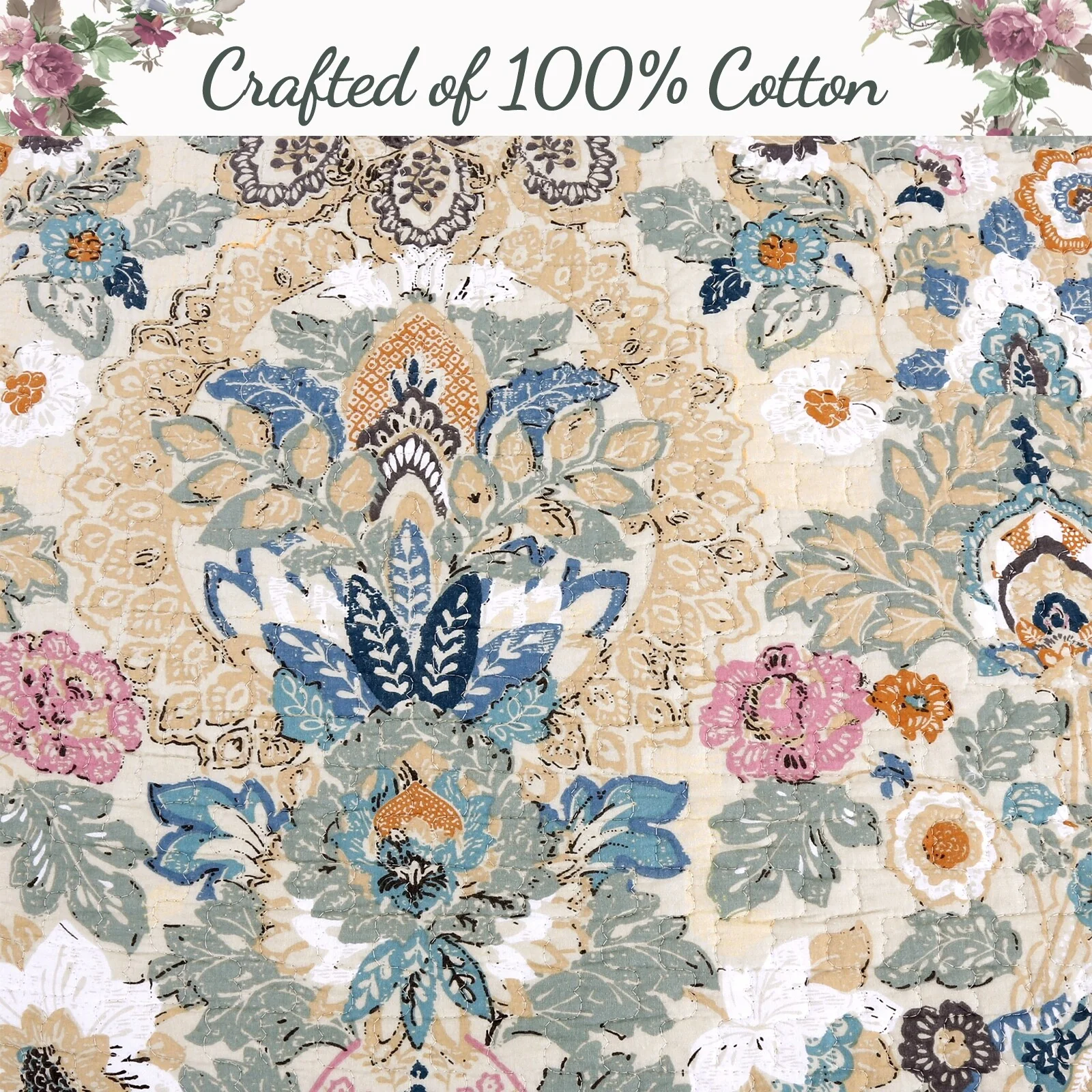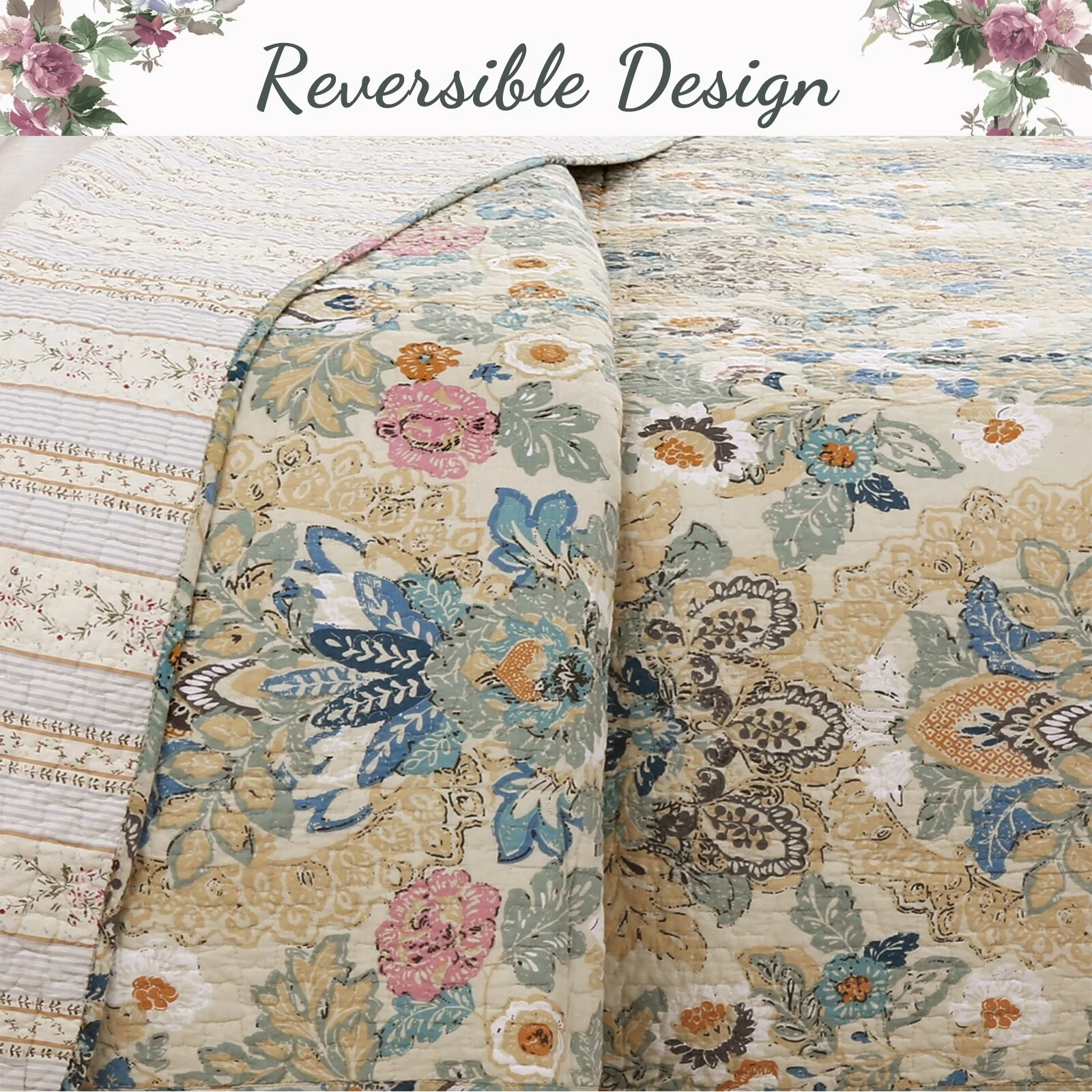 Cozy Line Florabella Cotton Golden Floral 3-pc. Reversible Quilt Bedding Set