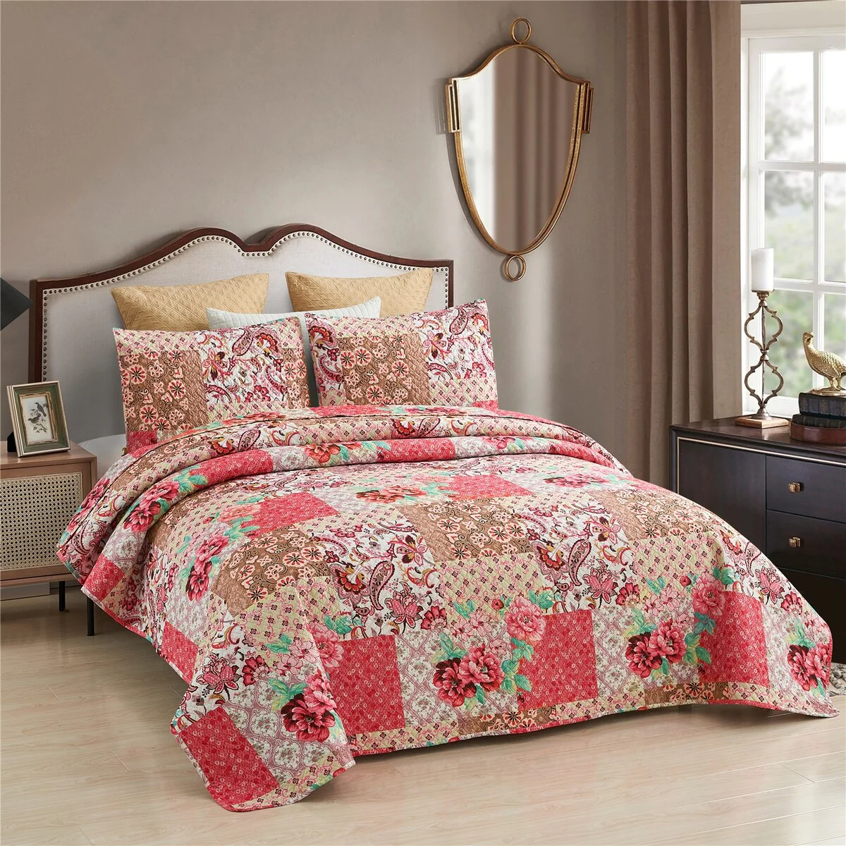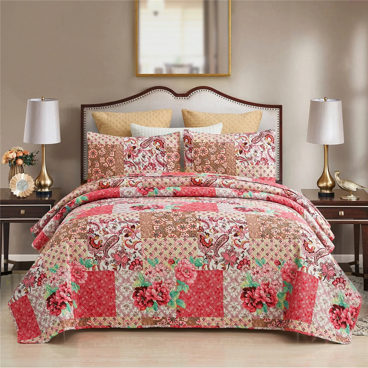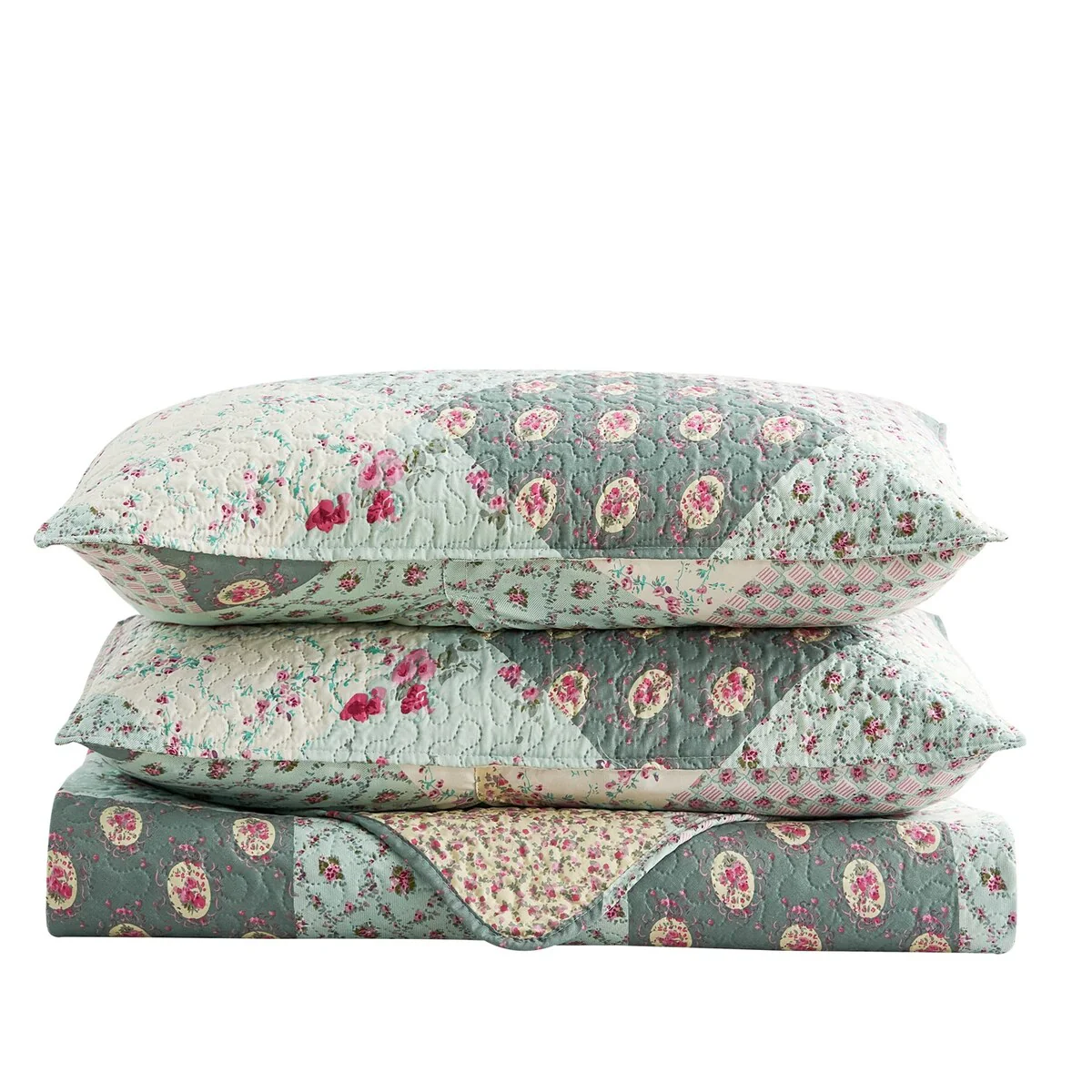 Vintage Rose Reversible Quilt Set, Bedspread, Coverlet