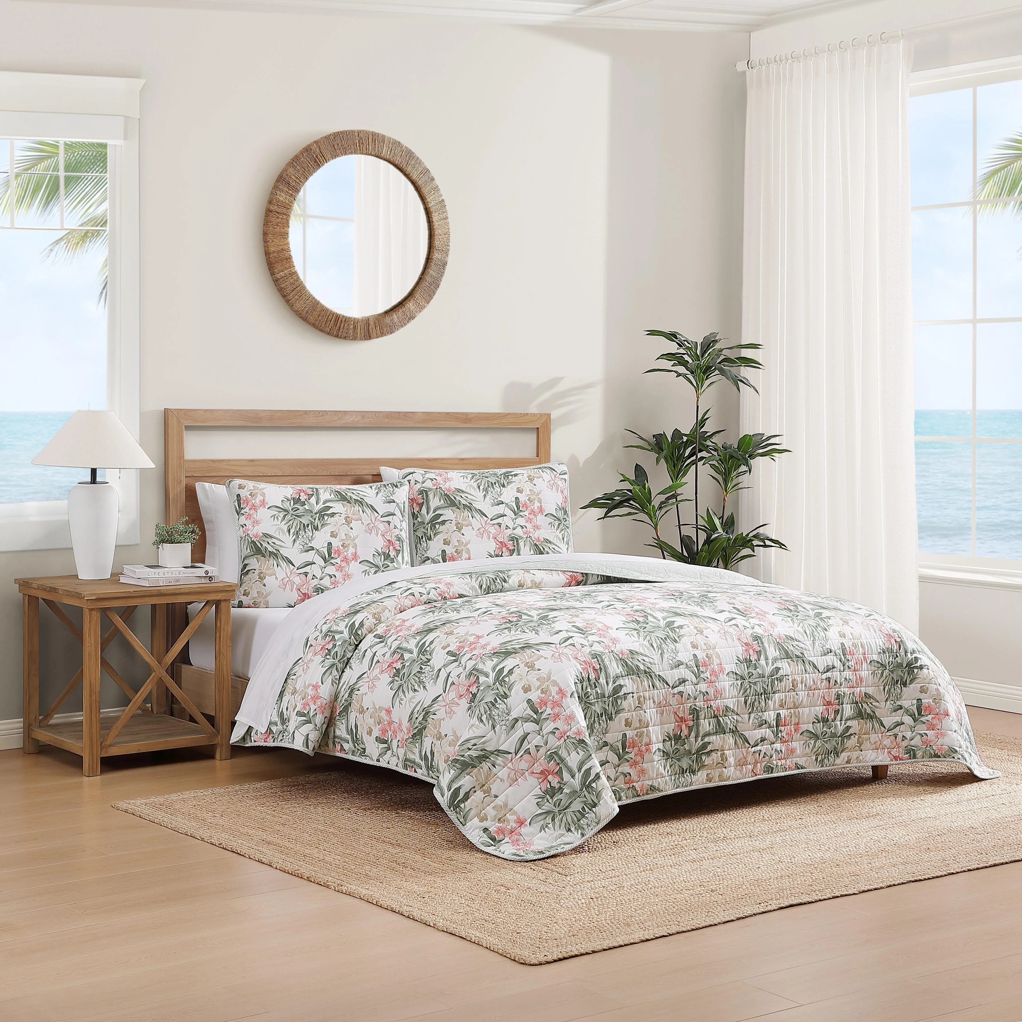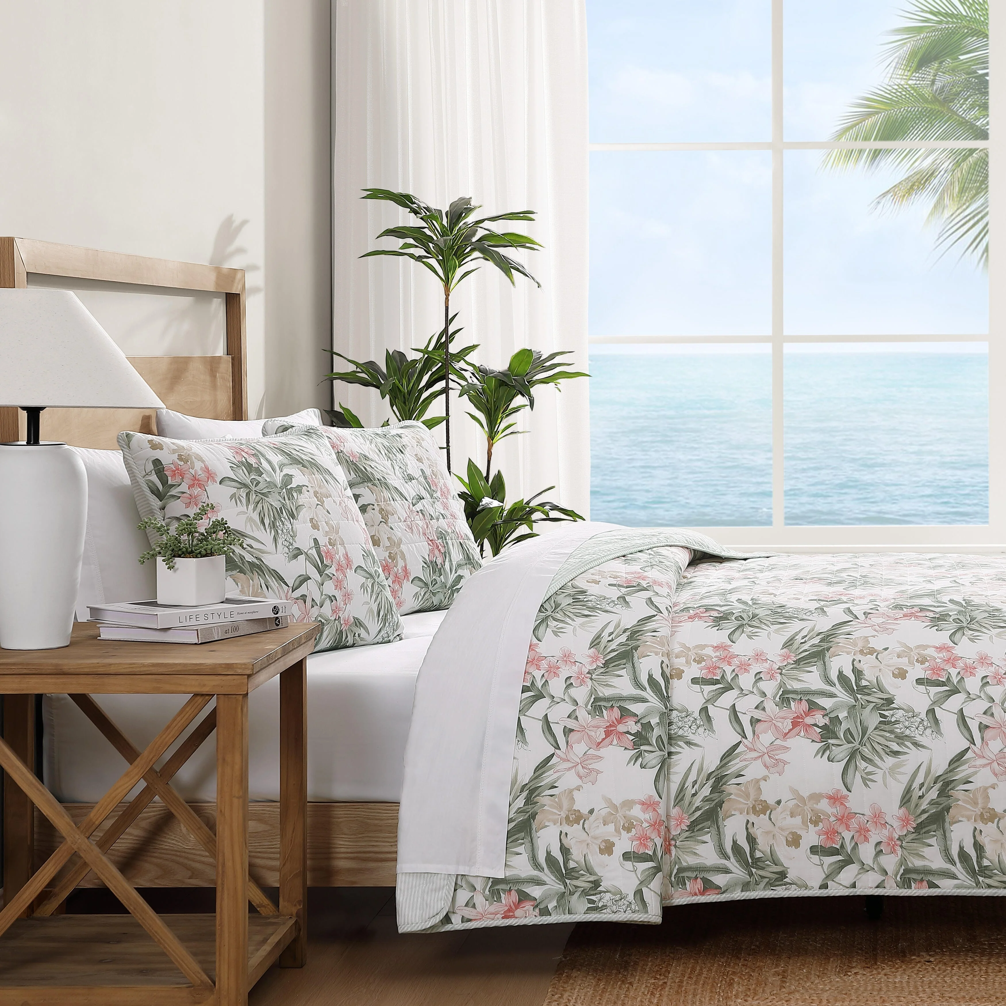 Tommy Bahama Island Orchid Coton Reversible Pink Quilt Set
