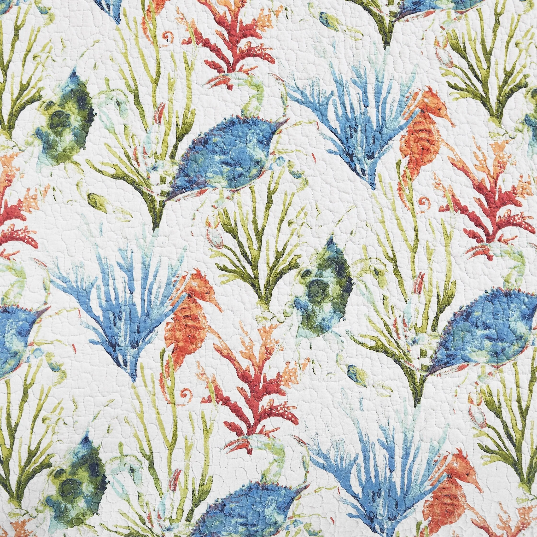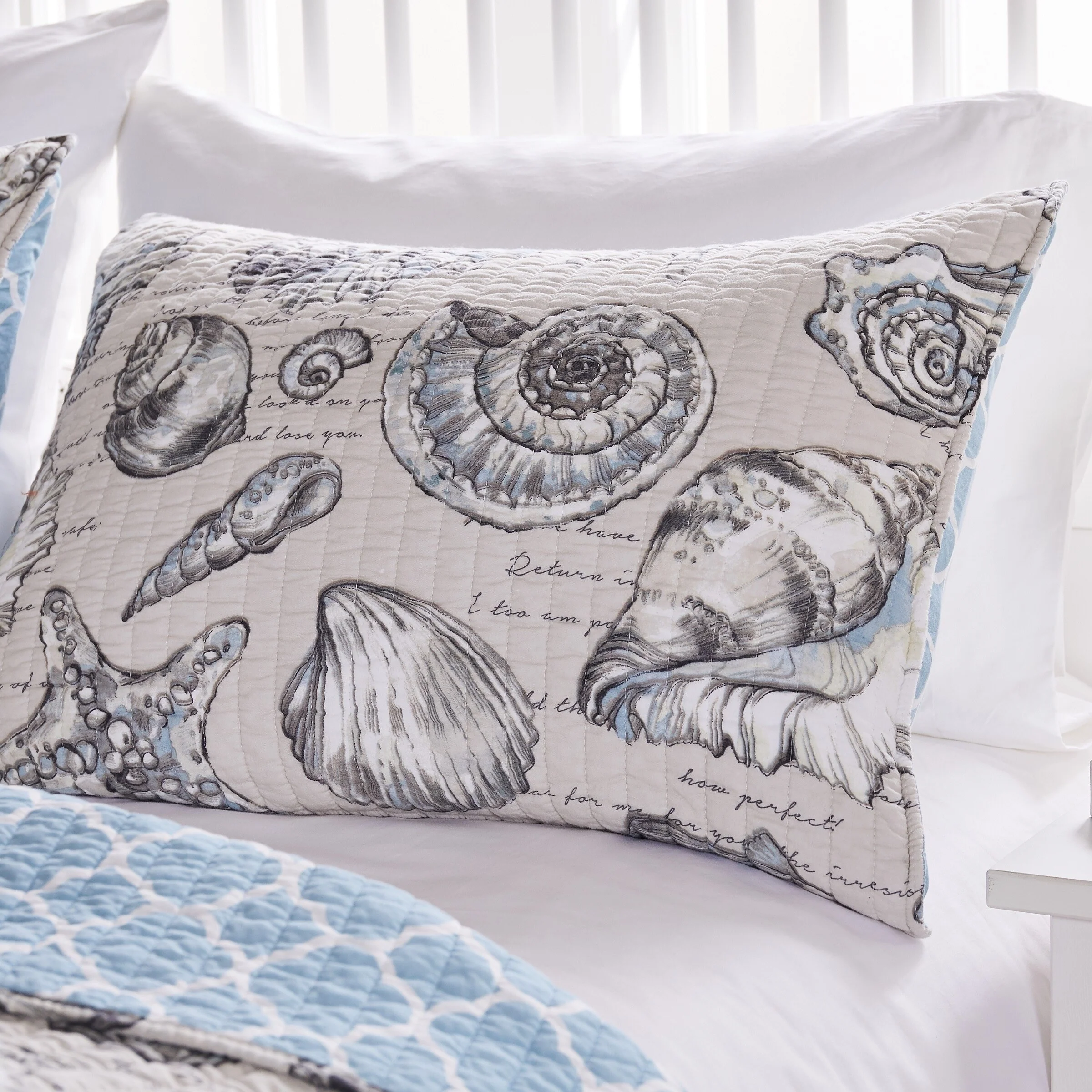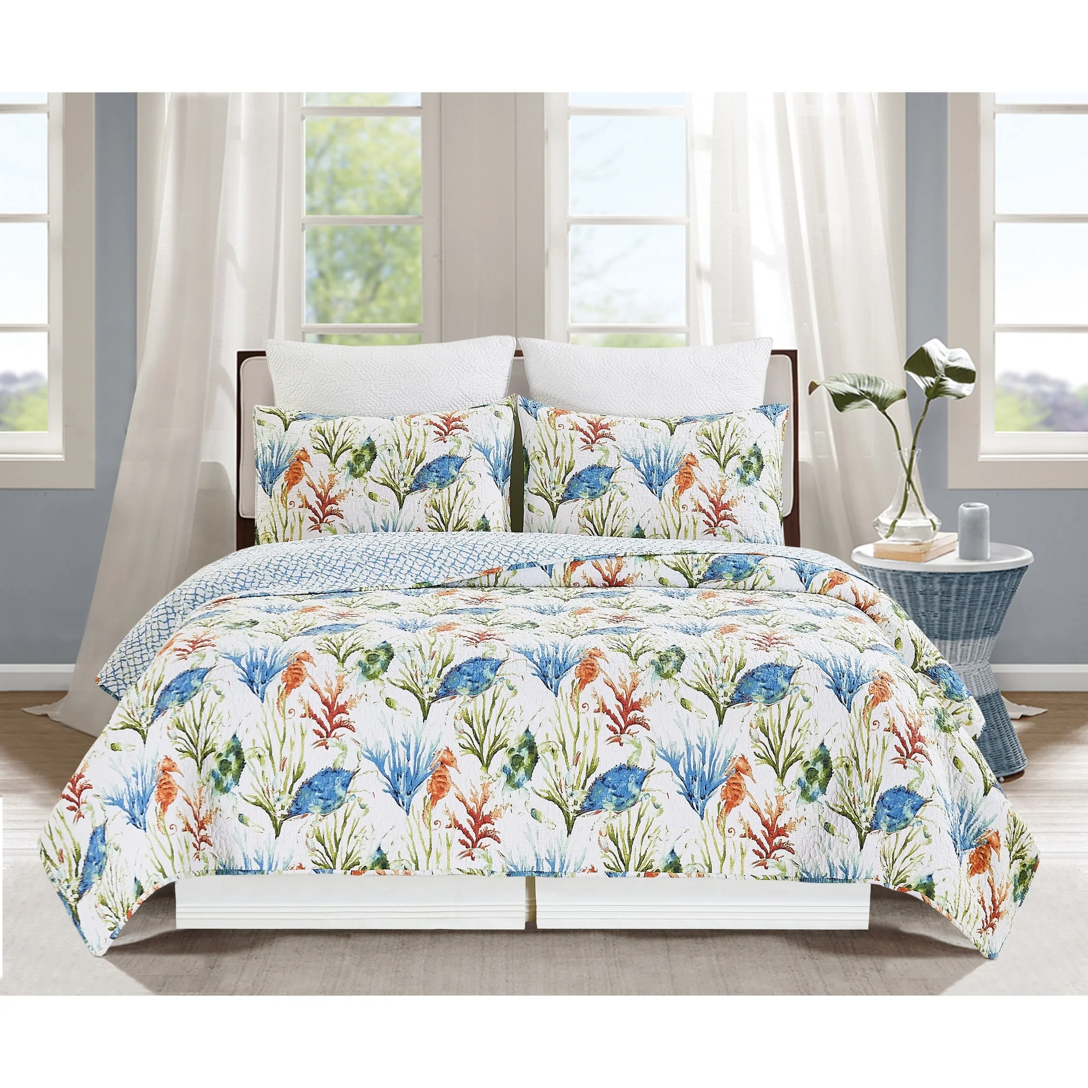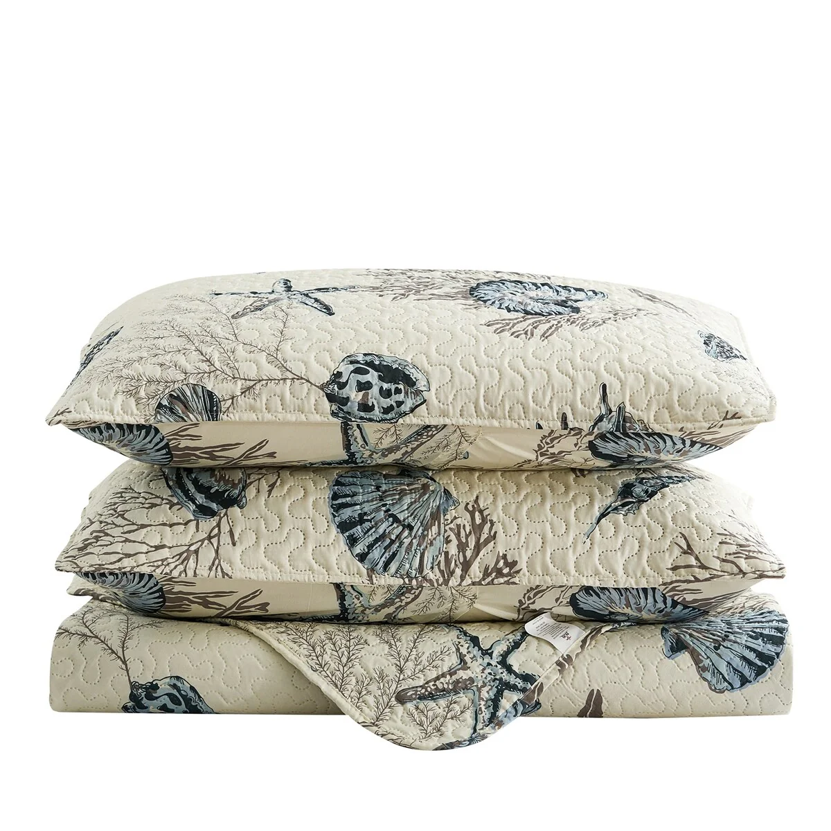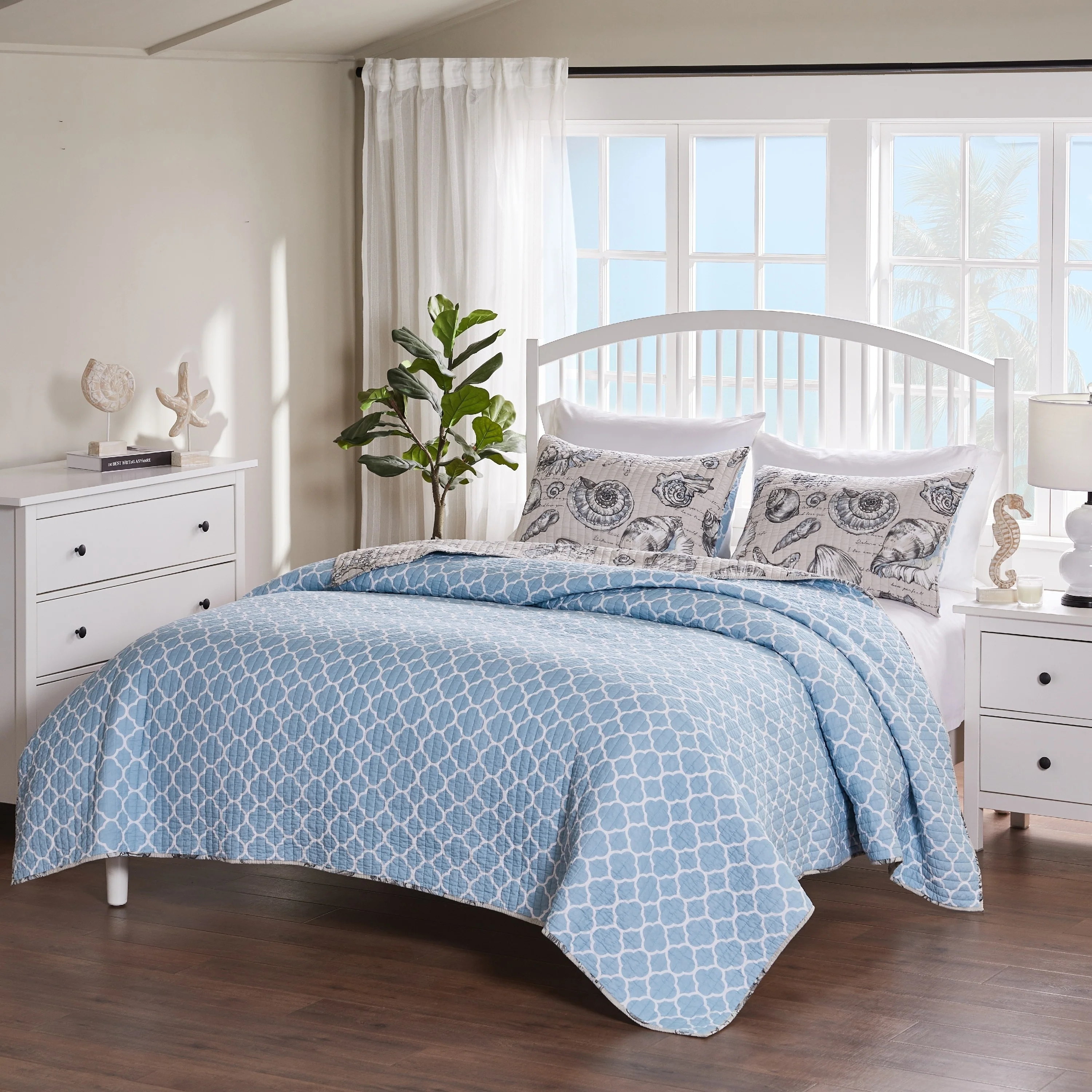 Greenland Home Fashions La Jolla Coastal Quilt Set with Nautical and Seashell Stitching