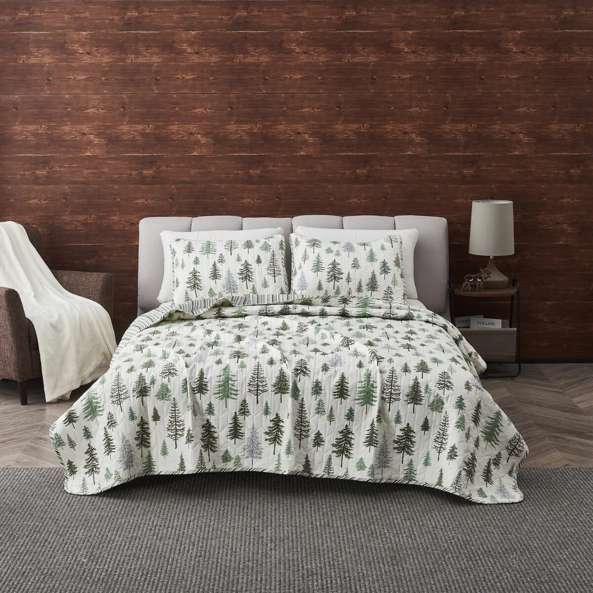 Premium Rustic Lodge Trees Microfiber Quilt Set With Shams