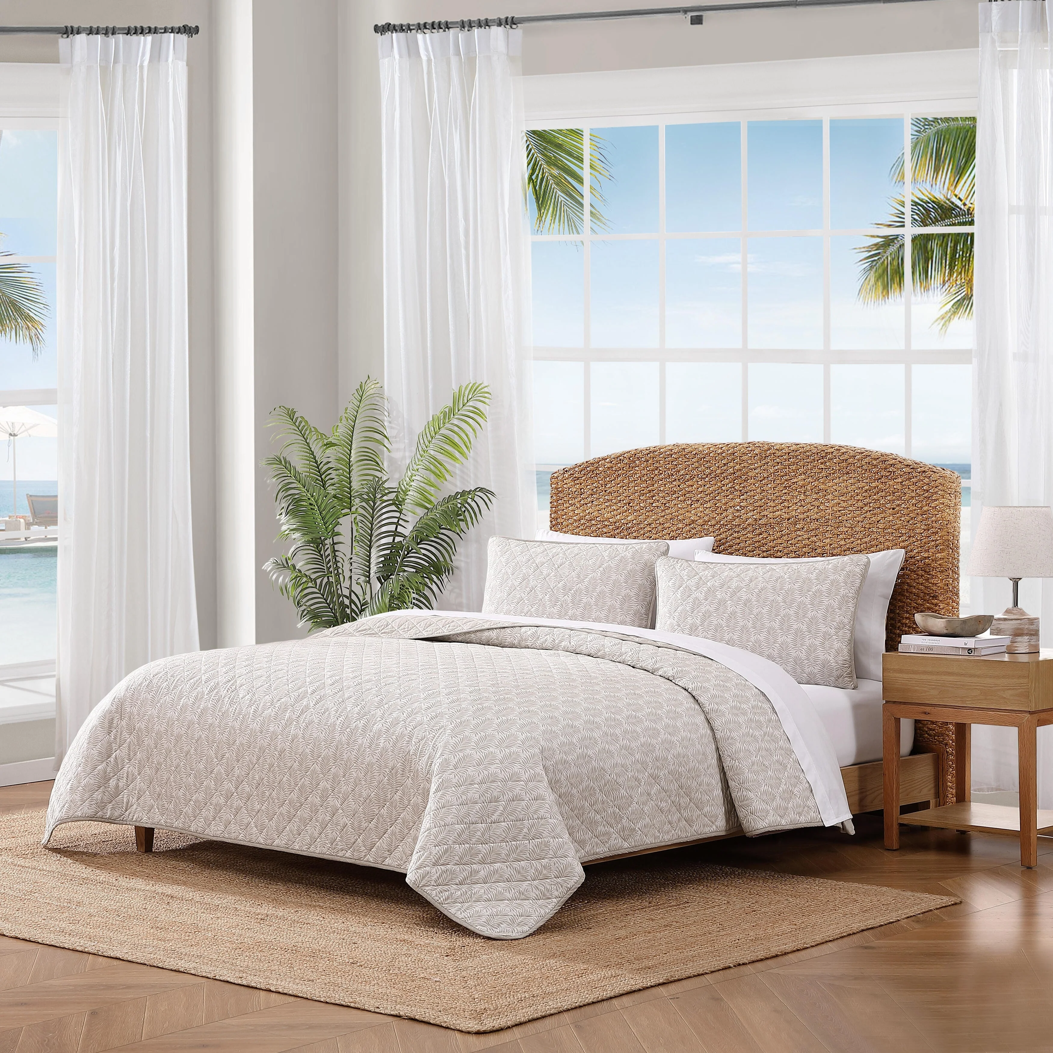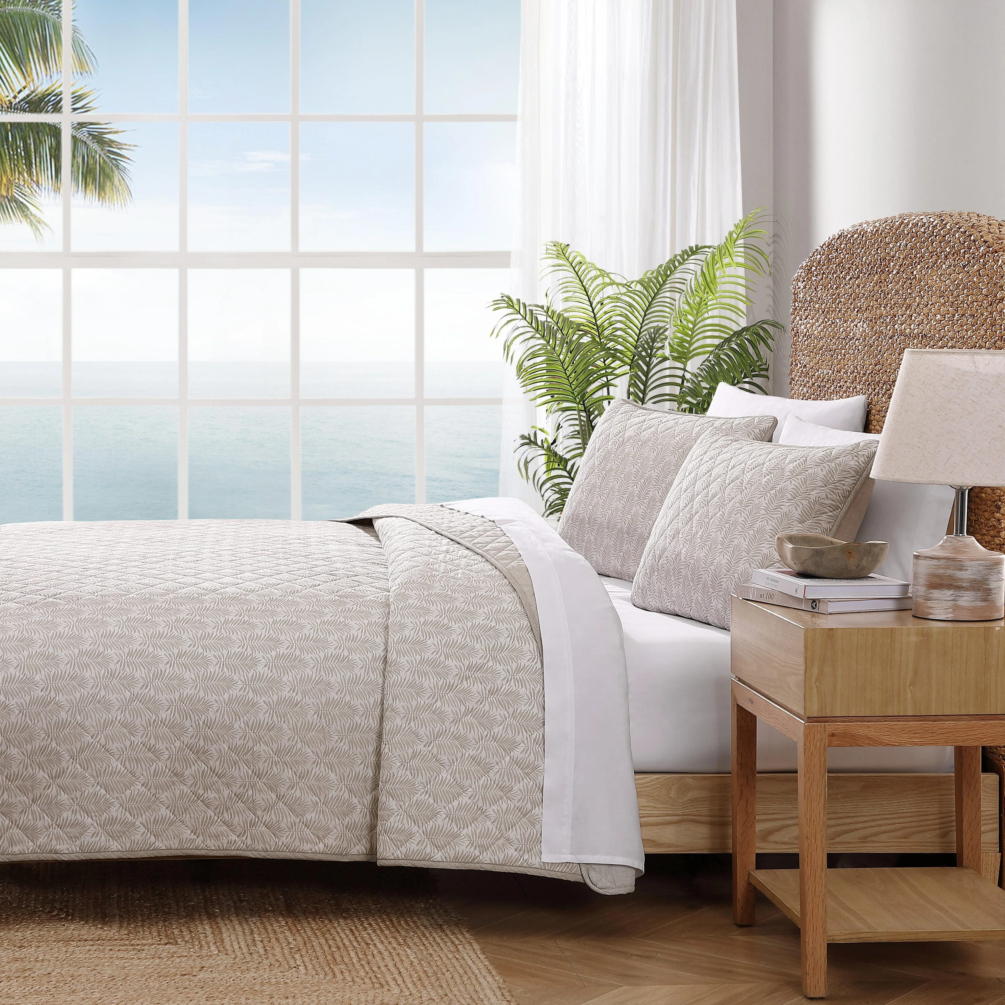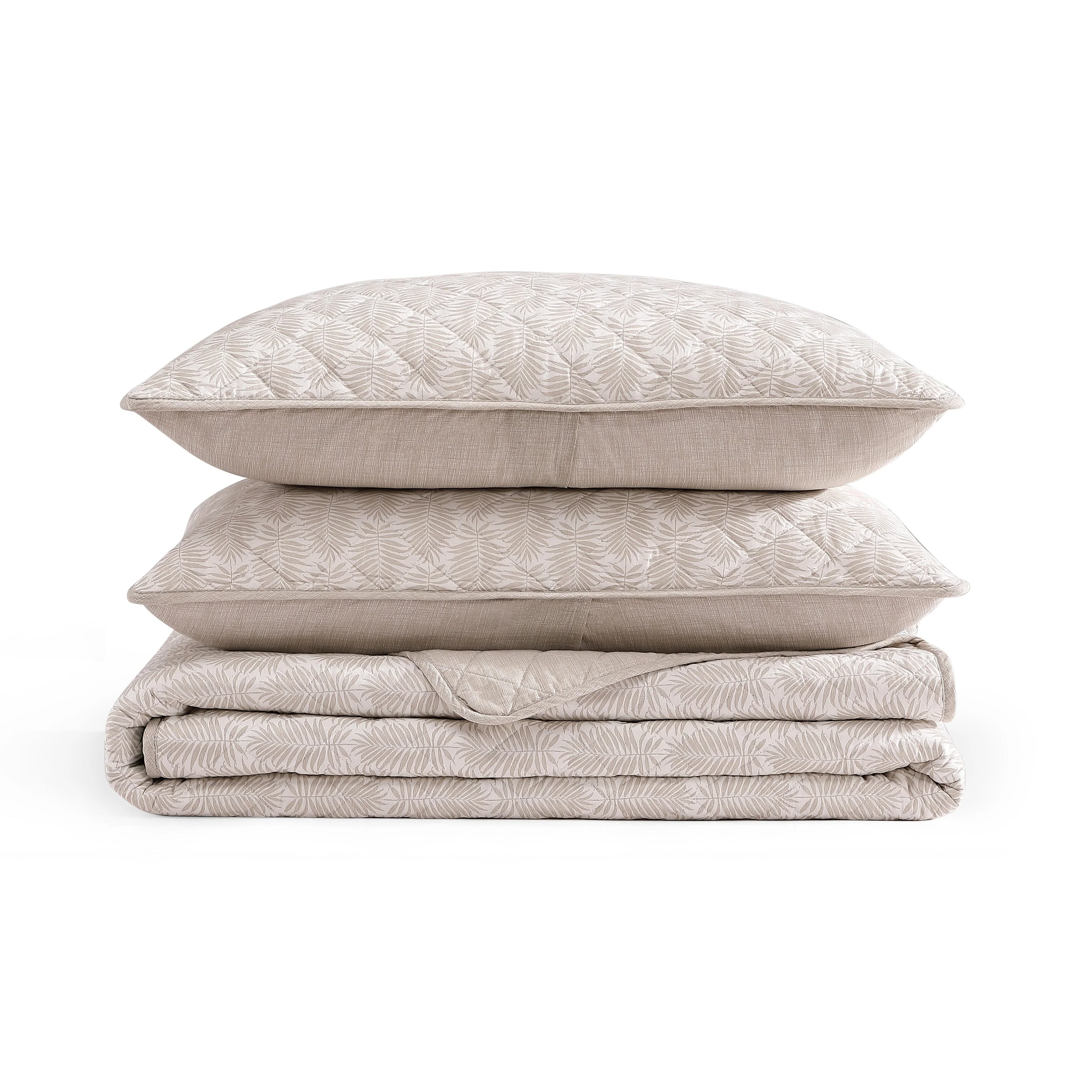 Tommy Bahama Bahama Fronds Cotton Reversible Beige Quilt Set