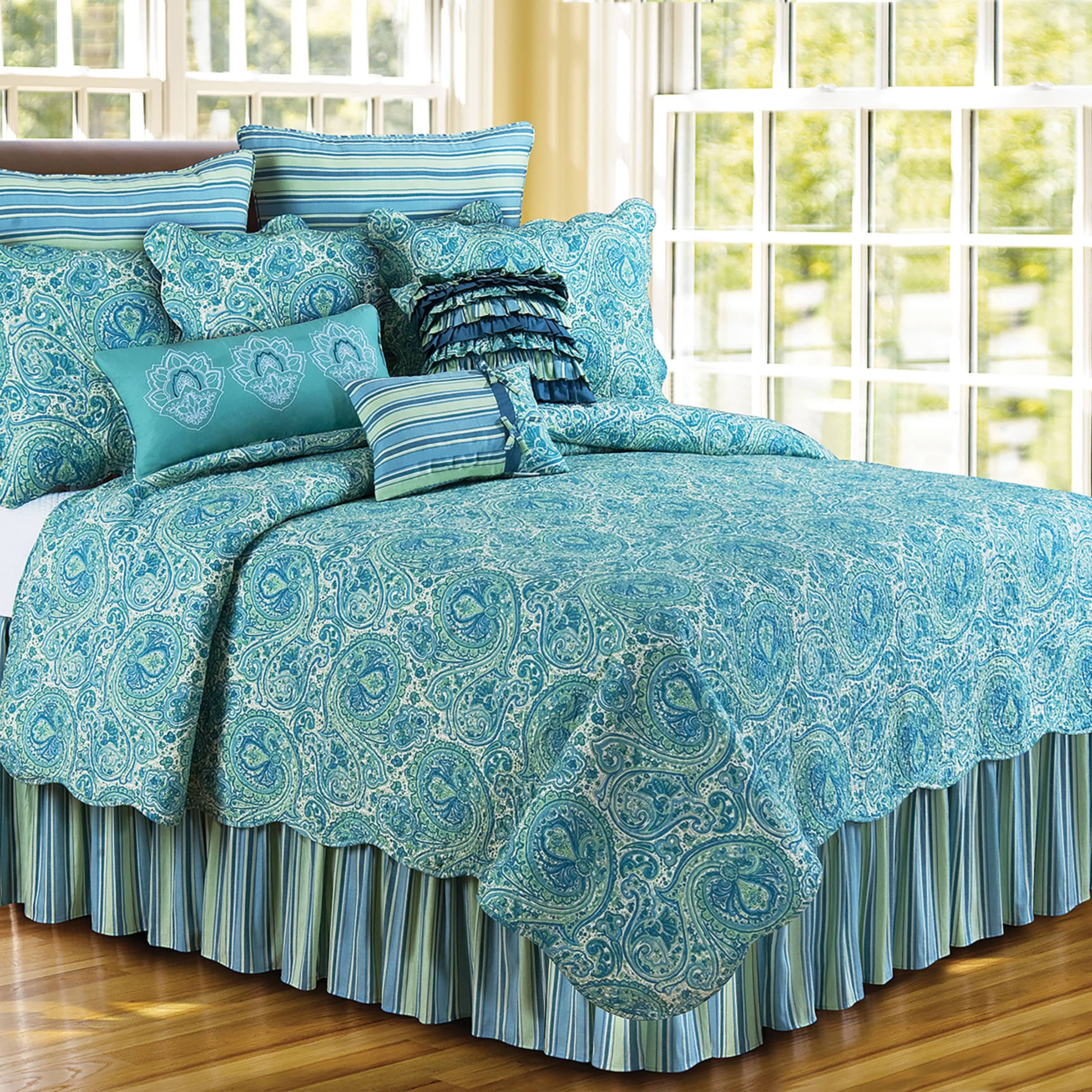 Oceana Paisley Full/Queen Quilt 100% Cotton Lightweight Machine Washable Reversible Bedspread Coverlet