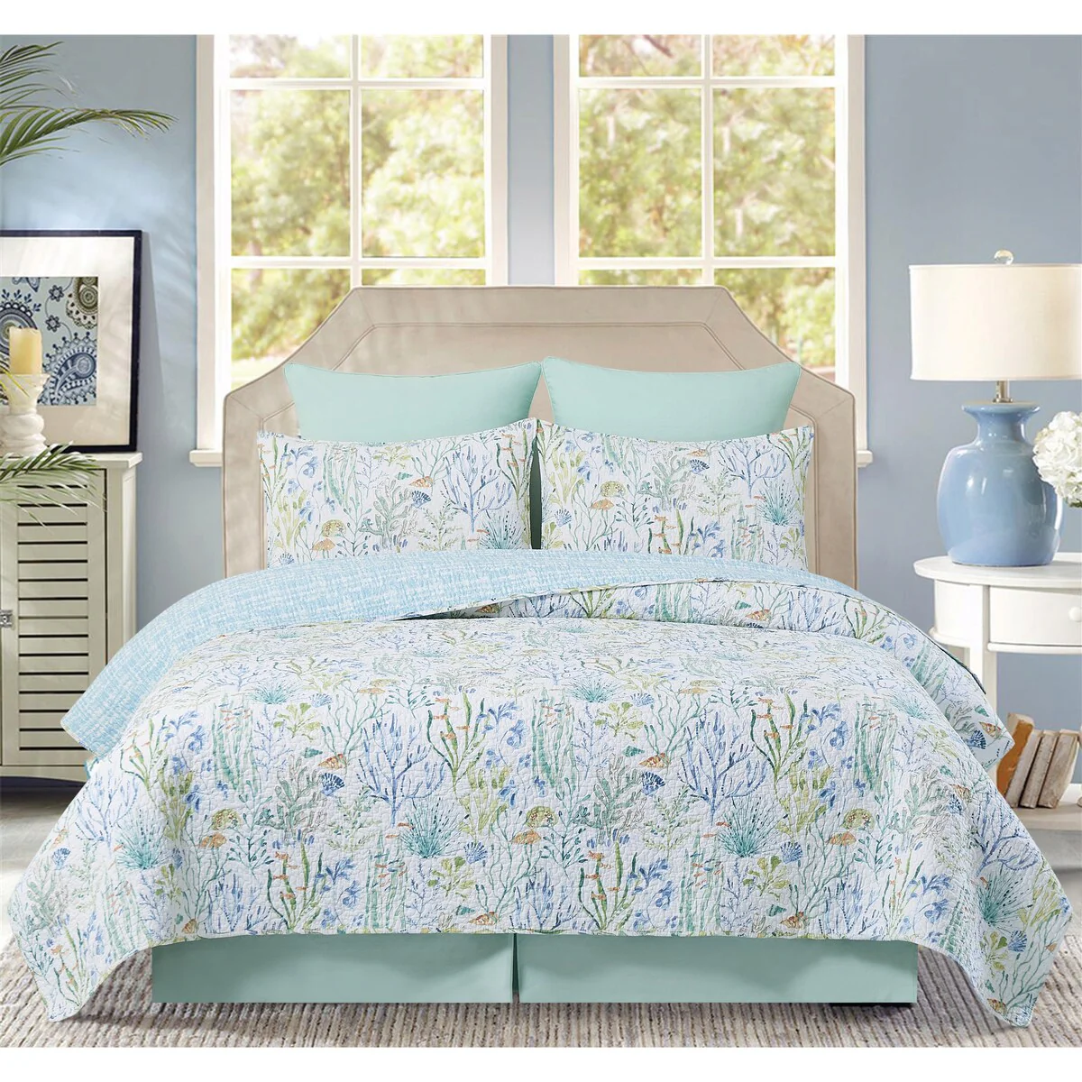 Coralie Sound Cotton Coastal Beach Quilt Set