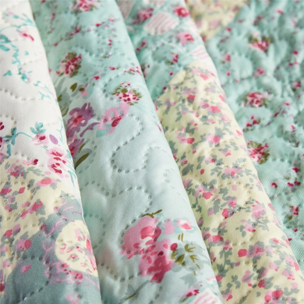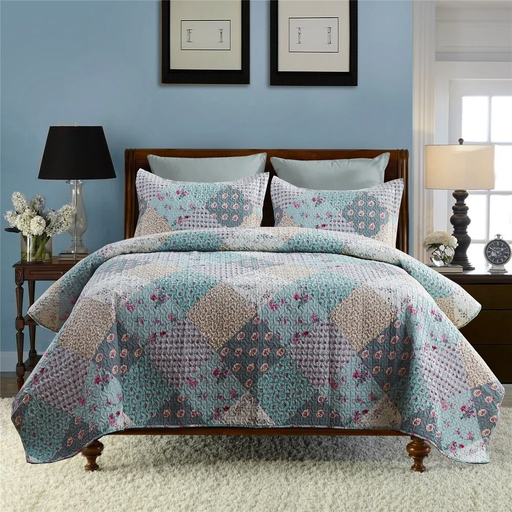 3 Piece Printed Lightweight Bedding Quilt Set - Teal