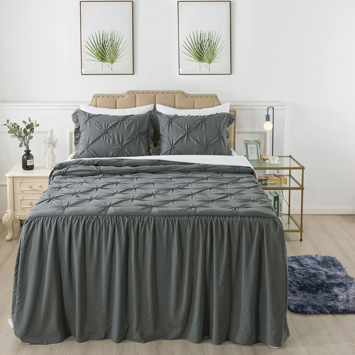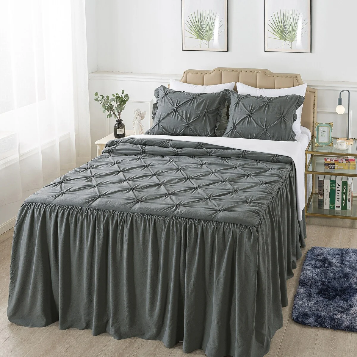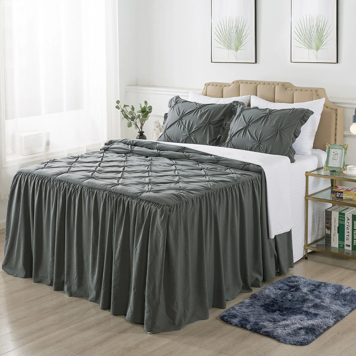 4 PCS Ruffle Skirt Bedspread Set with a Fluffy Rug