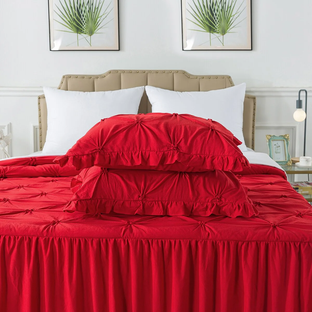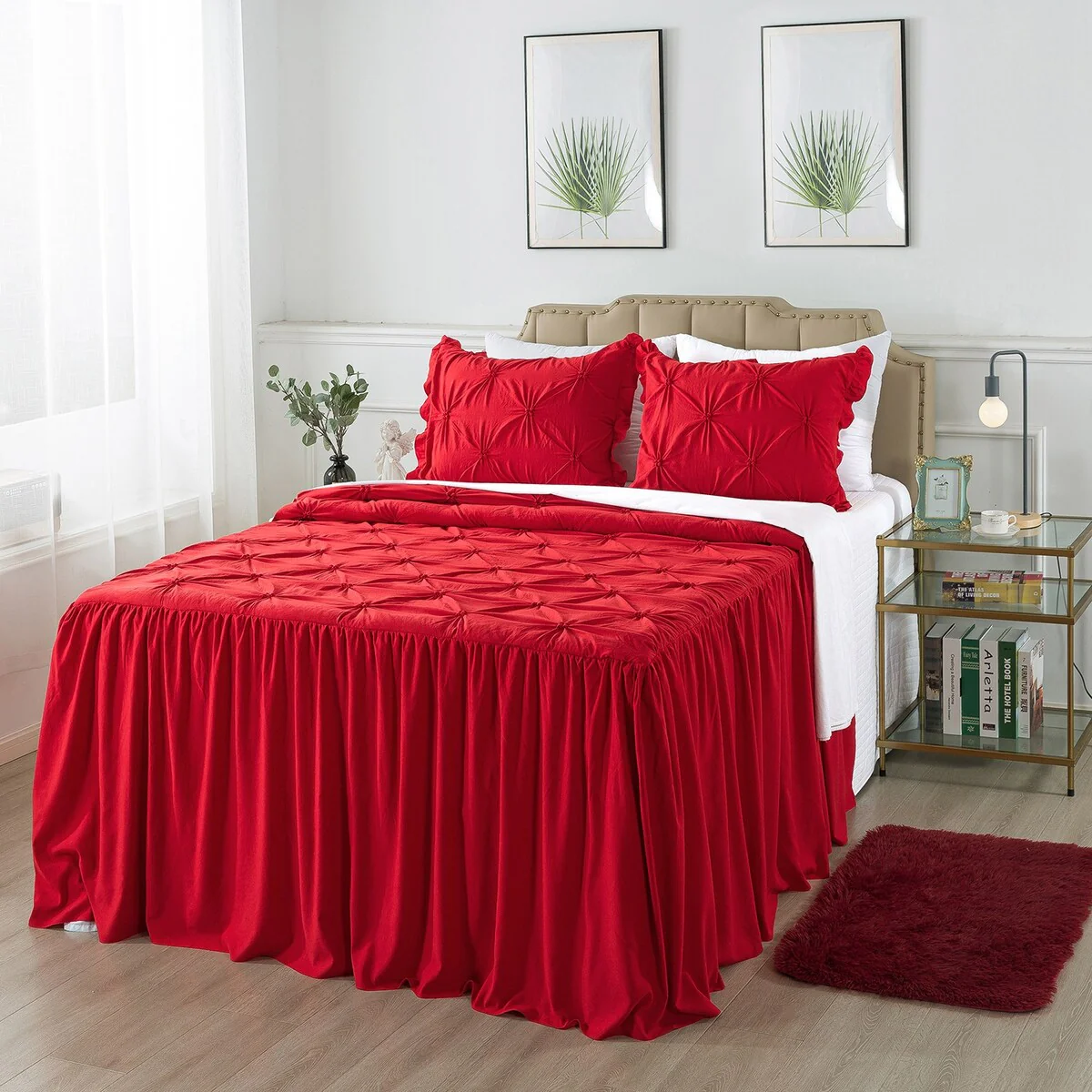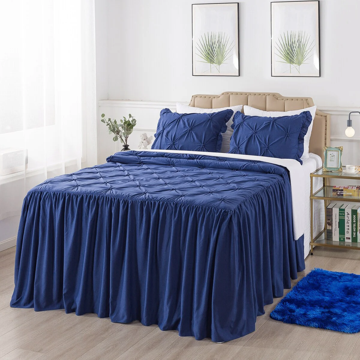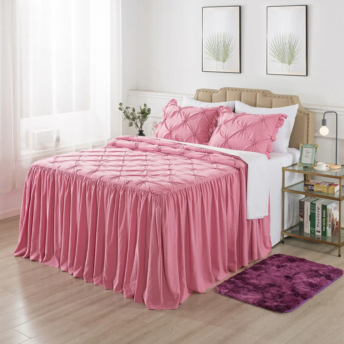 4 PCS Ruffle Skirt Bedspread Set with a Fluffy Rug