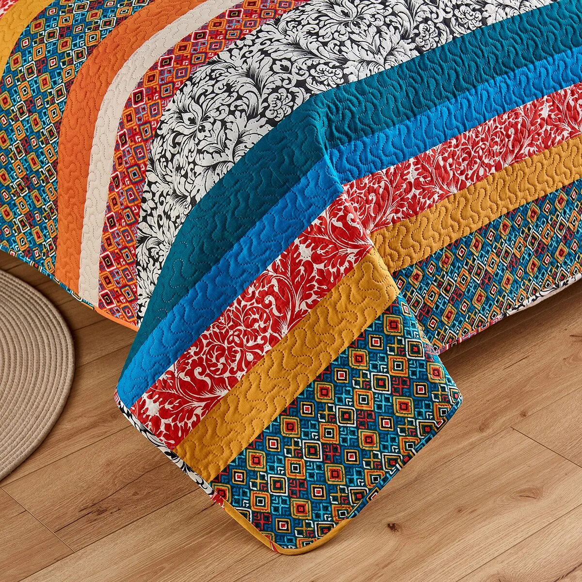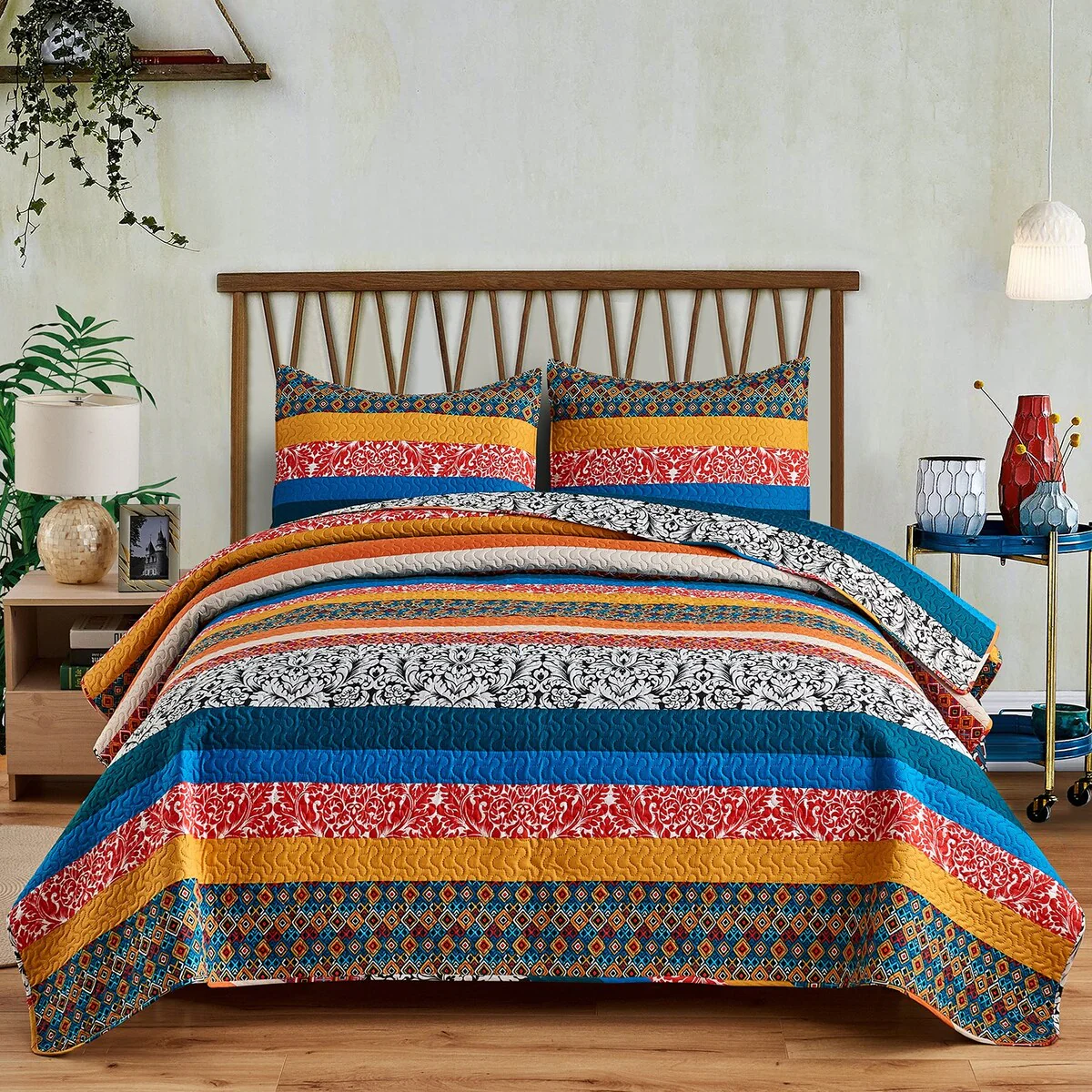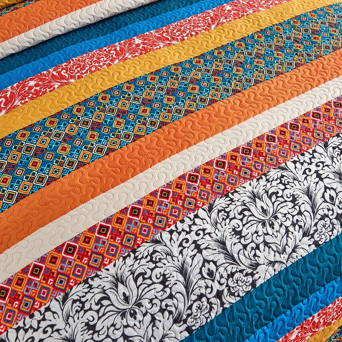 3 Piece Bohemian Striped Quilt Set