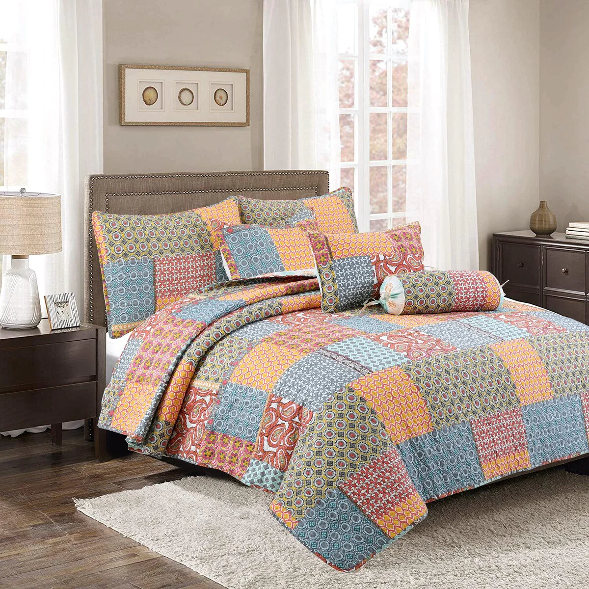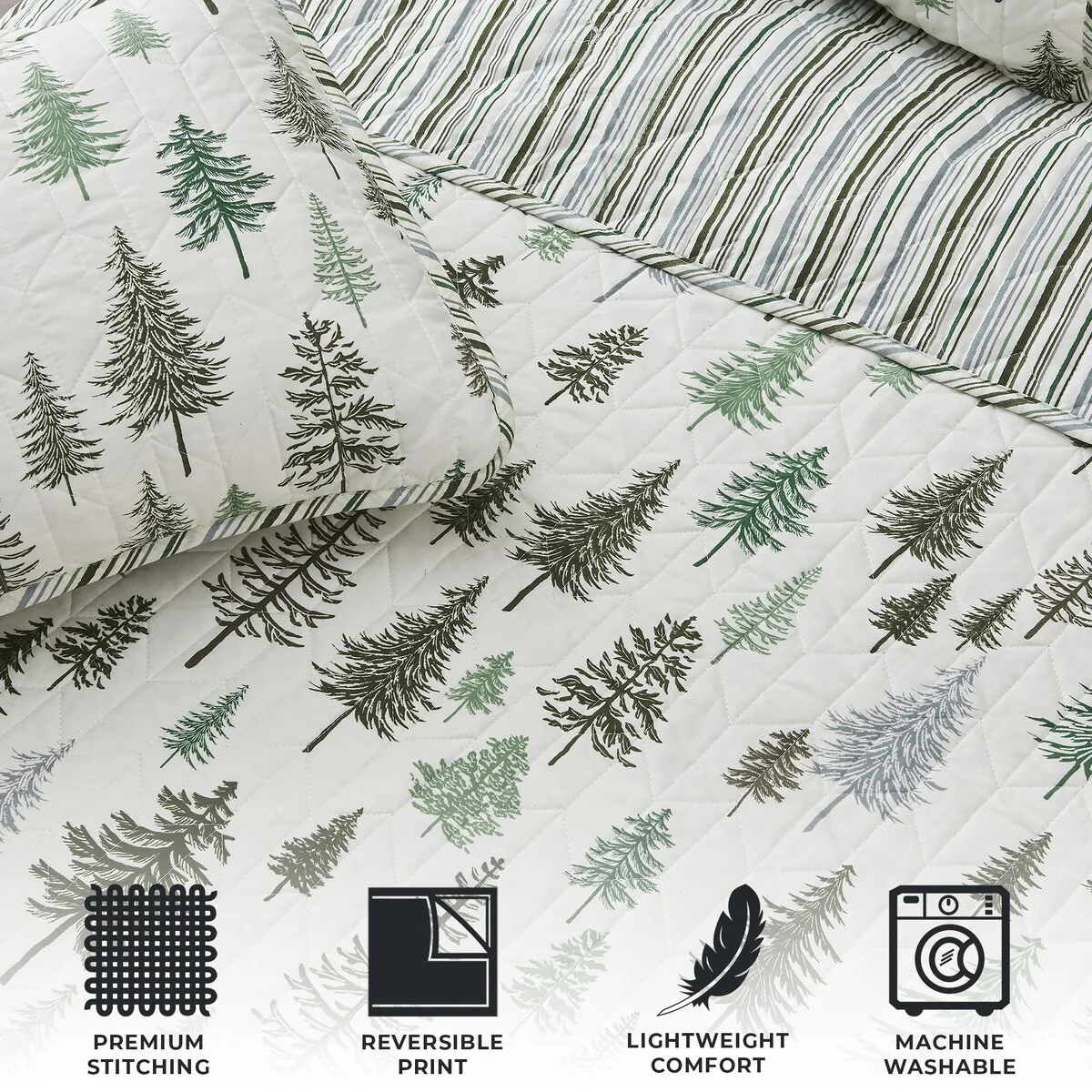Natural Home Cotton Quilt Set - Reversible and Machine Washable