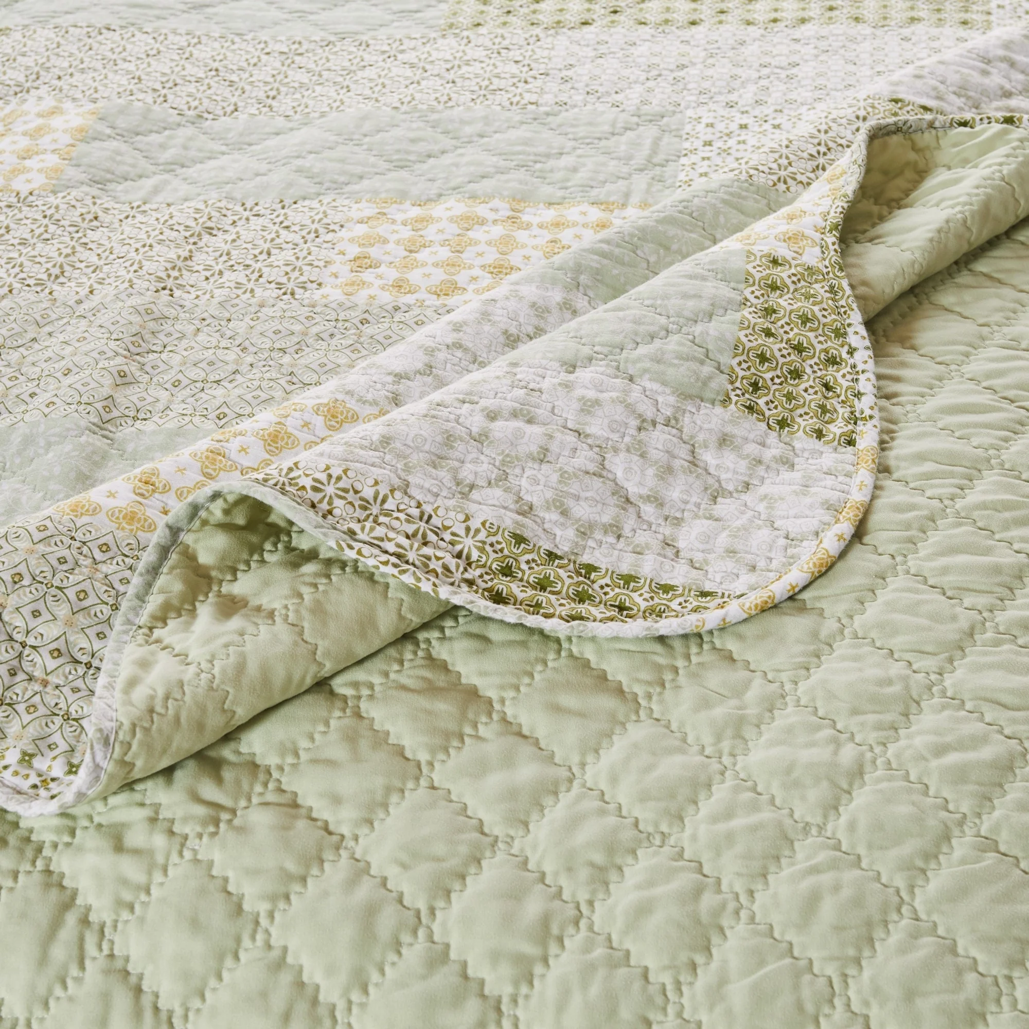 Porch & Den Lebanon Sage Cotton Oversized Reversible Quilt Set
