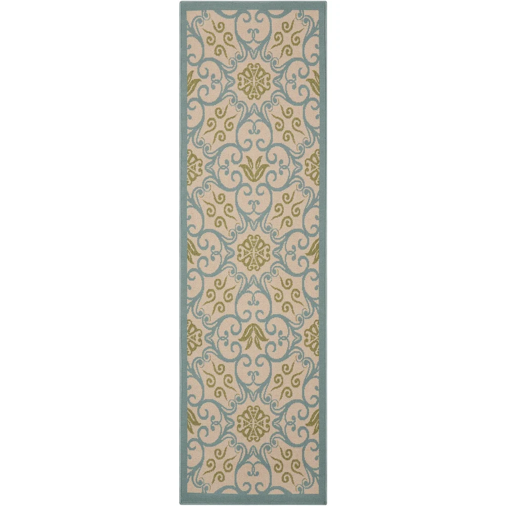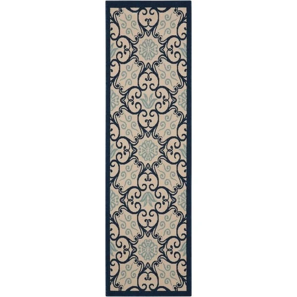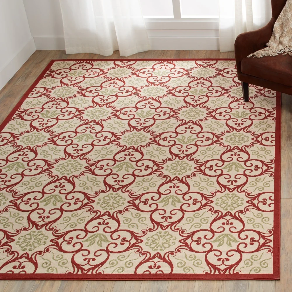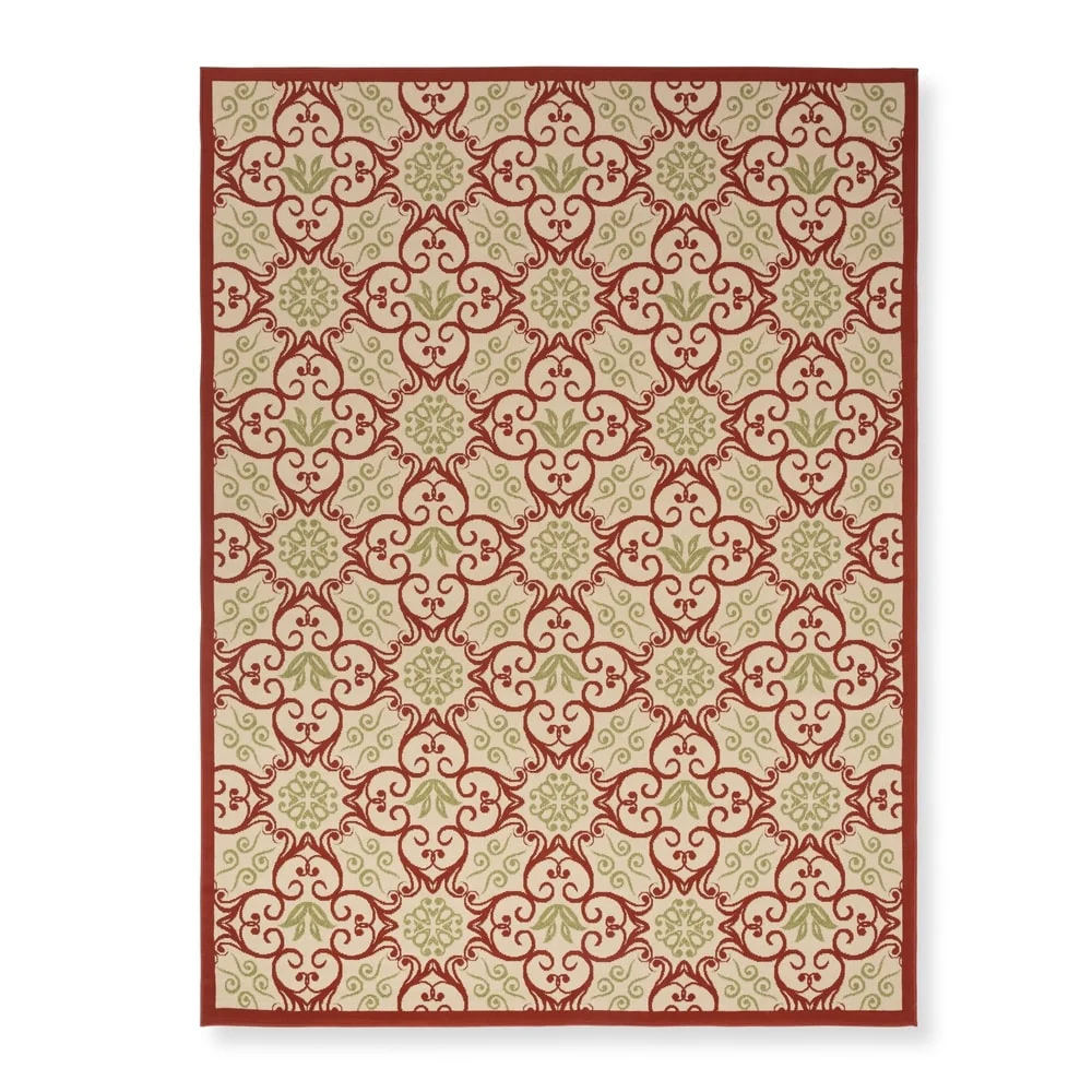 Bring the lush and colorful beauty of the Caribbean into your home with this quality loomed indoor/outdoor area rug. Featuring a variety of botanical designs and curvaceous geometrics in deeply pigmented tones, this rug instantly transforms any space. The woven loop pile adds texture and depth, while the easy-care design makes it perfect for high traffic areas both inside and outside your home.