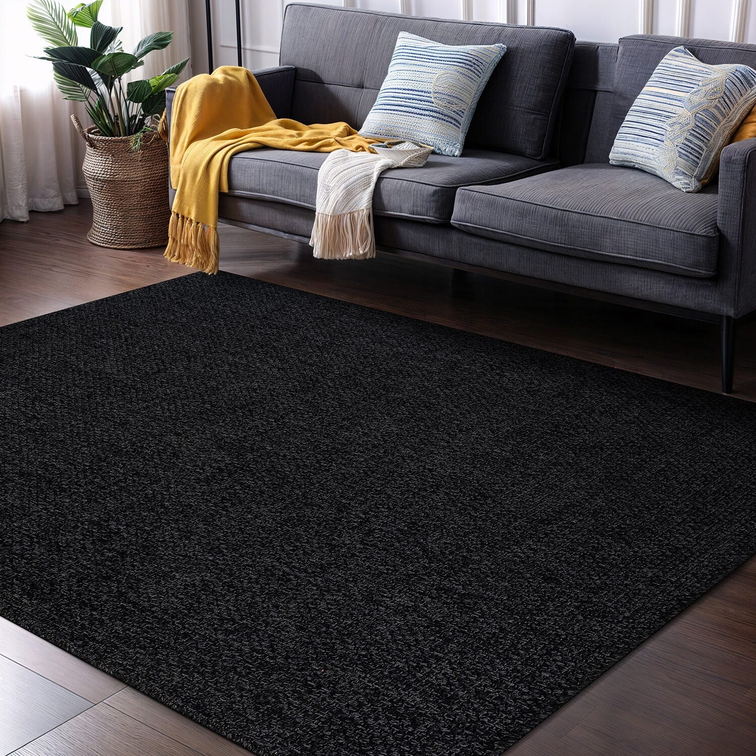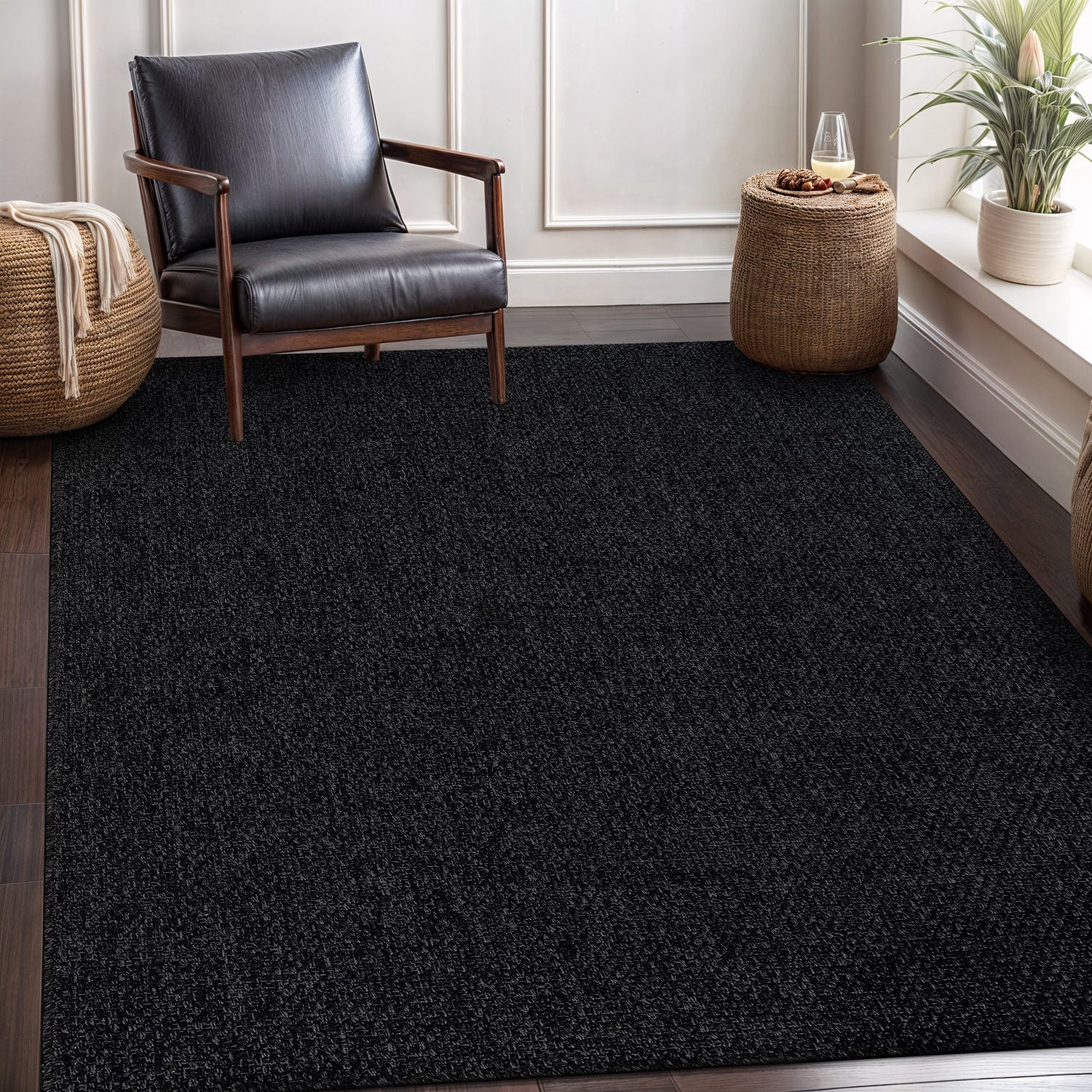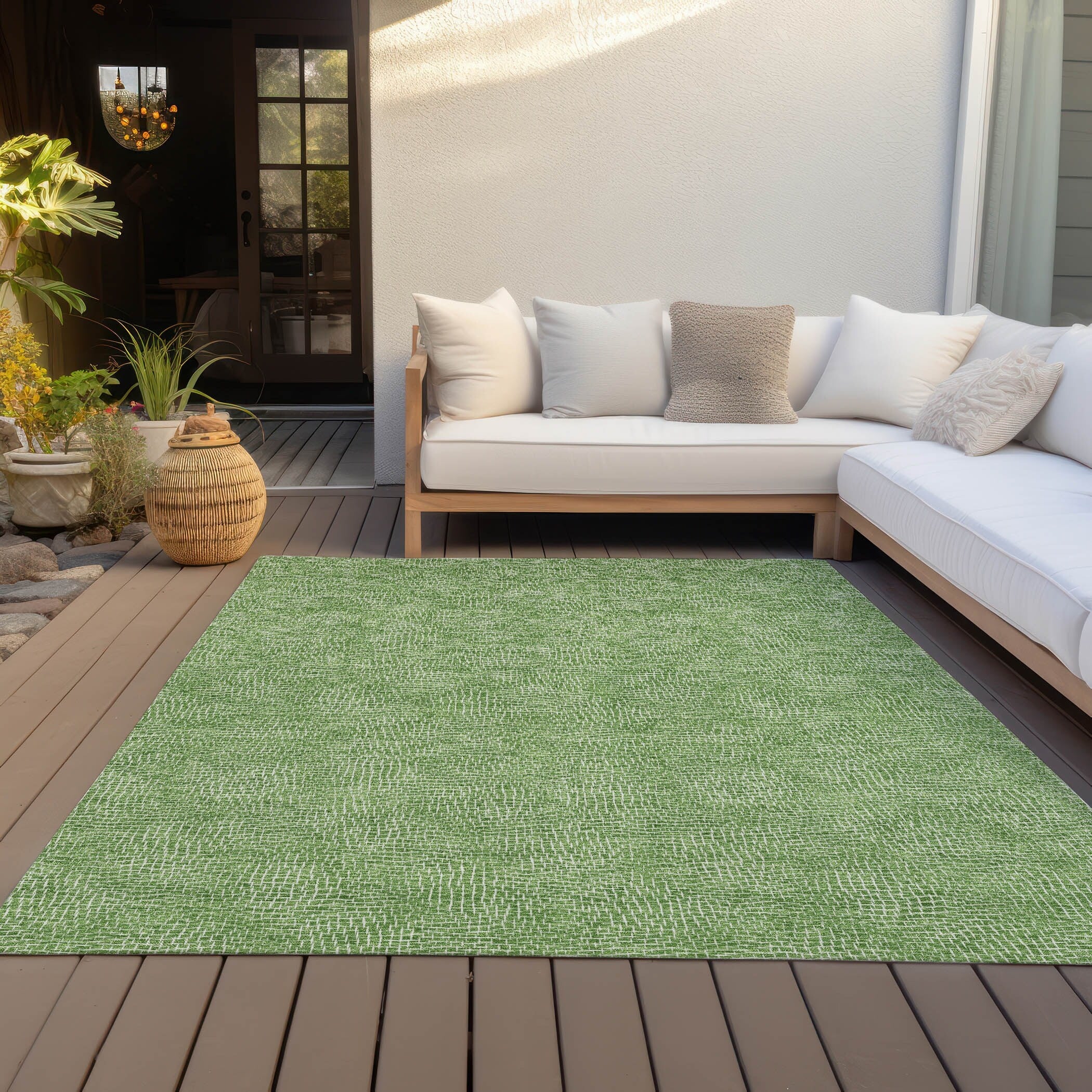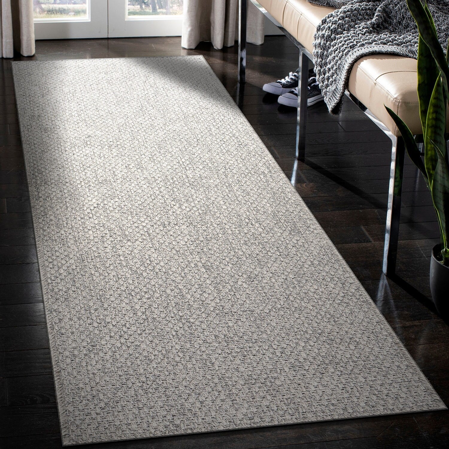 Machine Washable Indoor/ Outdoor Solid Modern Chantille Rug