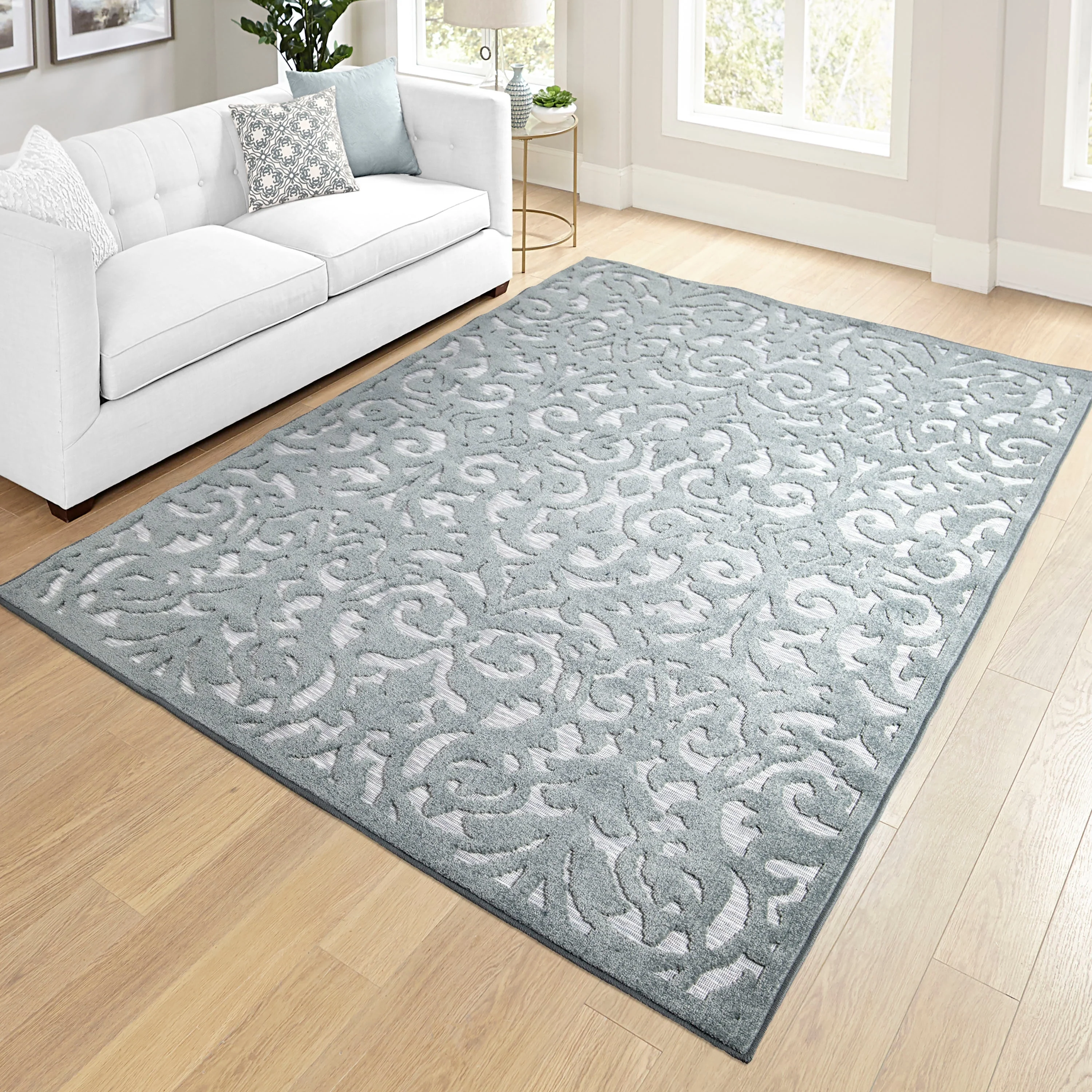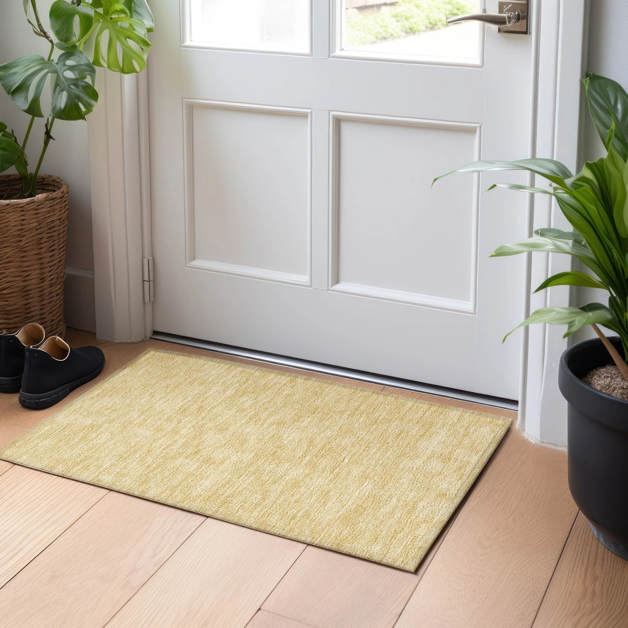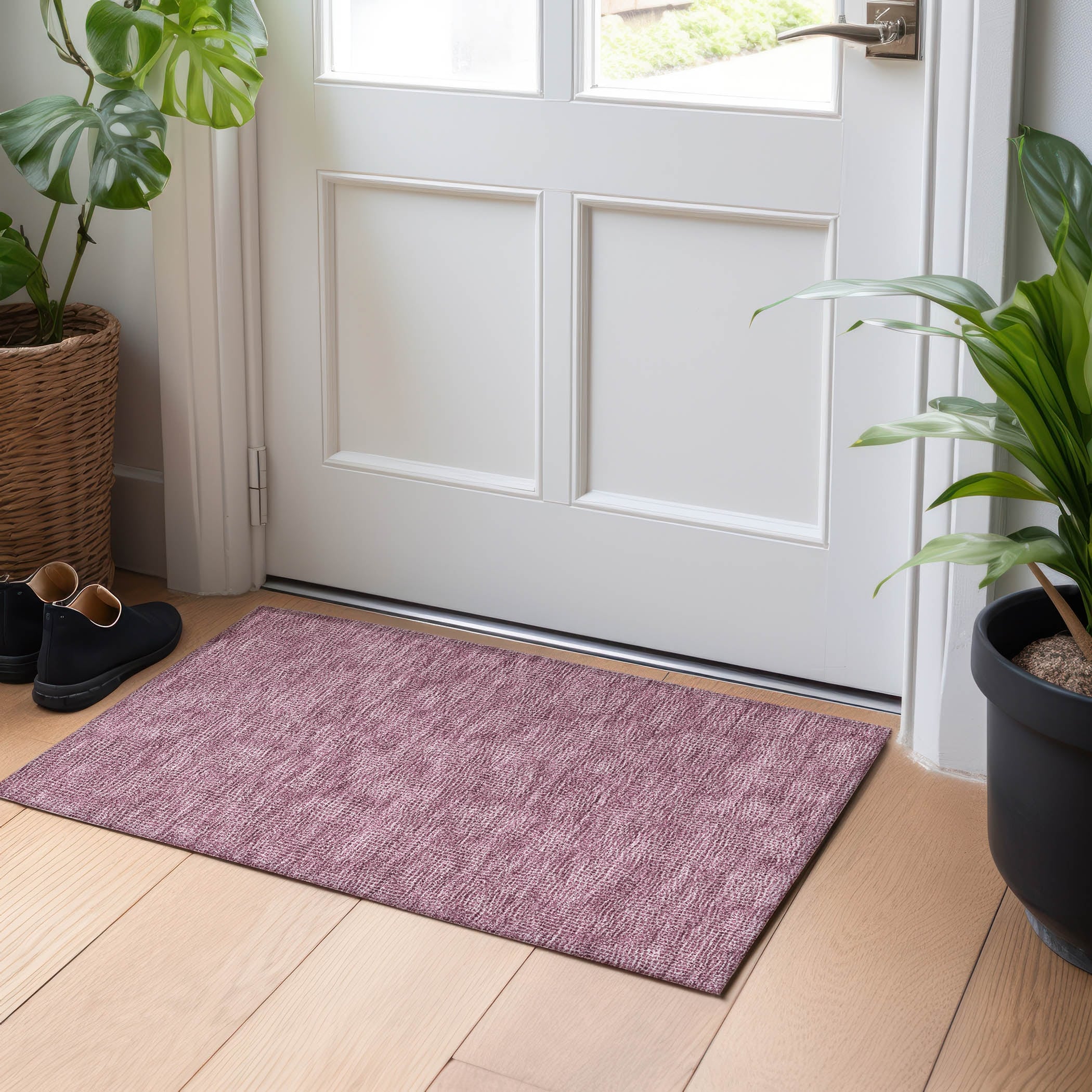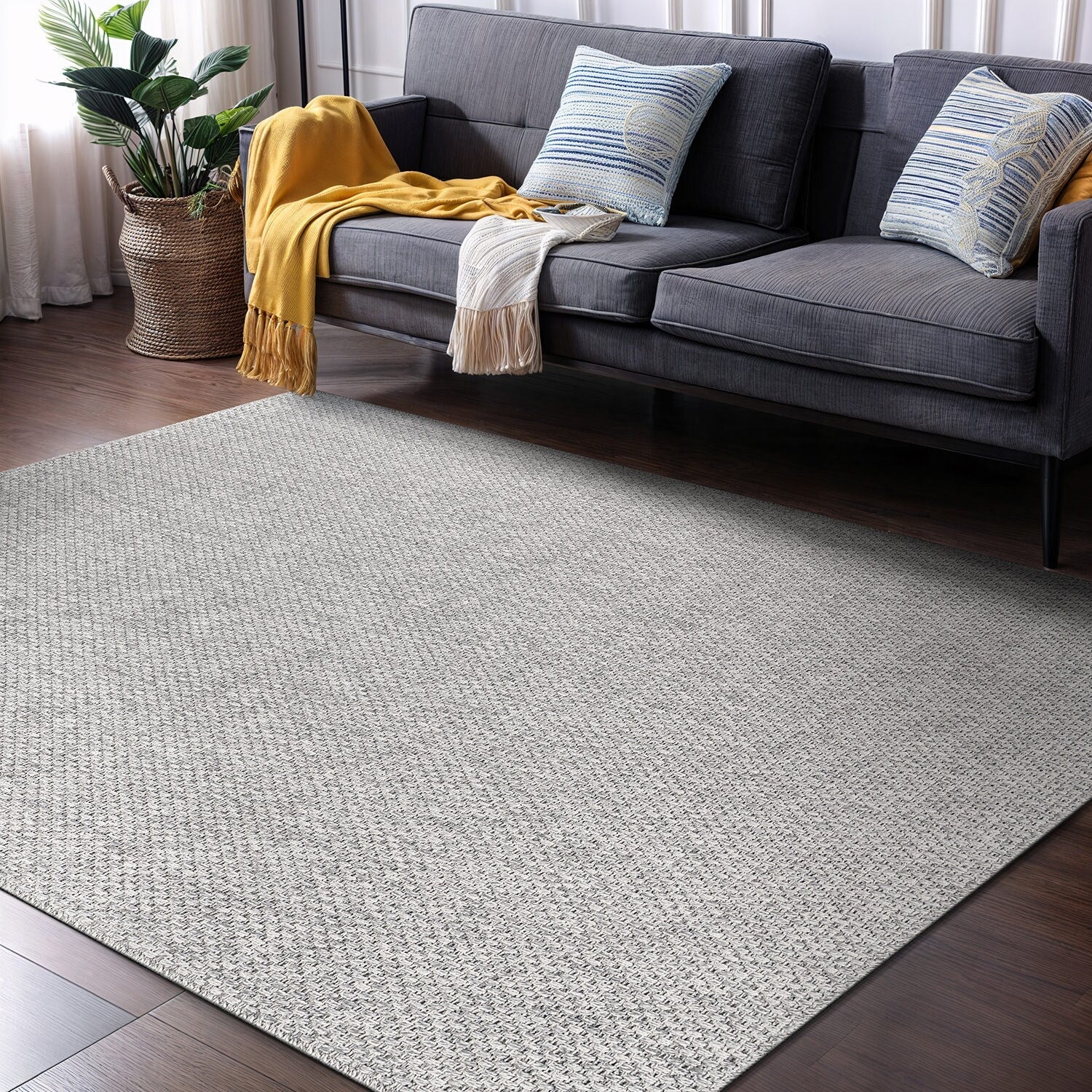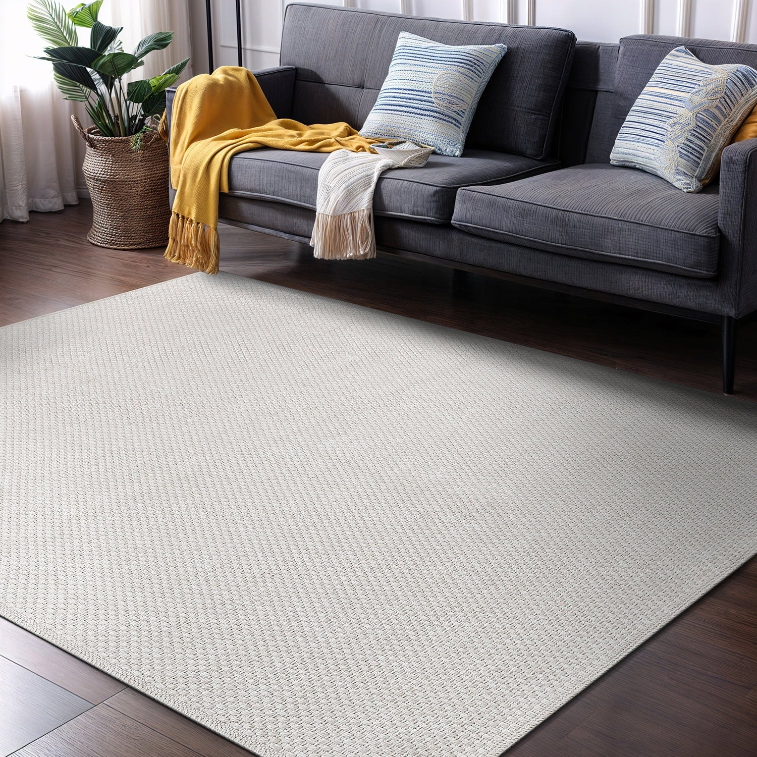 Machine Washable Indoor/ Outdoor Solid Modern Chantille Rug