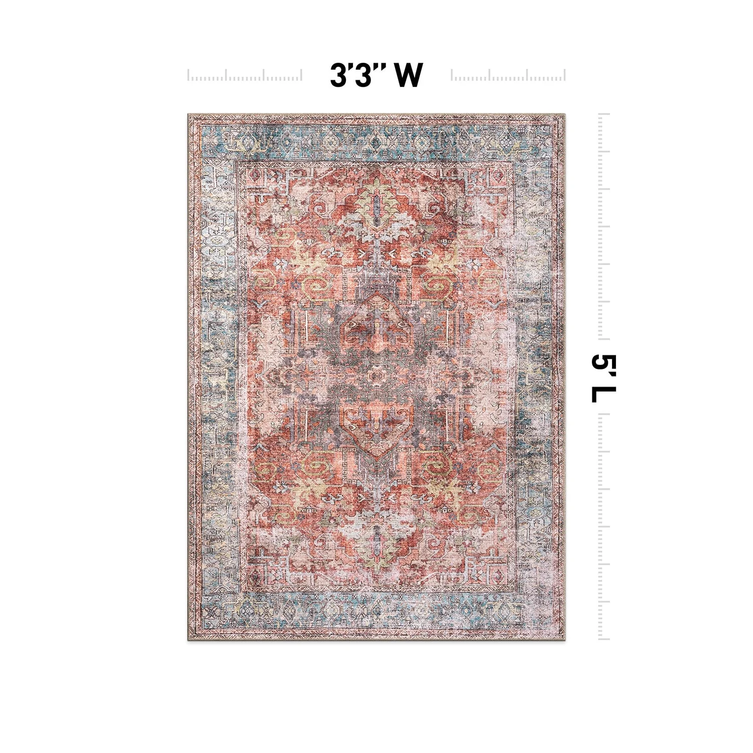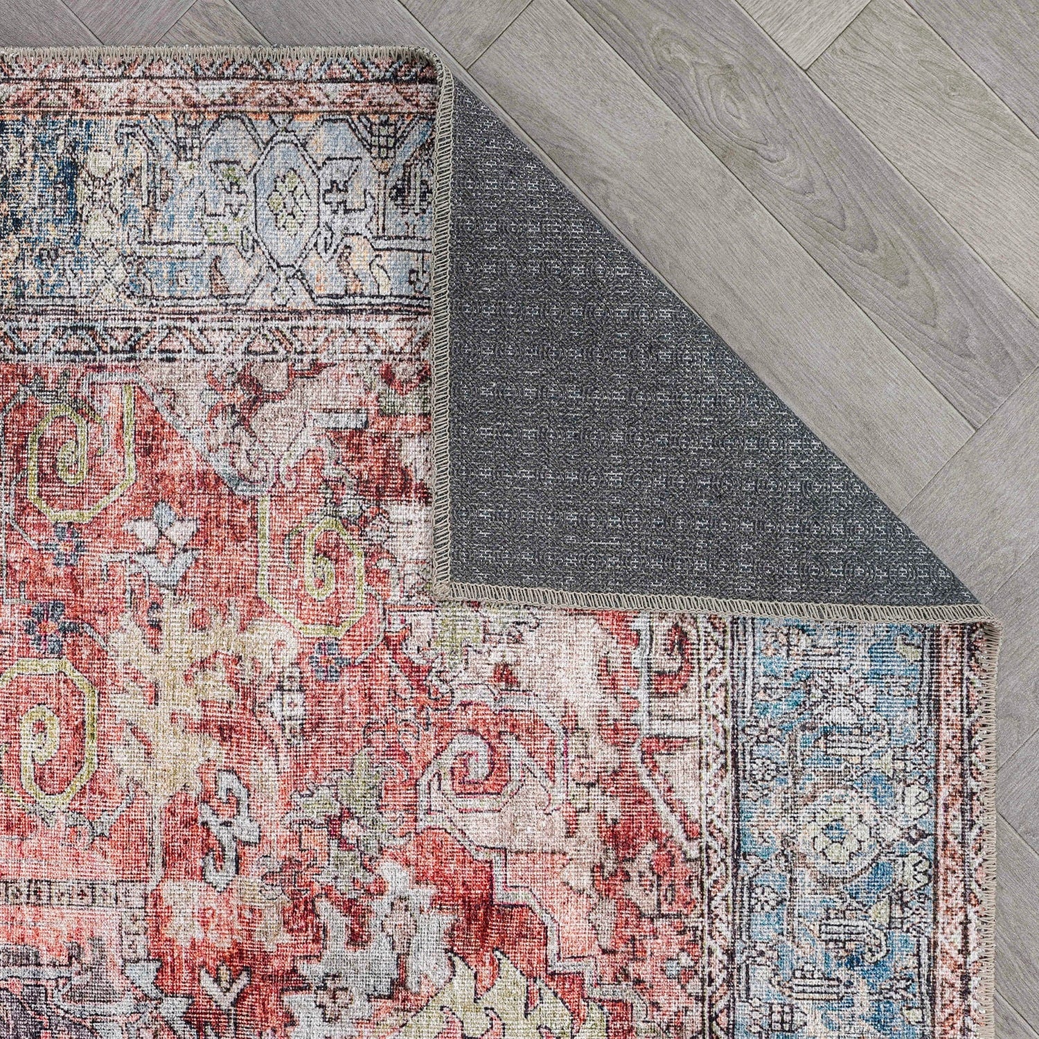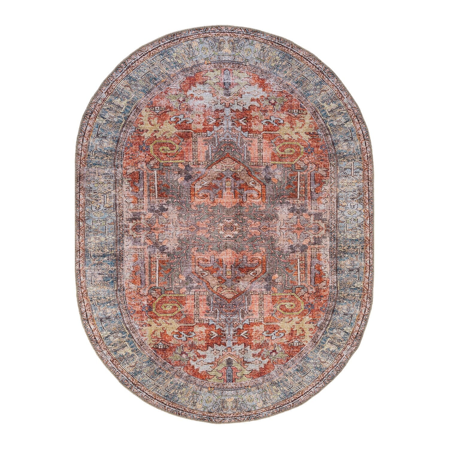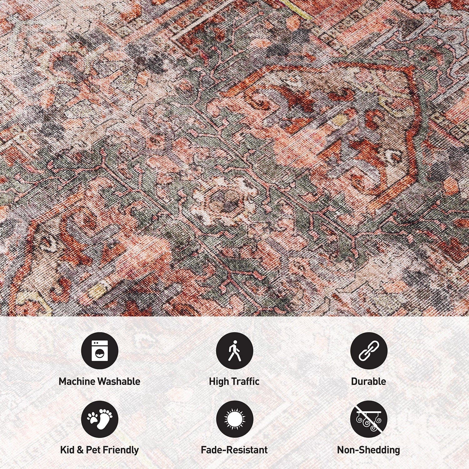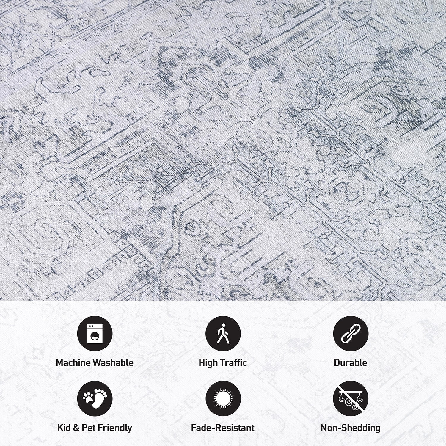 Machine Washable Indoor/ Outdoor Vintage Traditional Chantille Rug