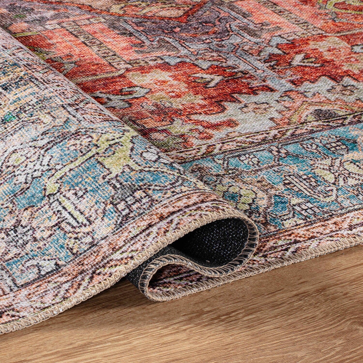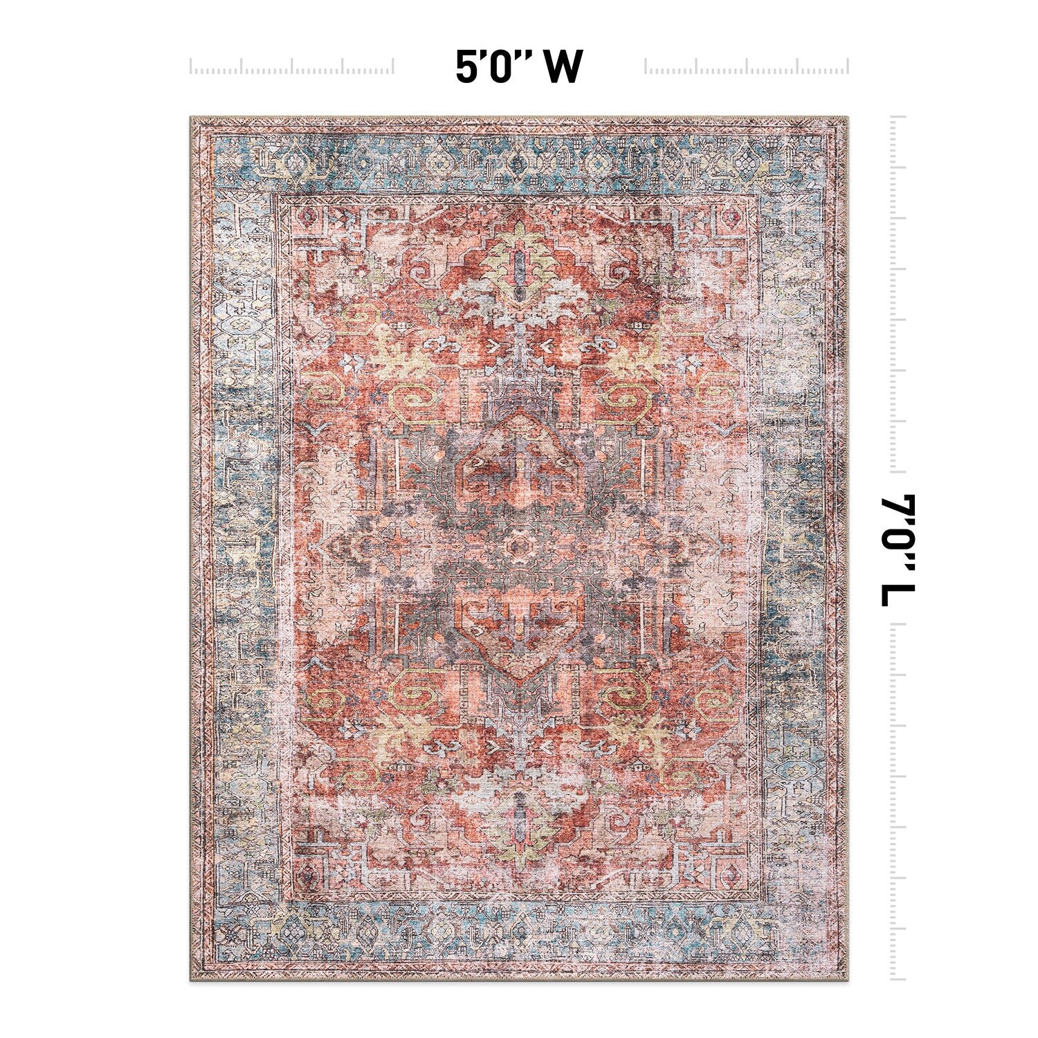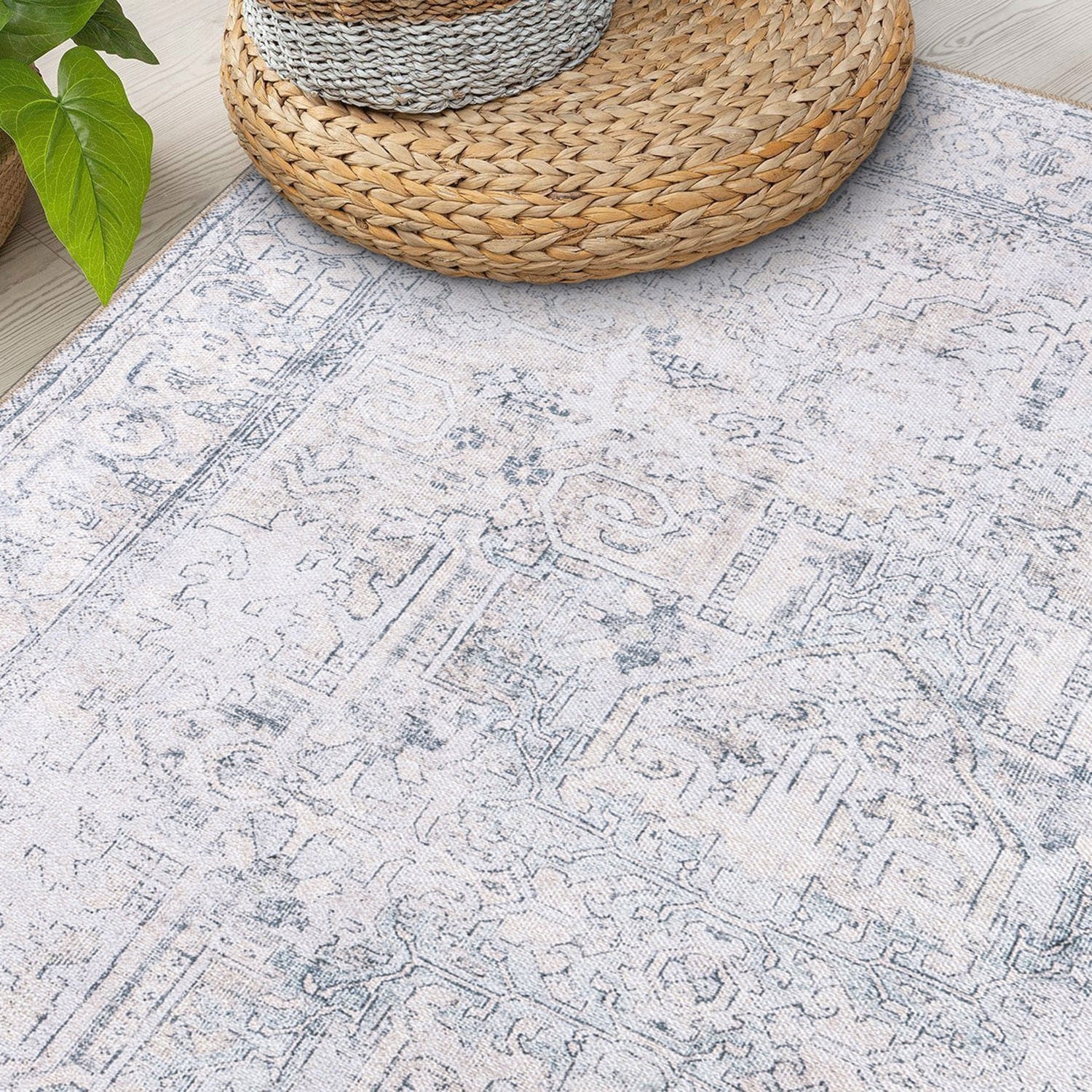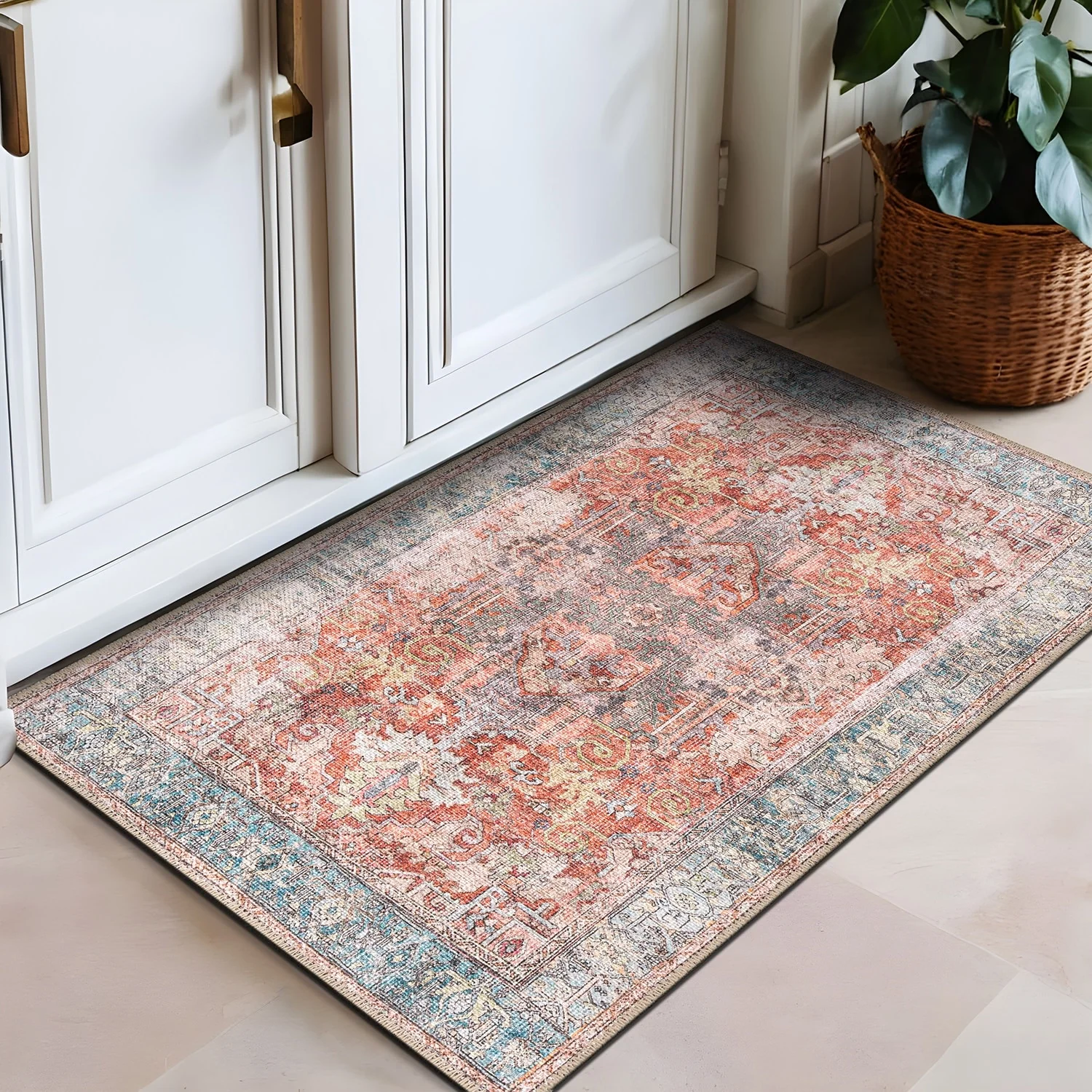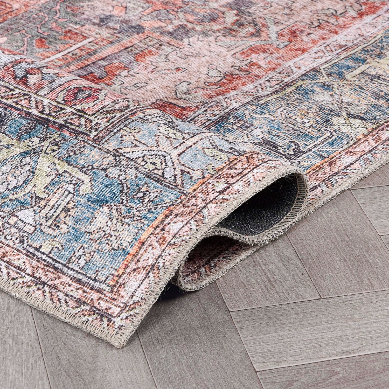 Machine Washable Indoor/ Outdoor Vintage Traditional Chantille Rug