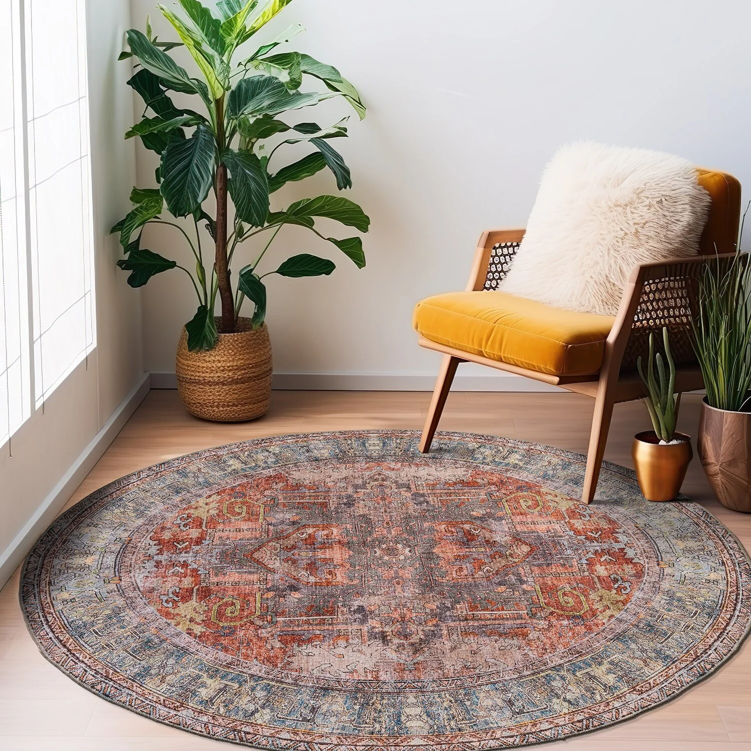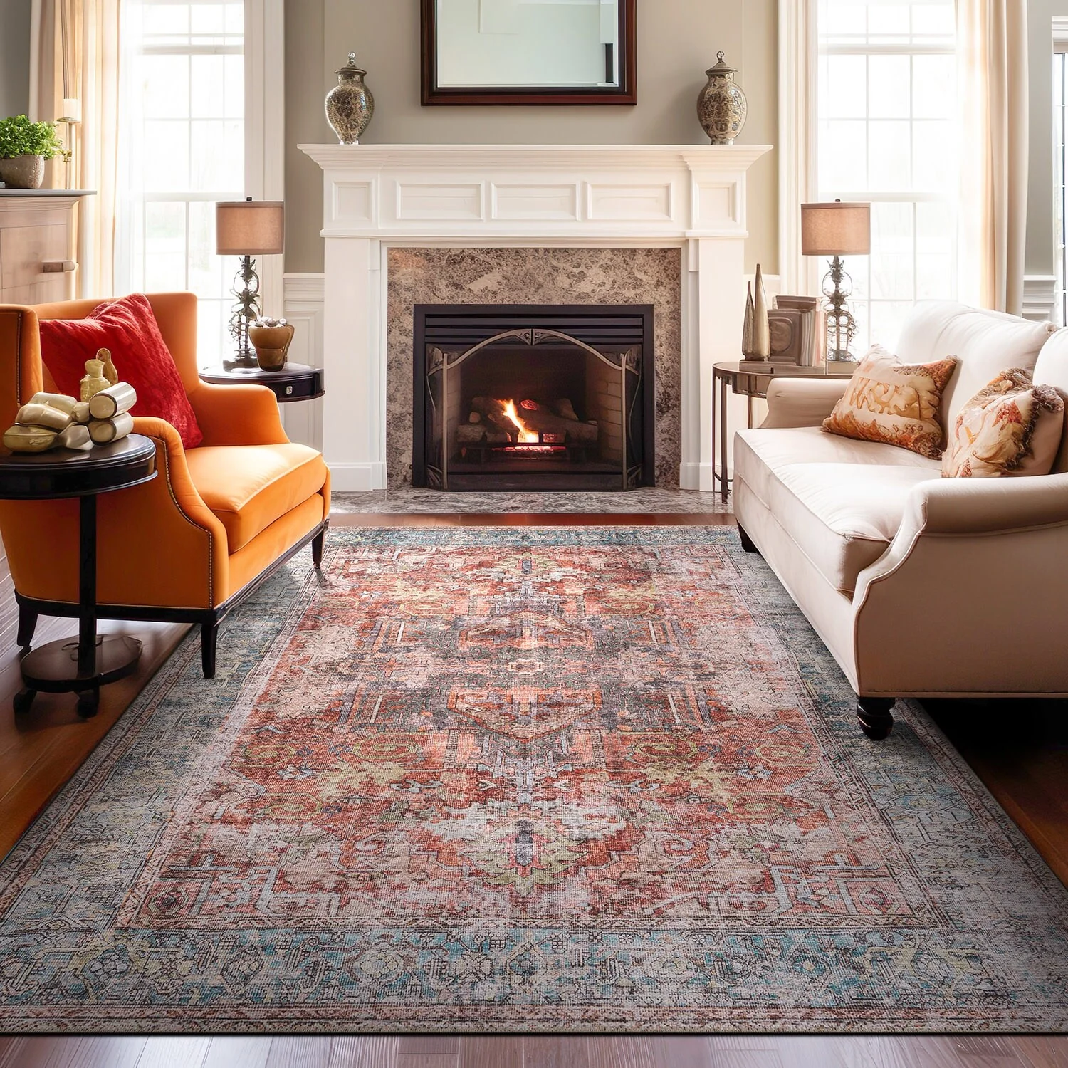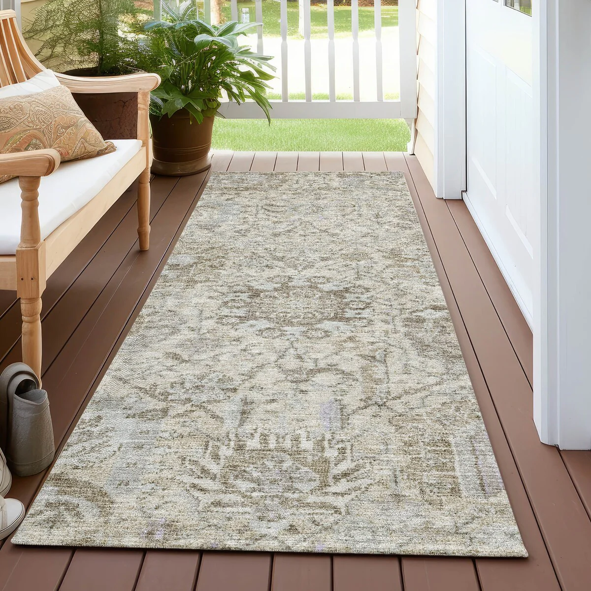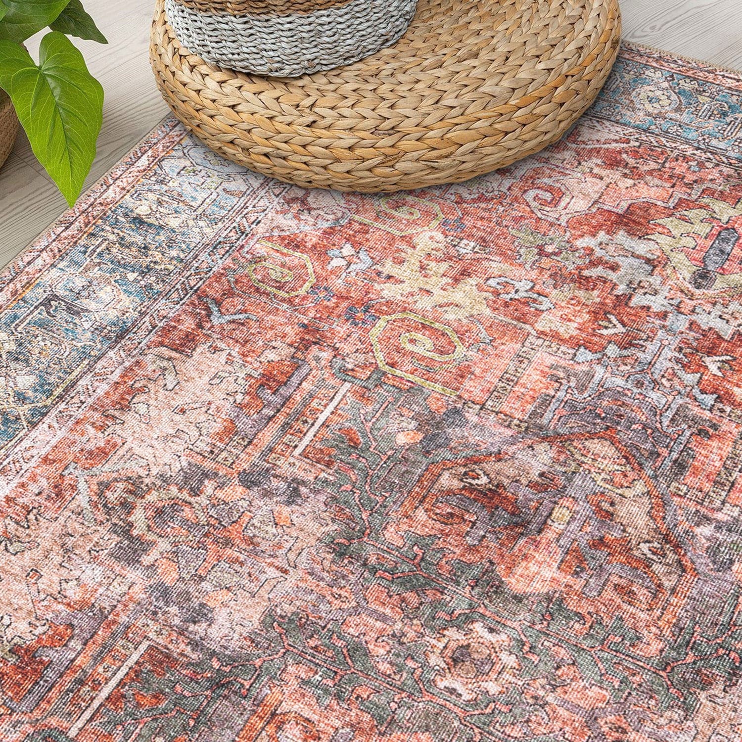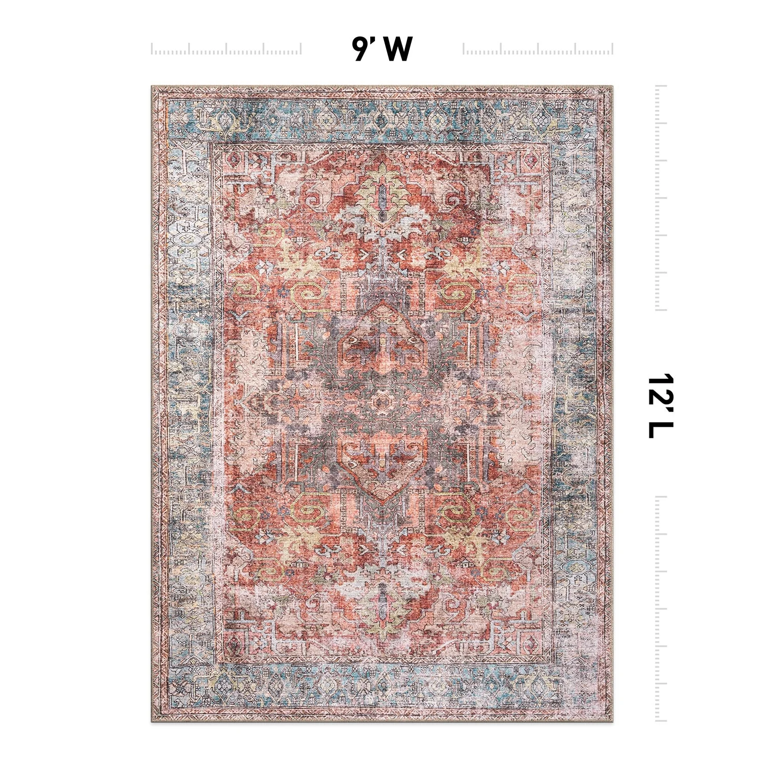 Machine Washable Indoor/ Outdoor Vintage Traditional Chantille Rug