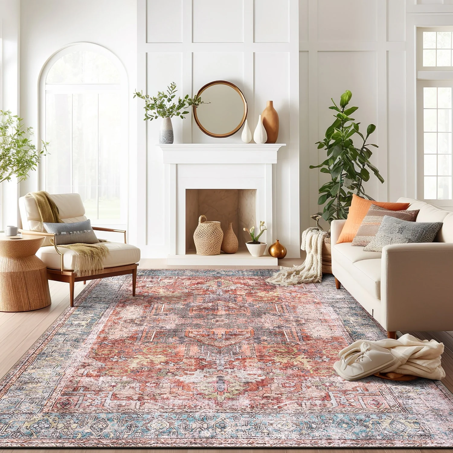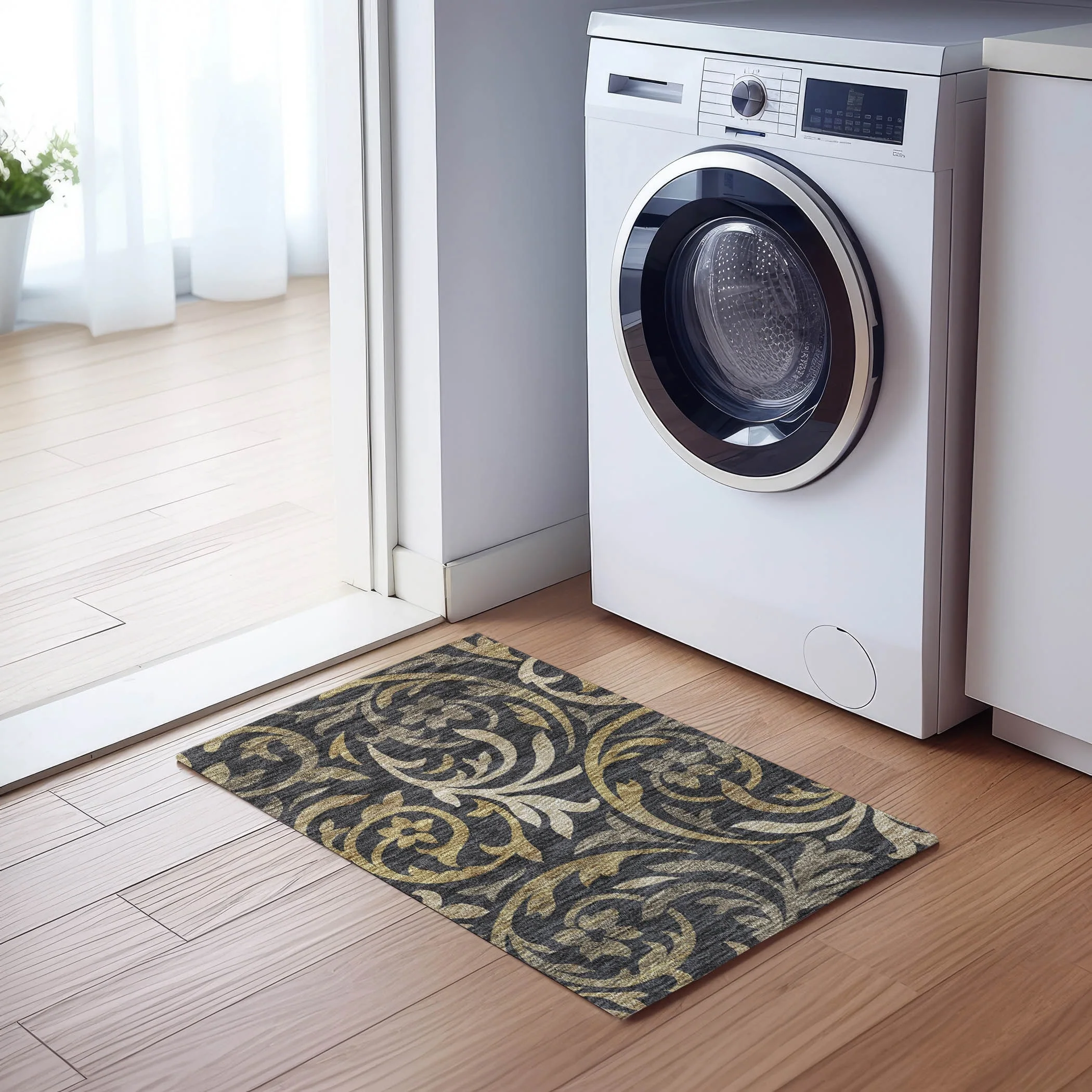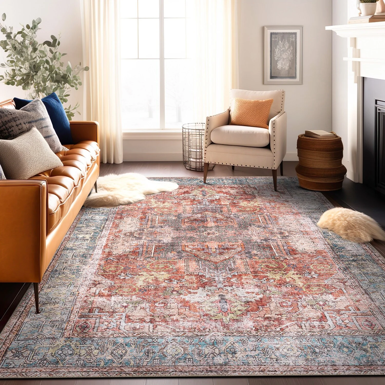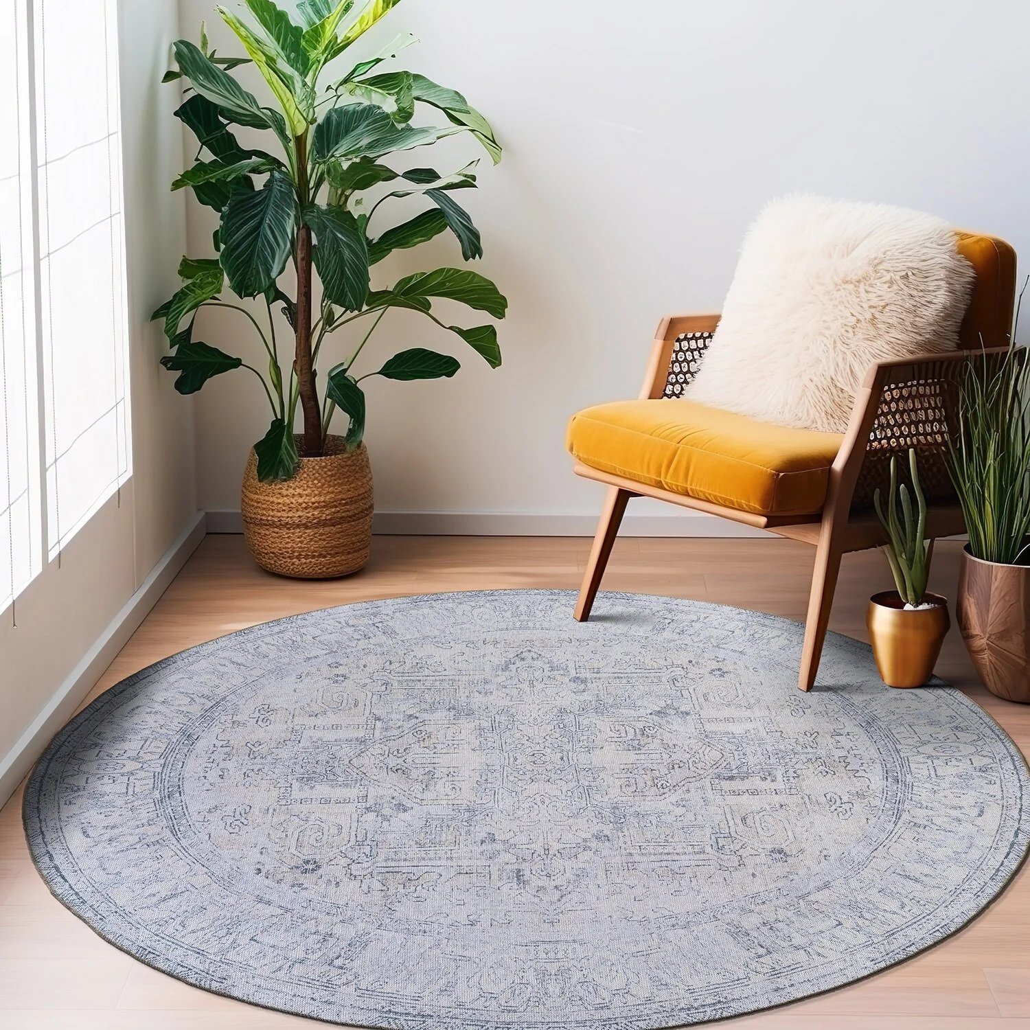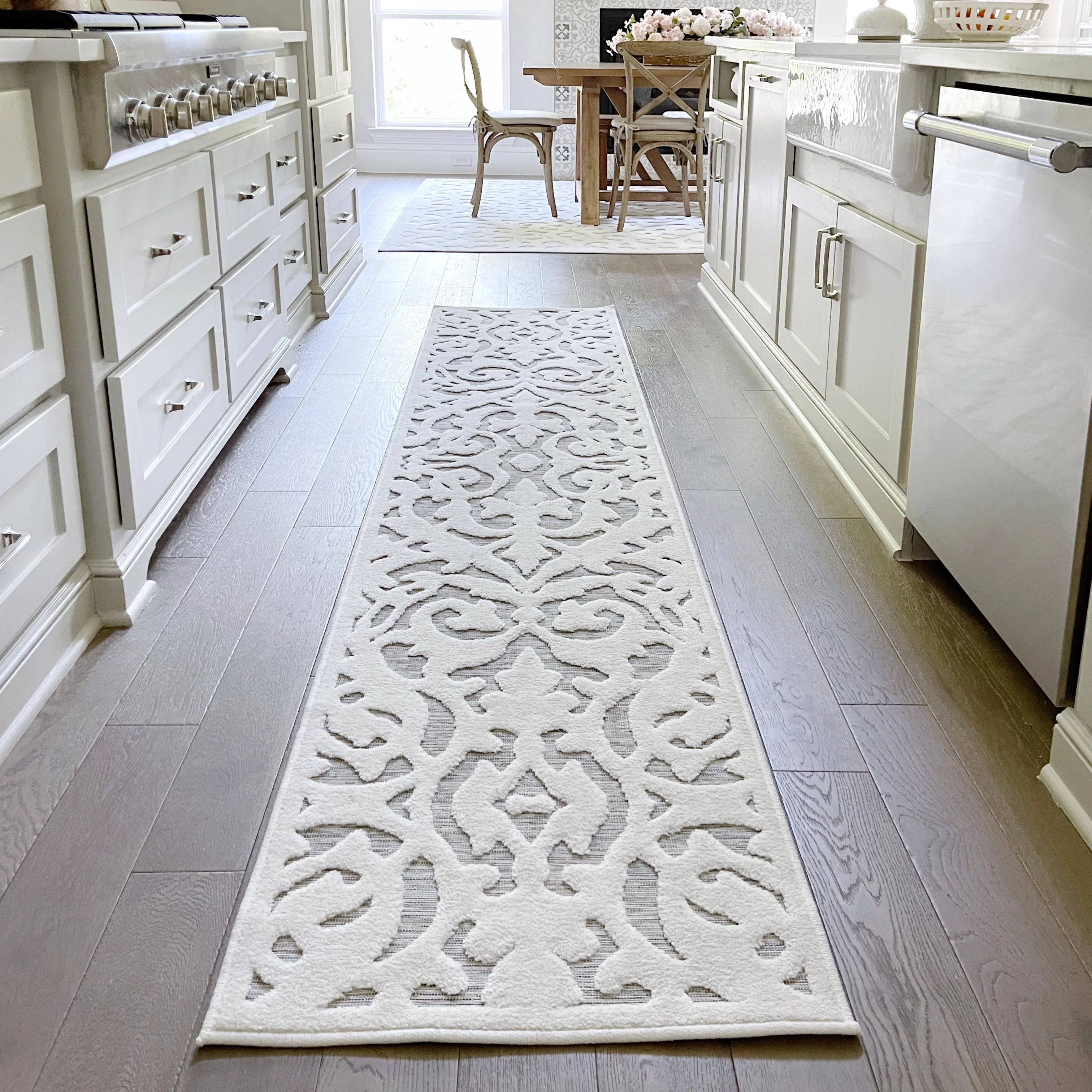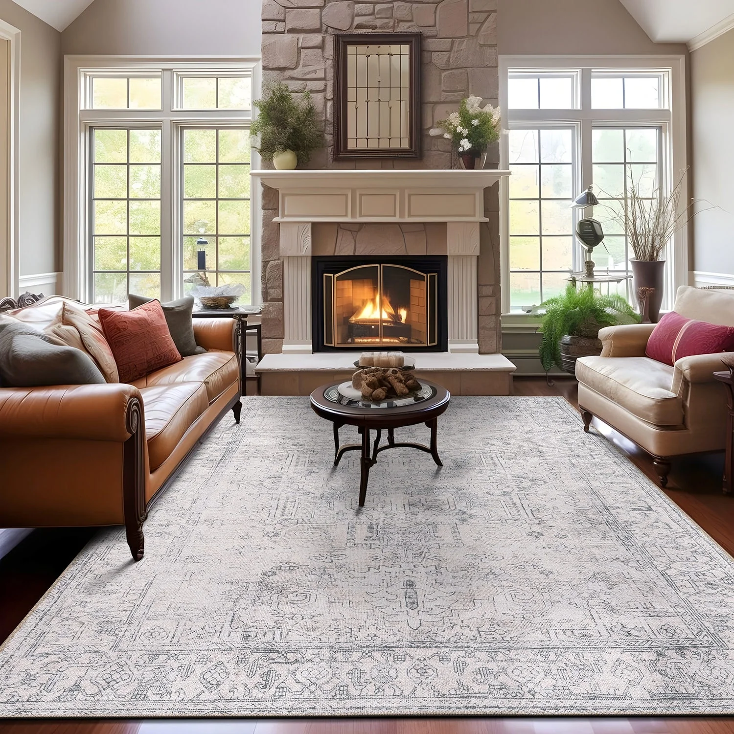 Machine Washable Indoor/ Outdoor Vintage Traditional Chantille Rug