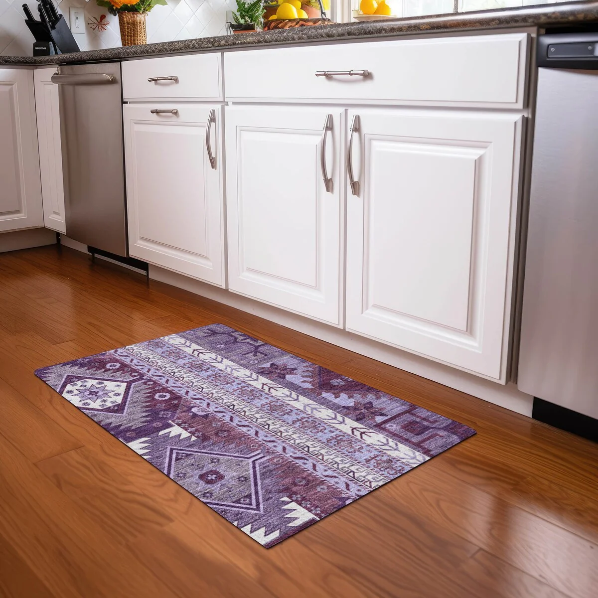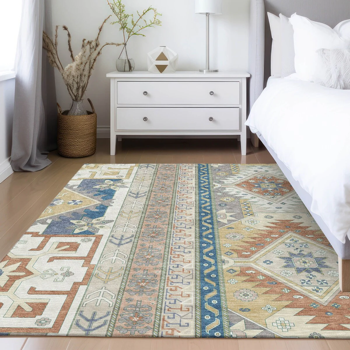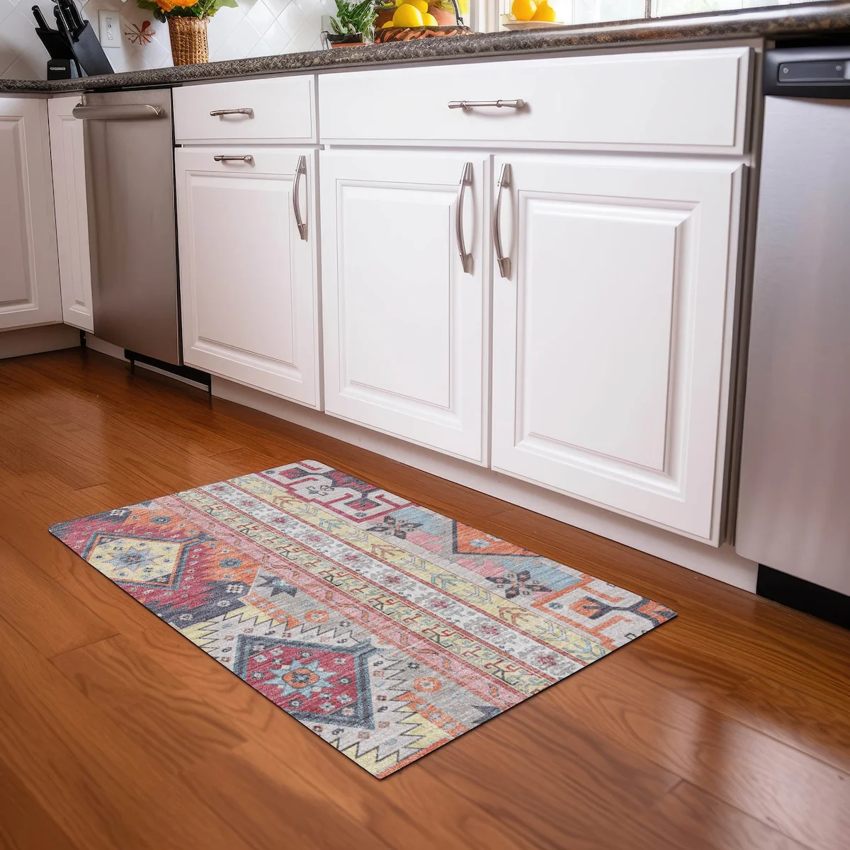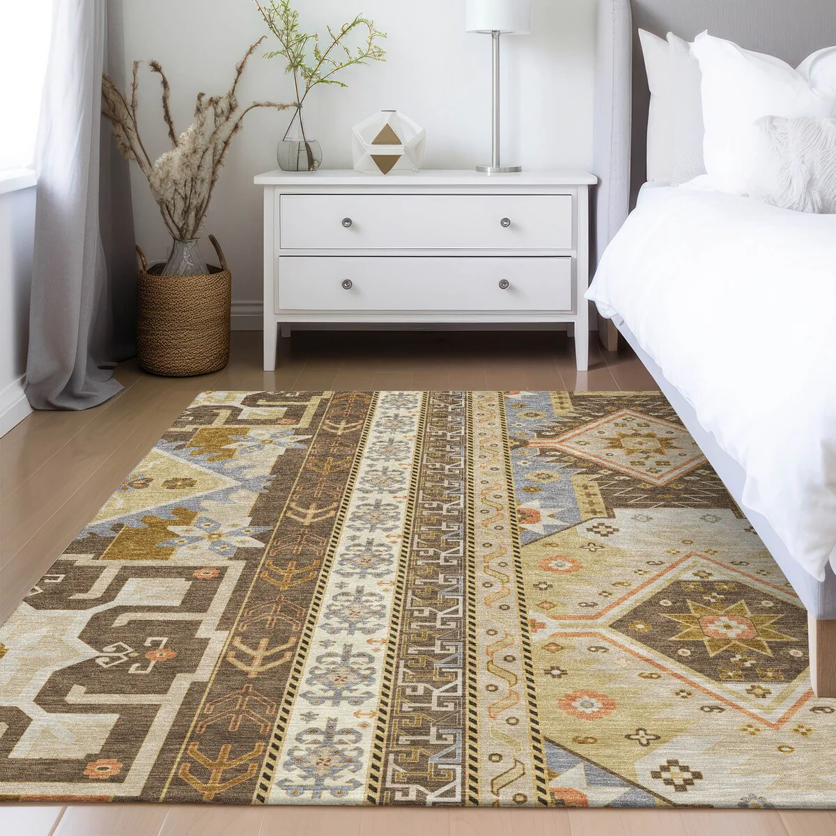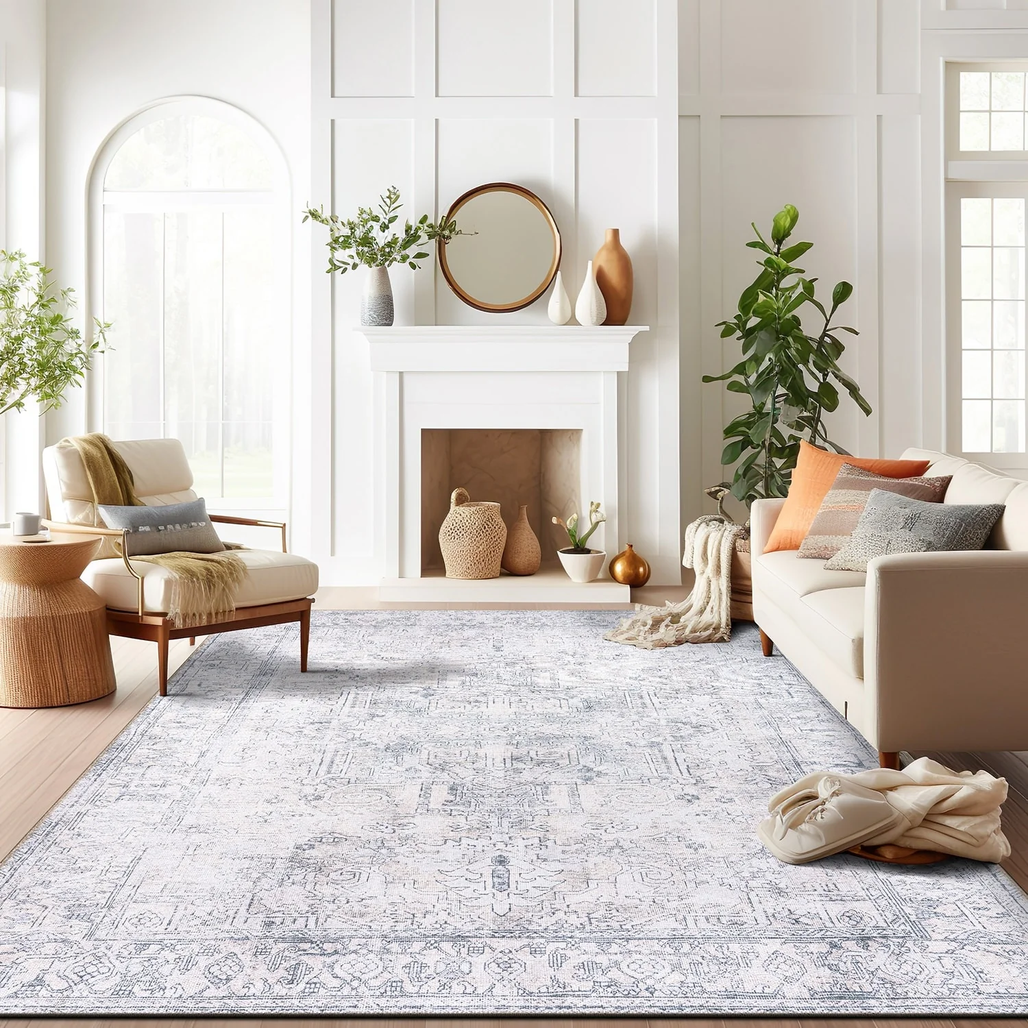 Machine Washable Indoor/ Outdoor Vintage Traditional Chantille Rug
