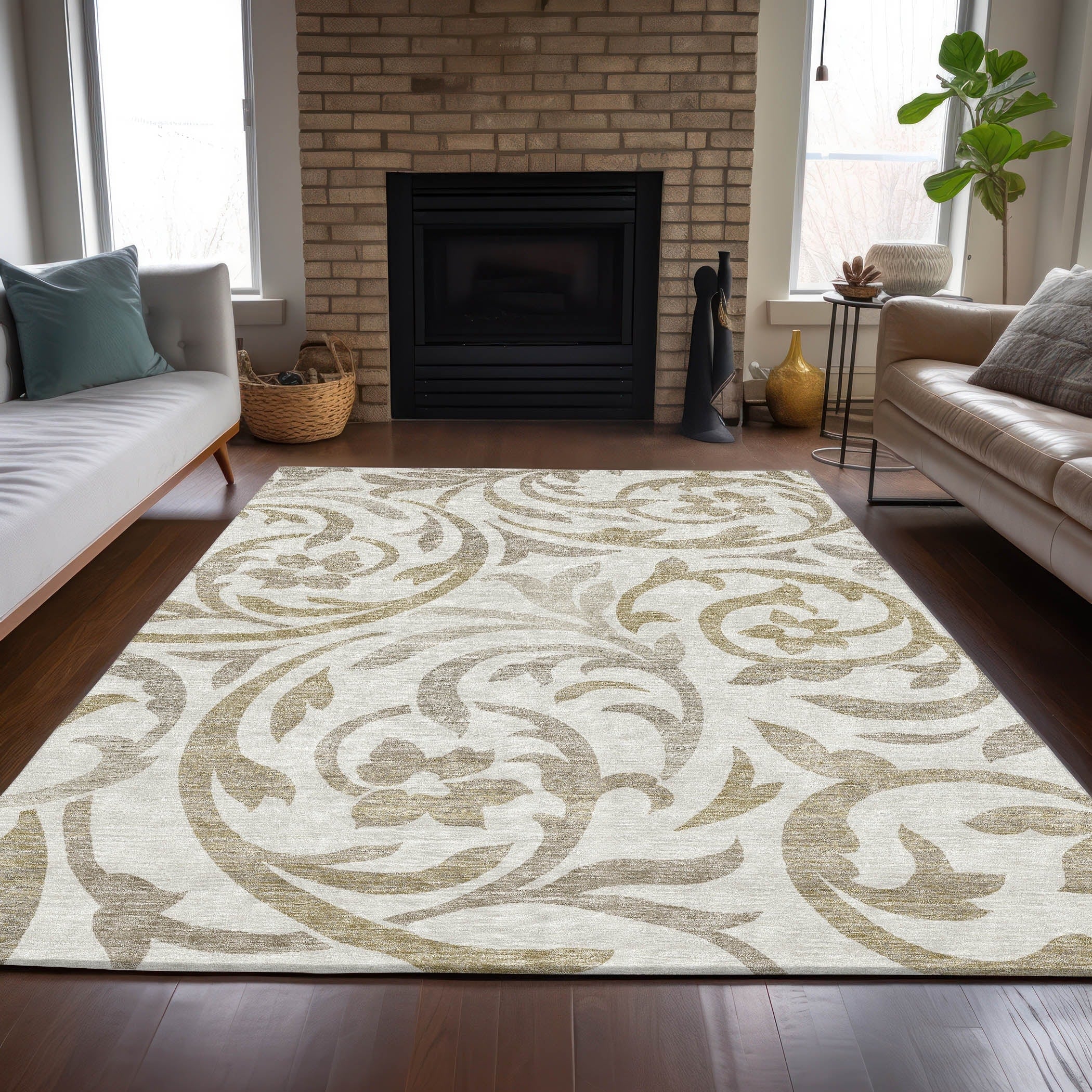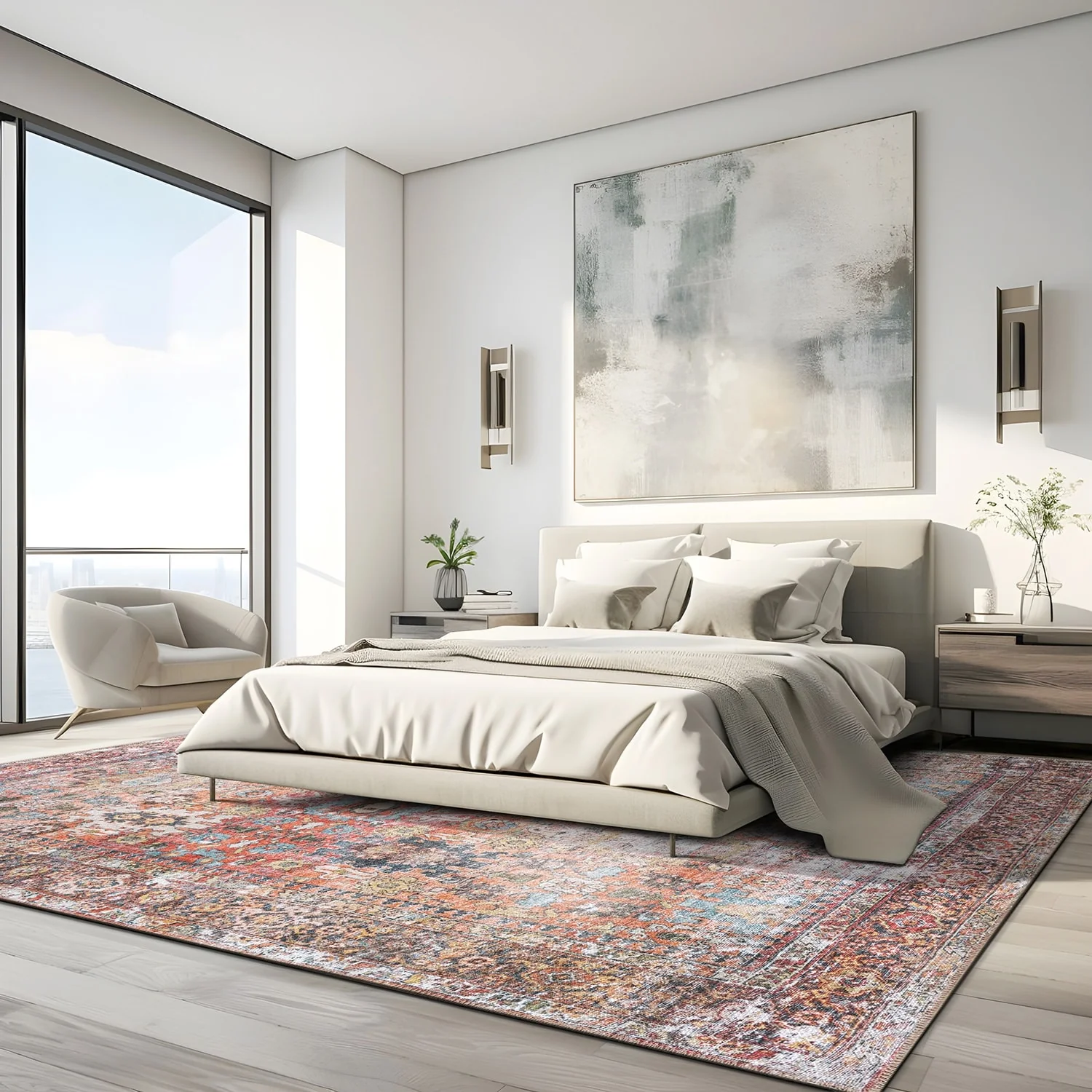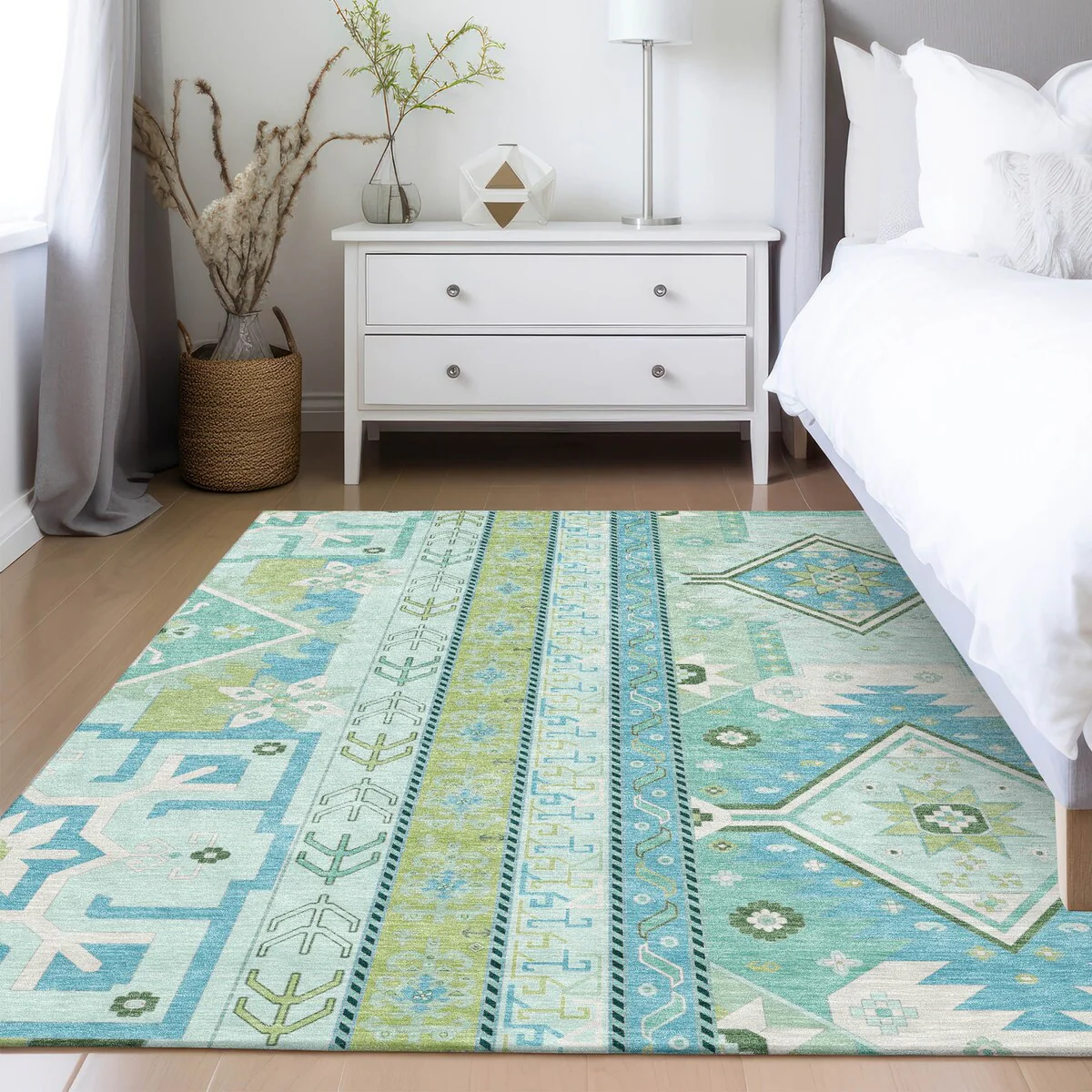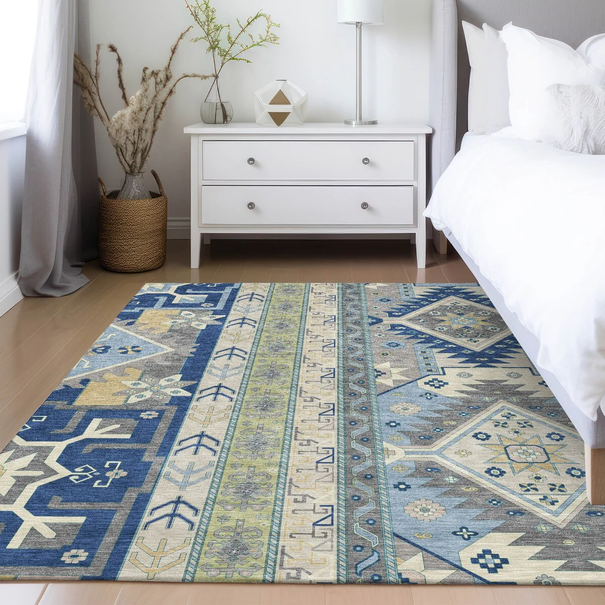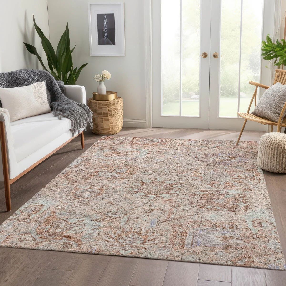 Machine Washable Indoor/ Outdoor Vintage Traditional Chantille Rug
