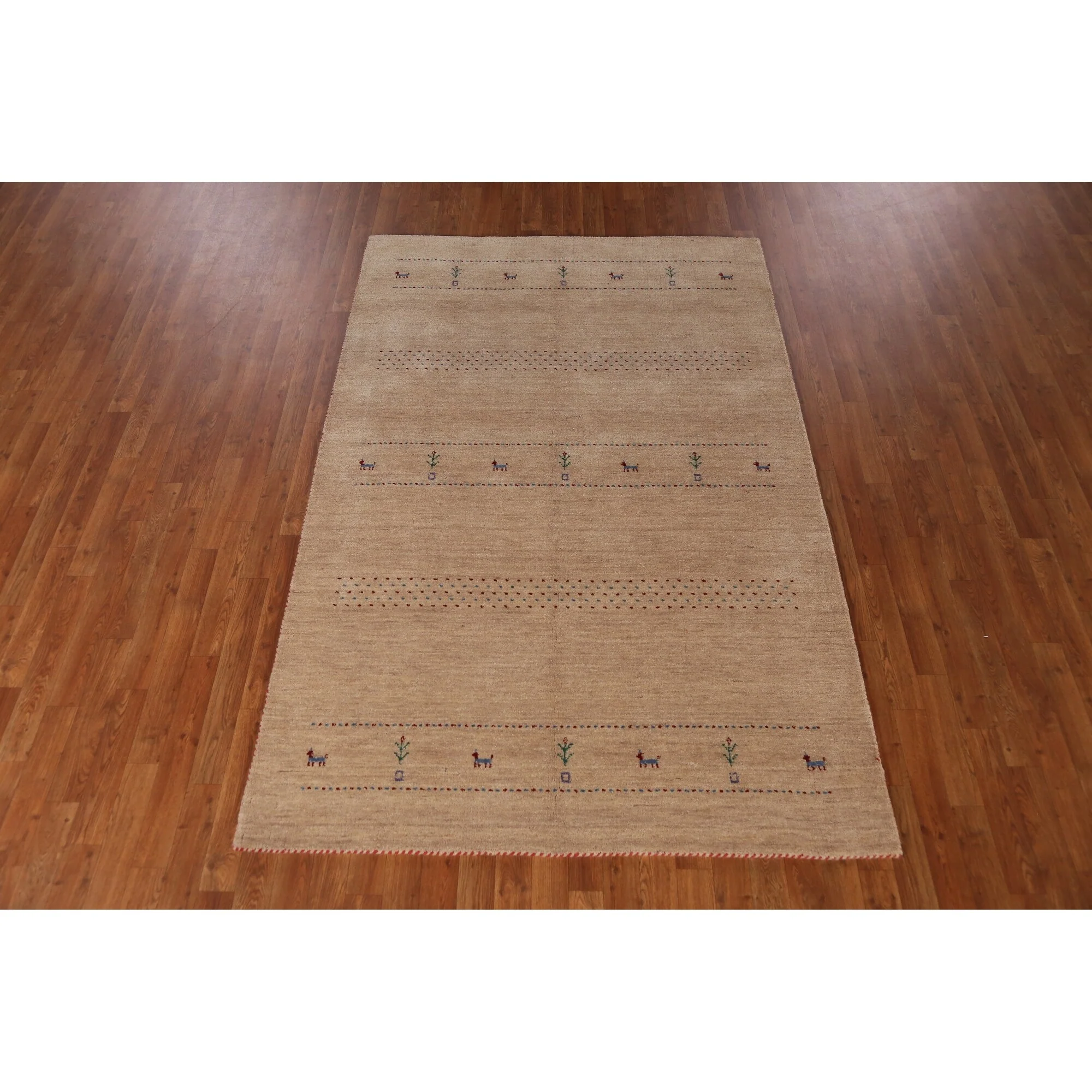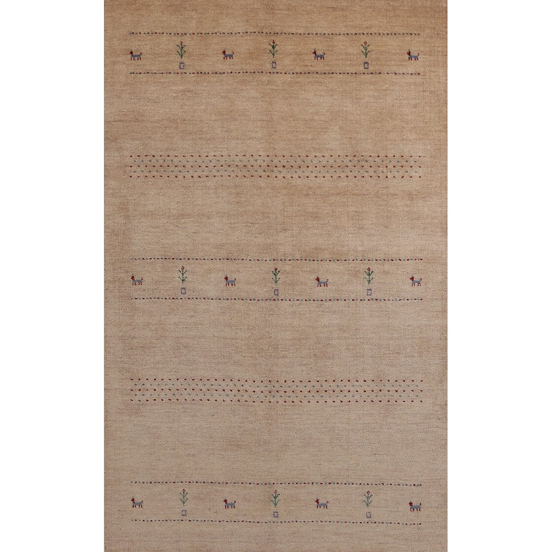 Little Animals Camel Gabbeh Indian Area Rug Handmade Wool Carpet - 5'0" x 7'8"