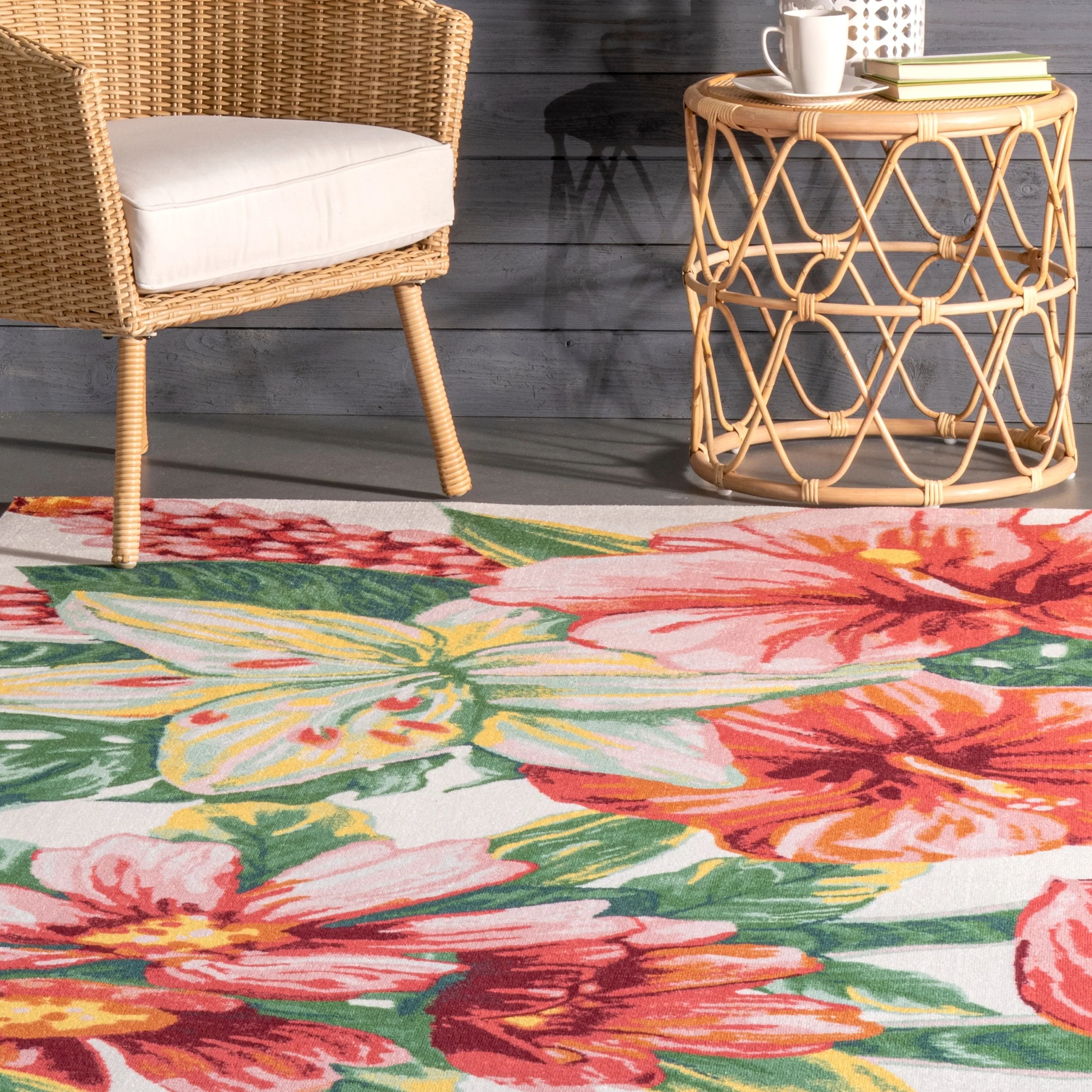 Nuloom Multi Indoor/Outdoor Contemporary Tropical Majestic Lush Hibiscus Area Rug