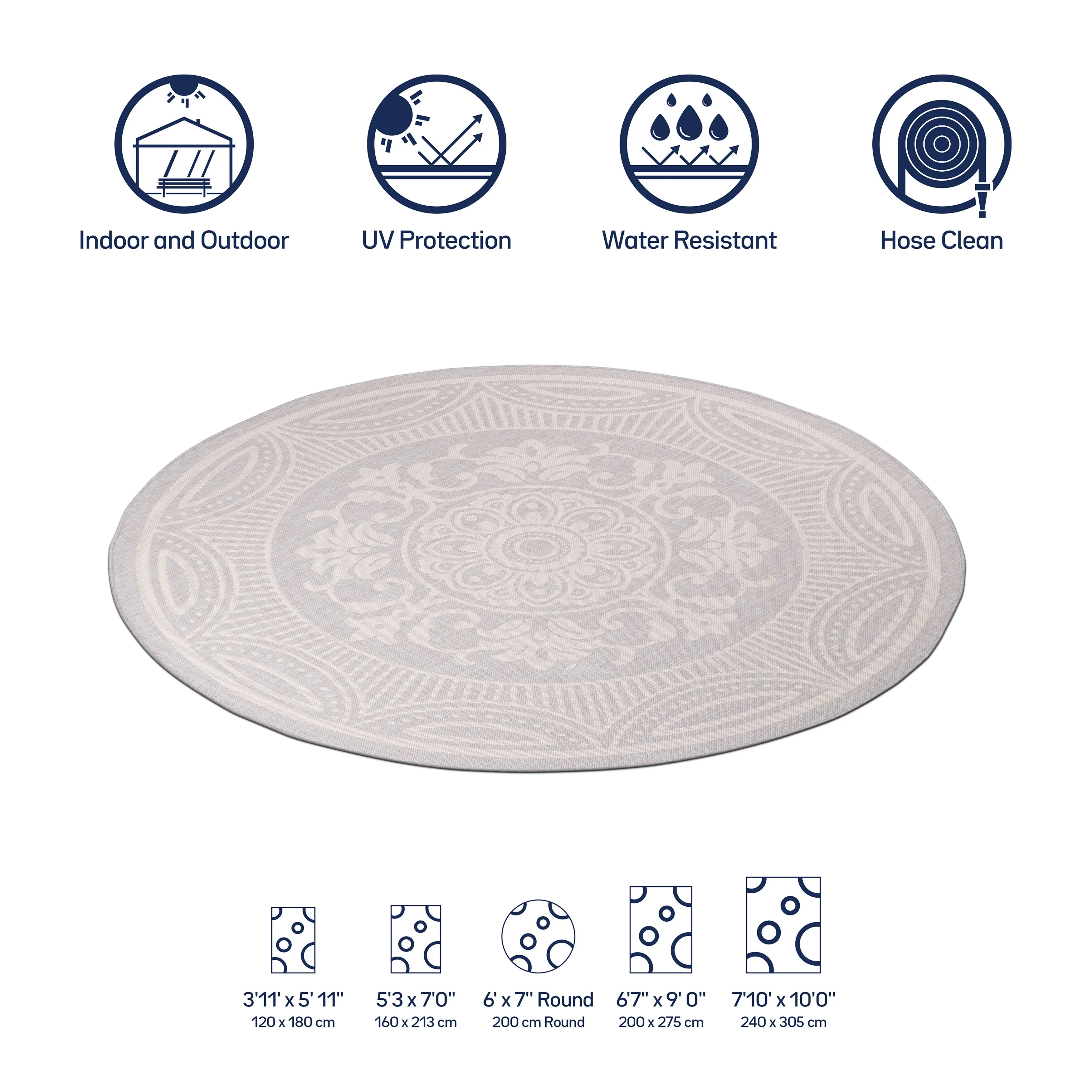 Beverly Rug Medallion Modern Indoor Outdoor Washable Area Rug