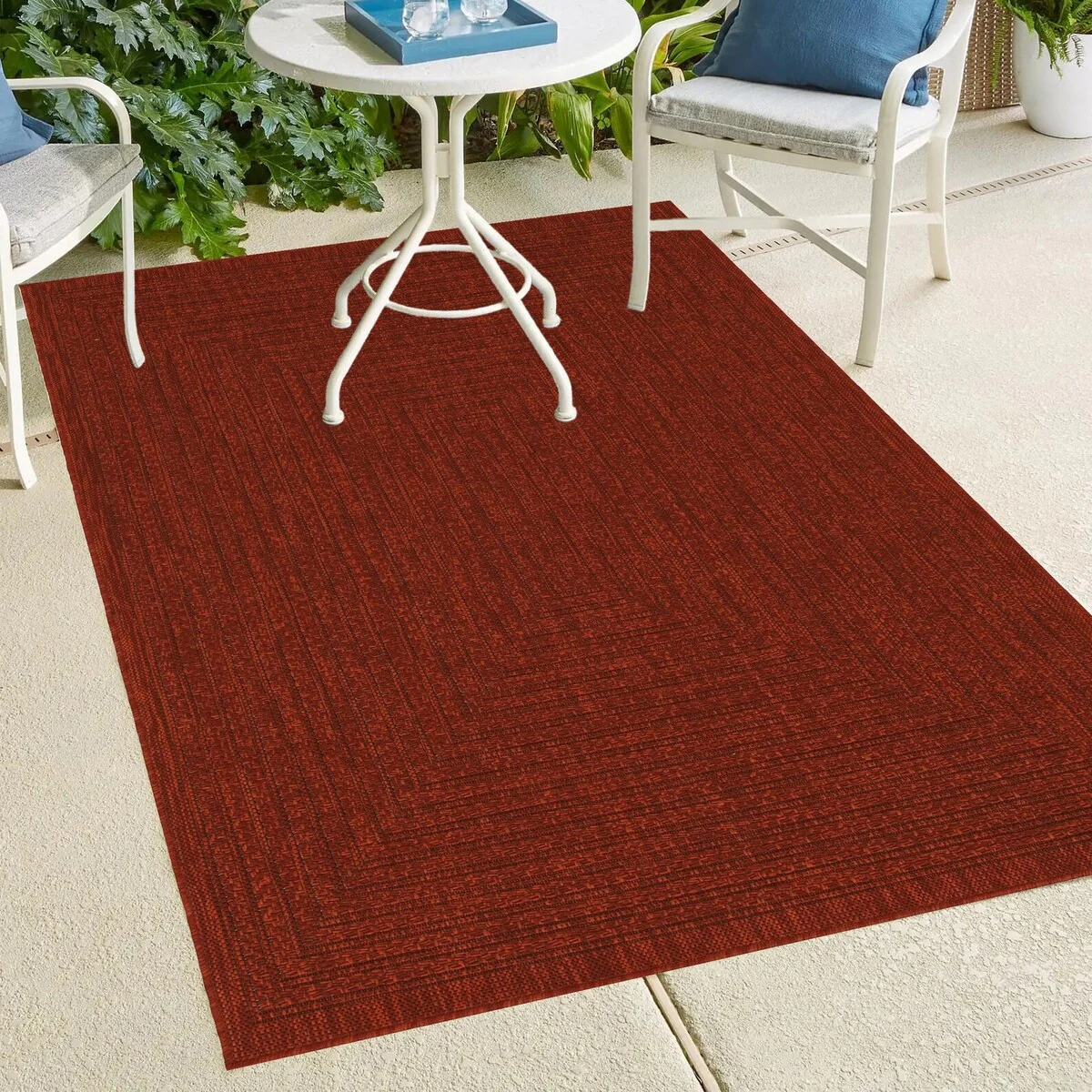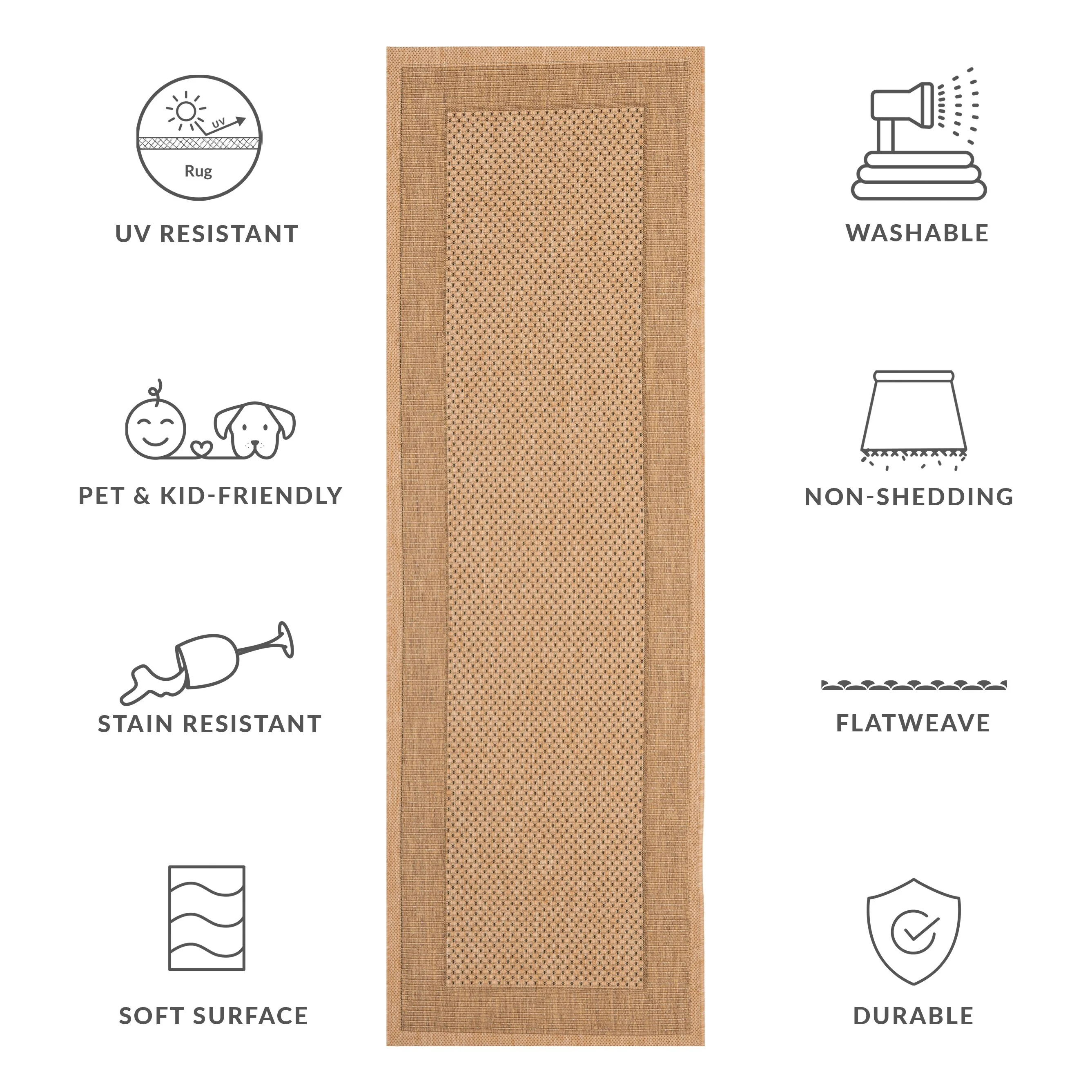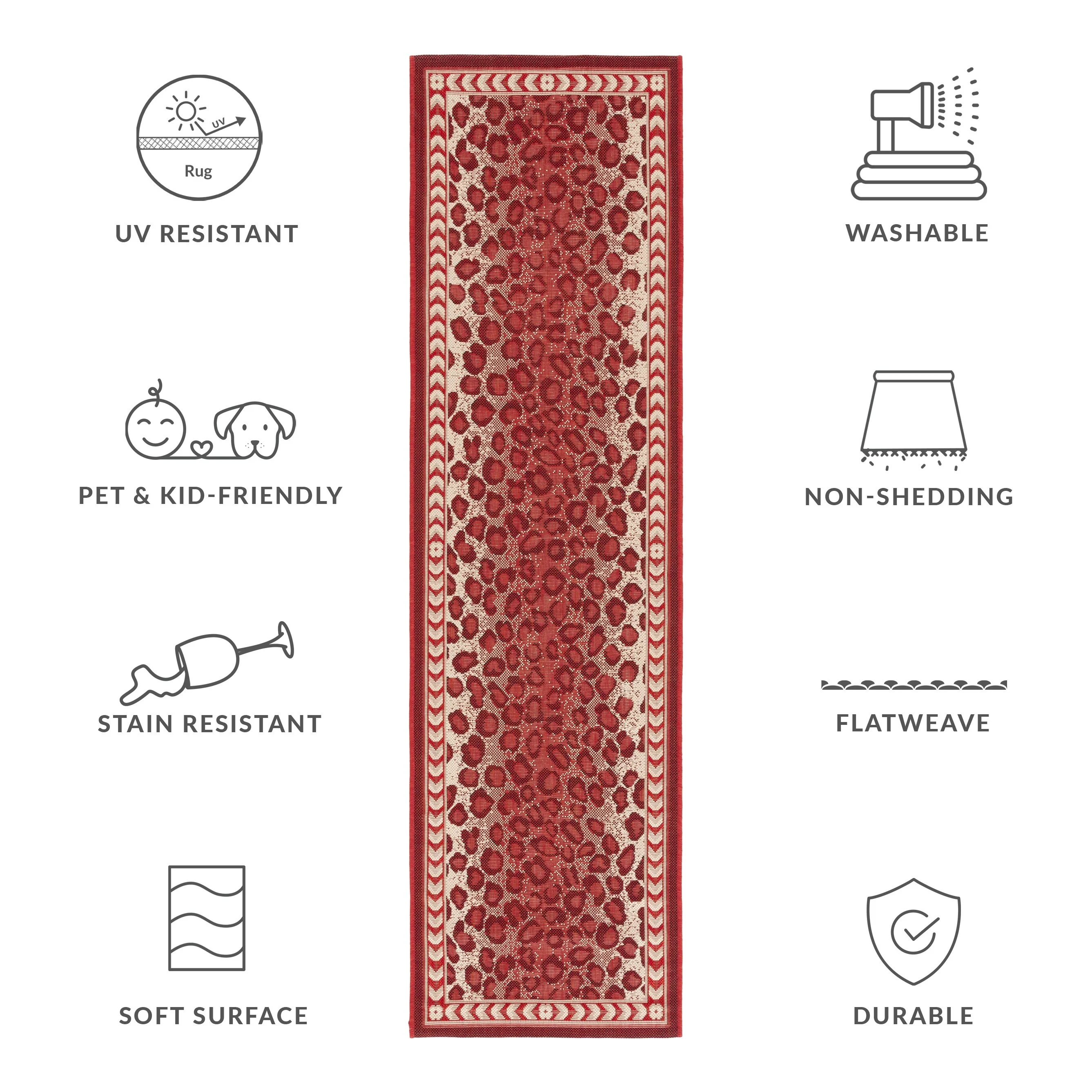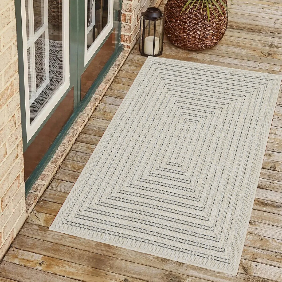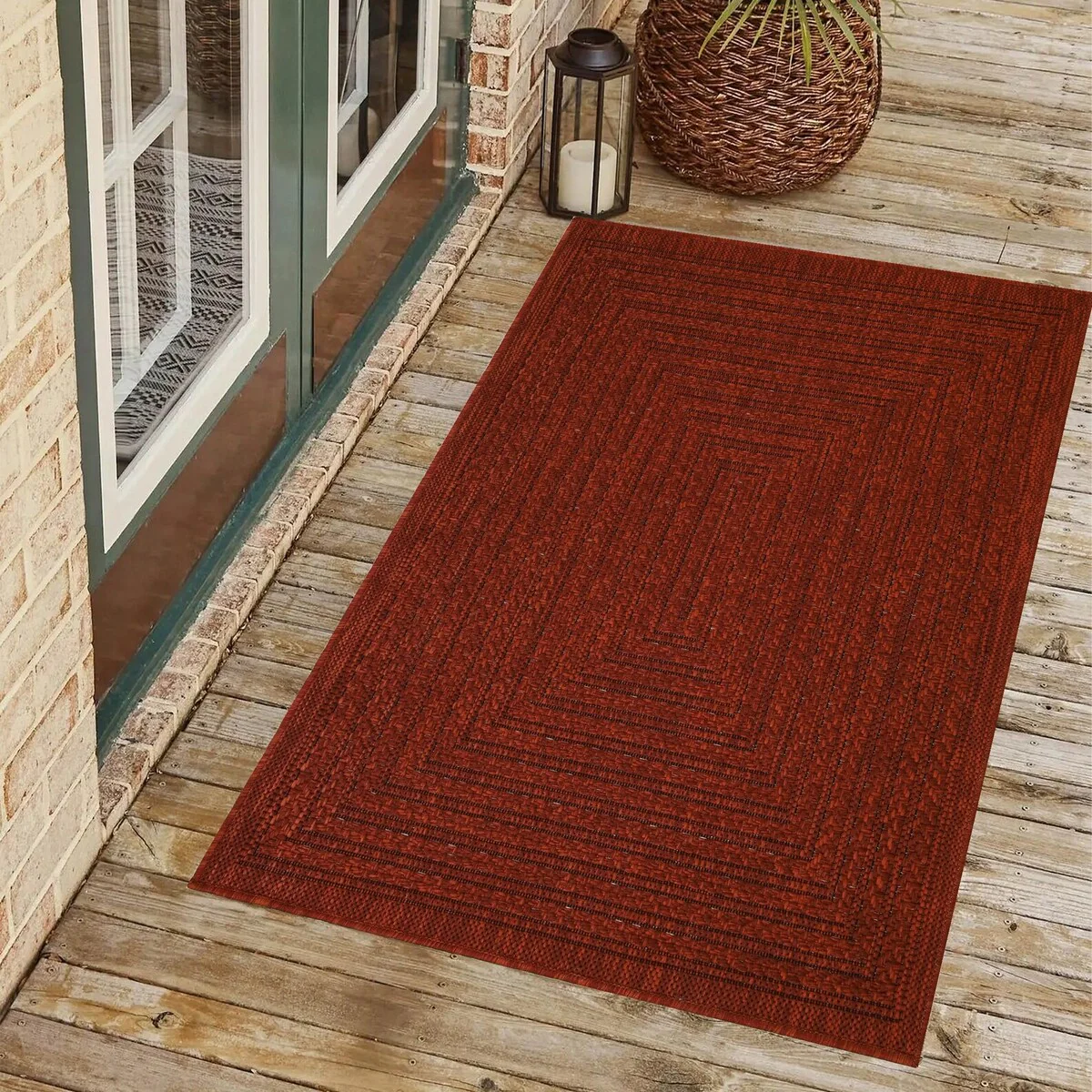 Indoor/Outdoor Area Rug/ Runner/ Doormat- Natural & Black & Red & Ivory Color -Machine Washable, Weather and UV Resistant-Viola