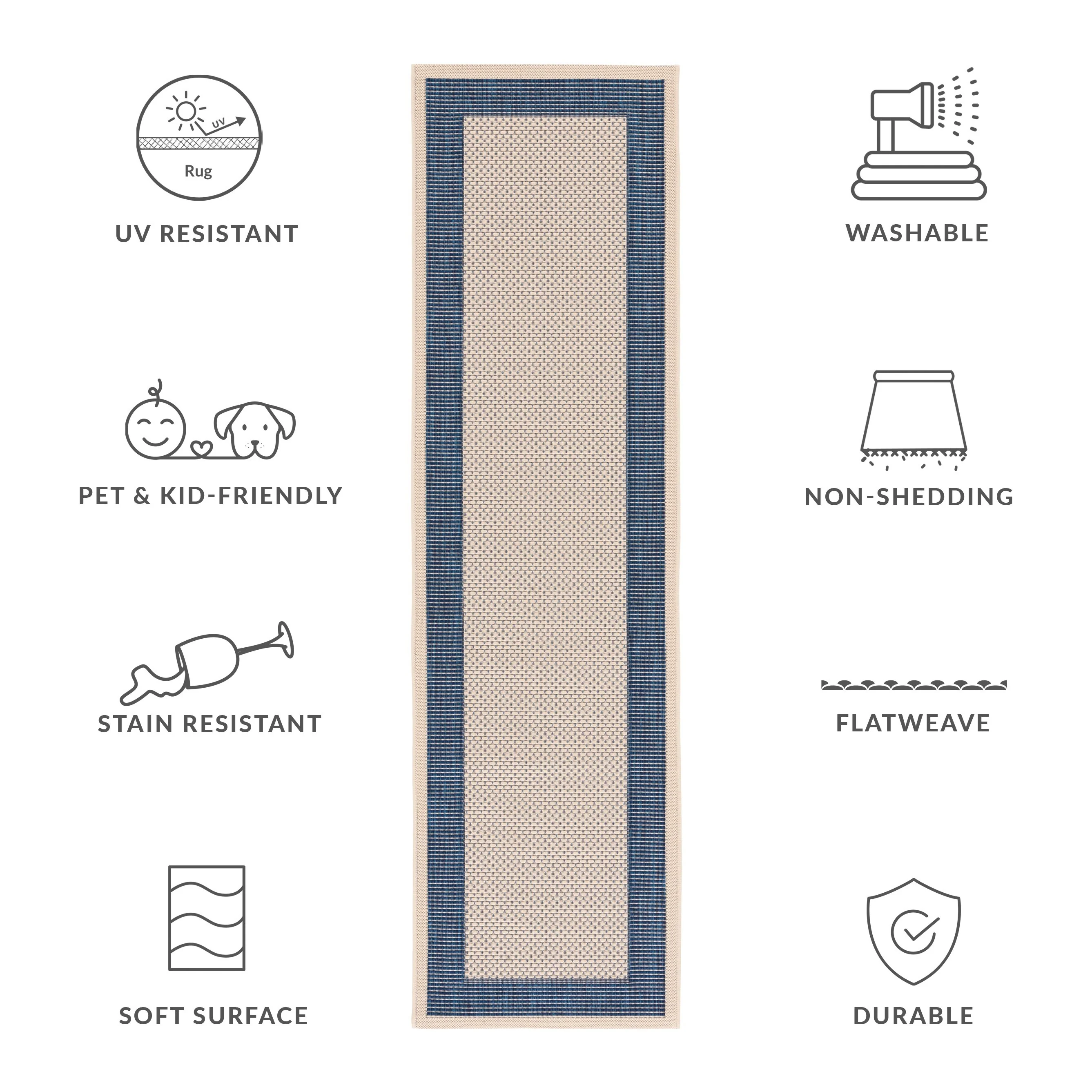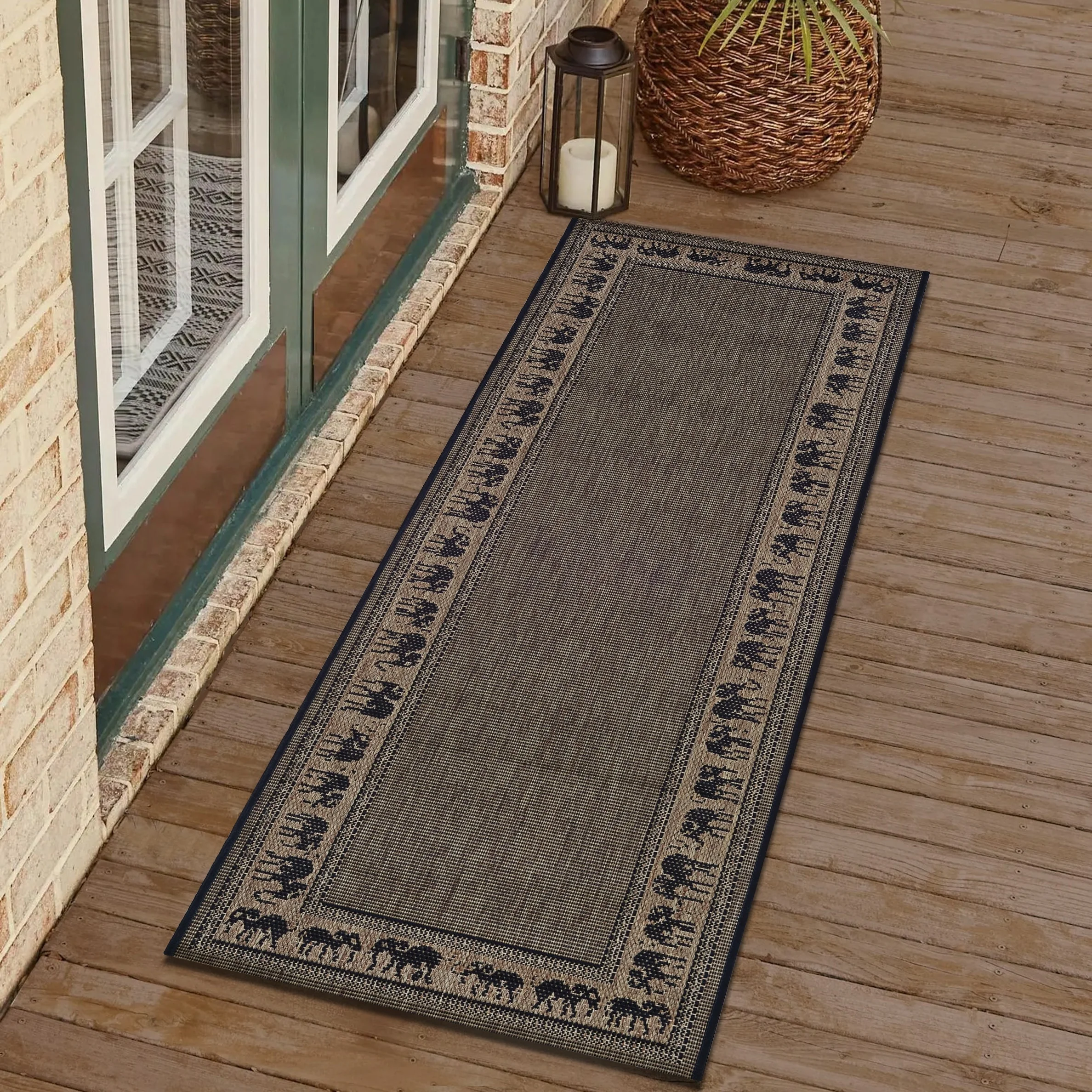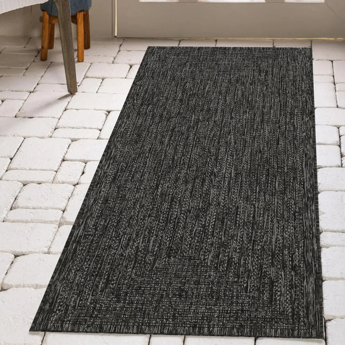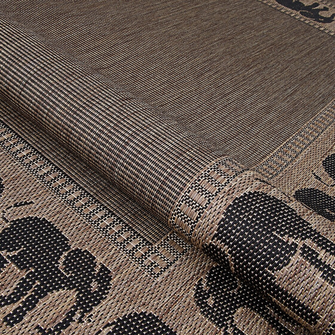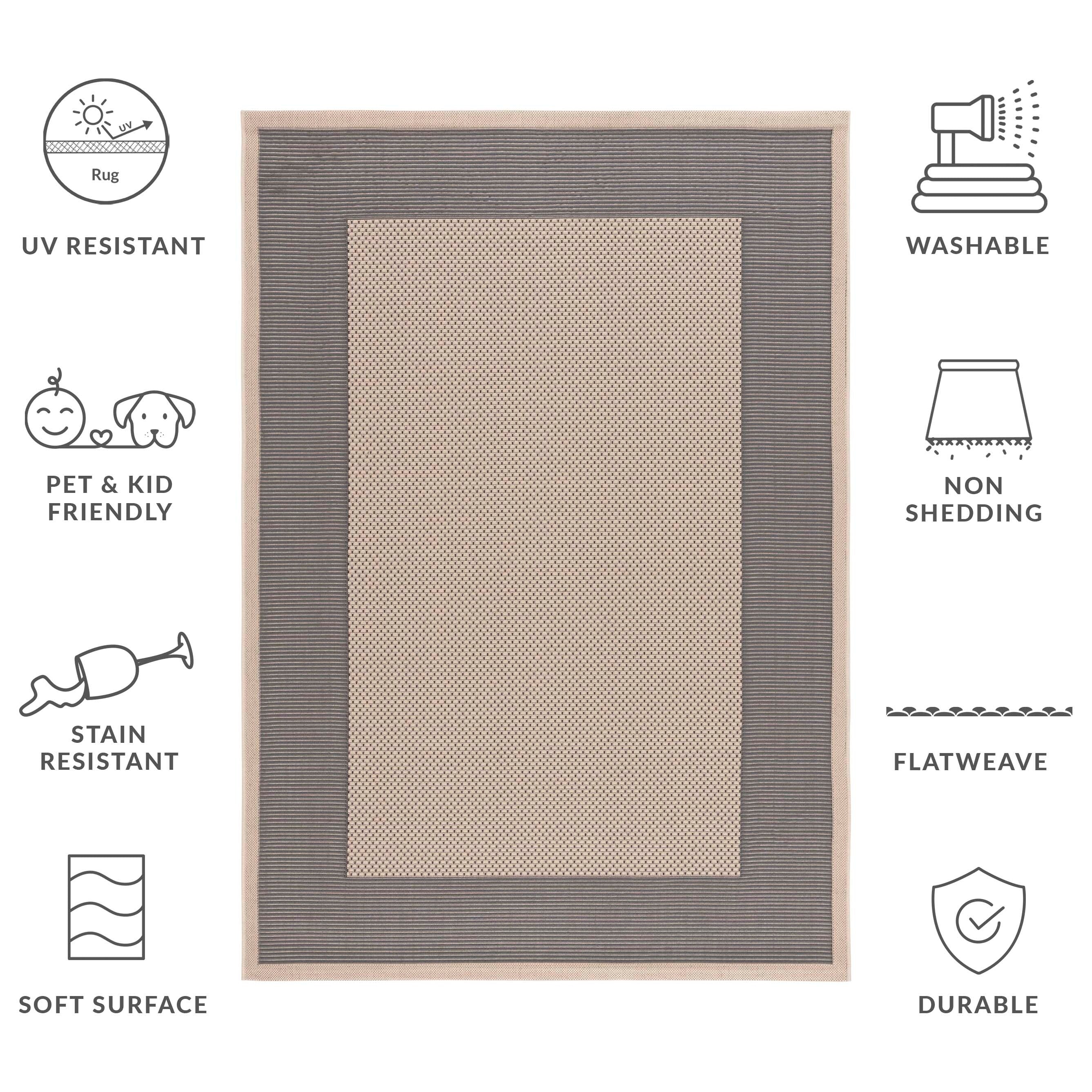 Indoor/Outdoor Area Rug/ Runner/ Doormat- Natural & Black & Red & Ivory Color -Machine Washable, Weather and UV Resistant-Viola