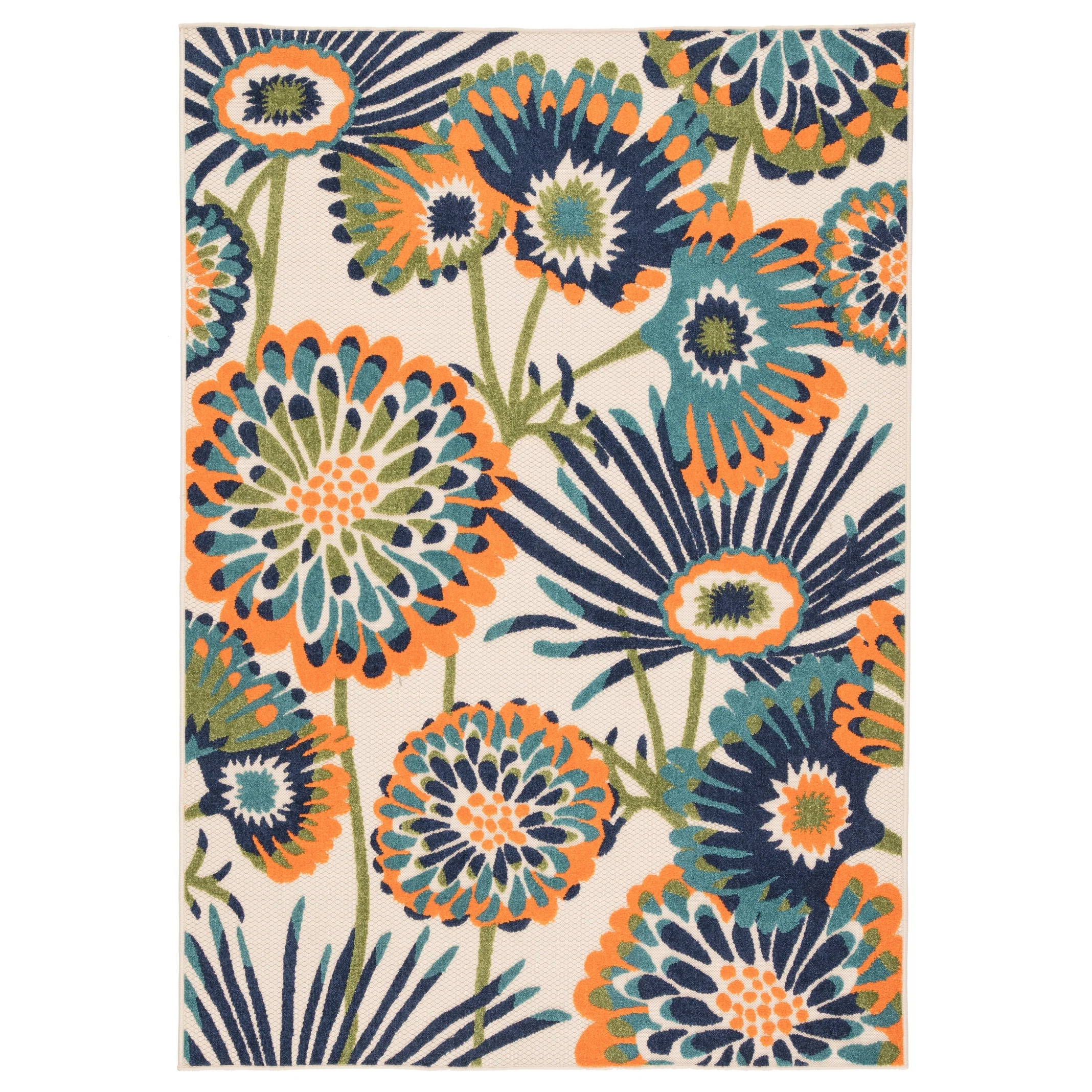 5' 3" x 7' 6" - Cream/Blue - Rectangle