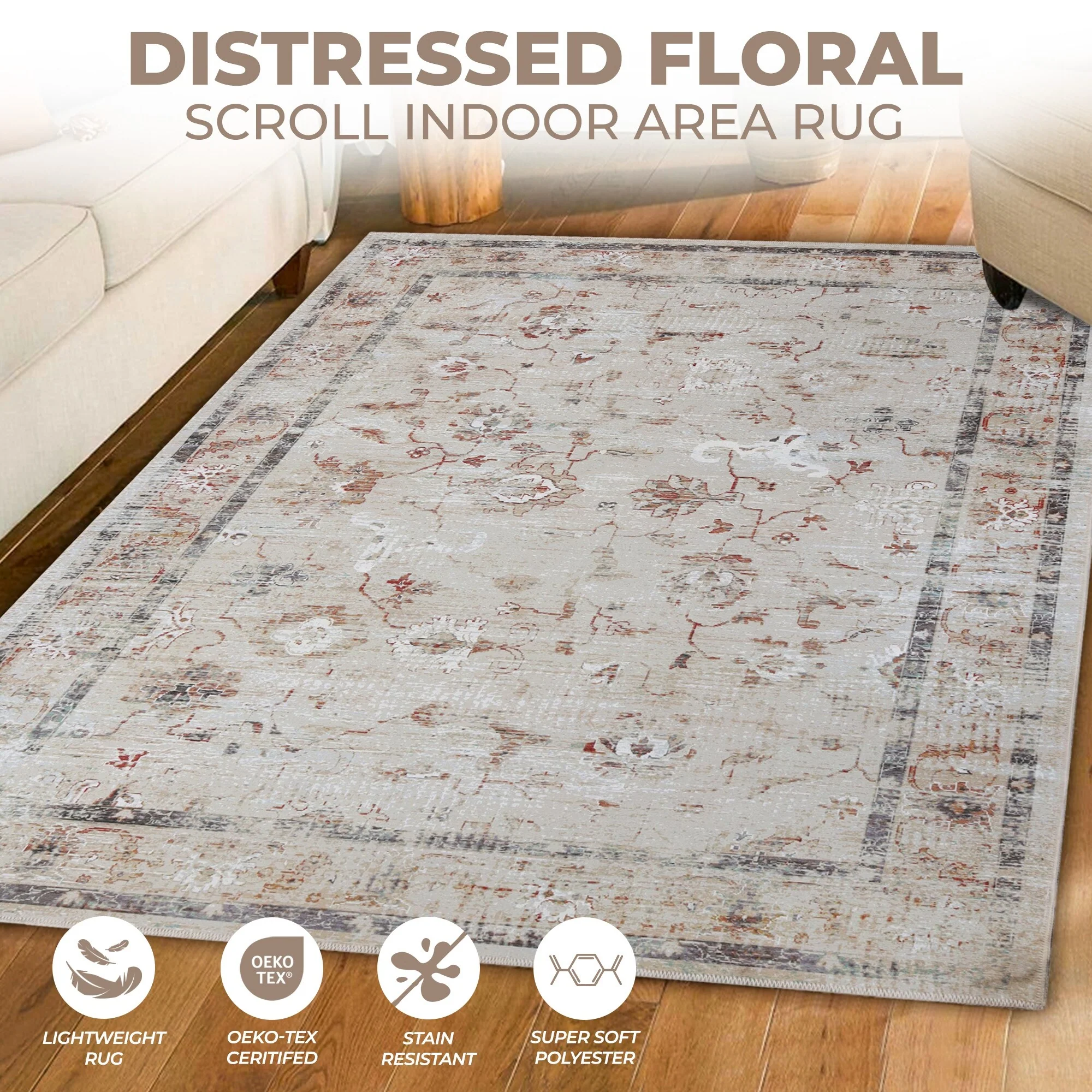 4' x 6' - Cream/Grey - Rectangle