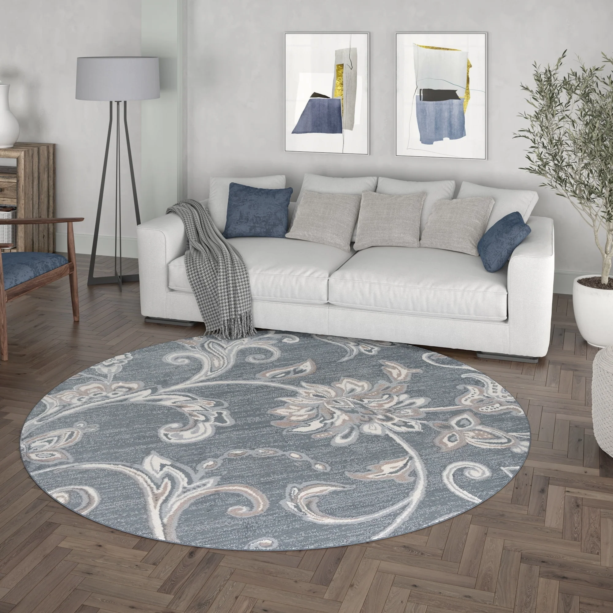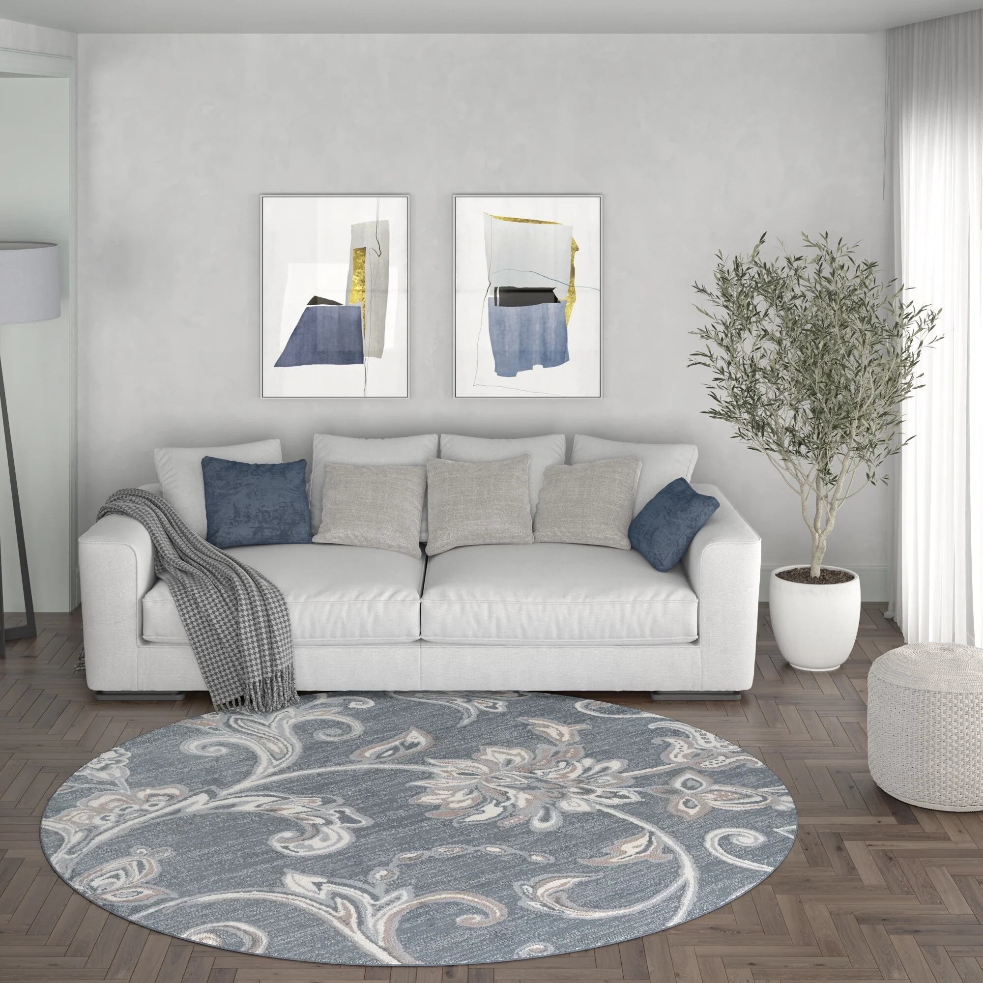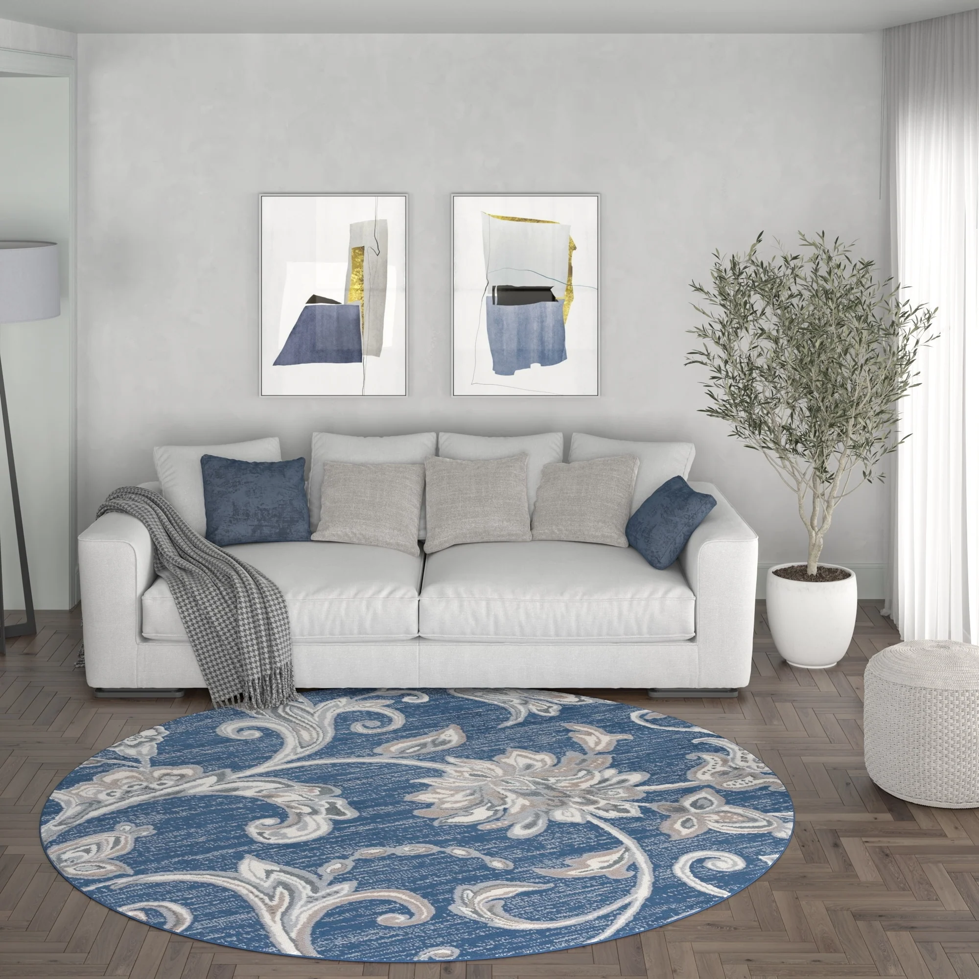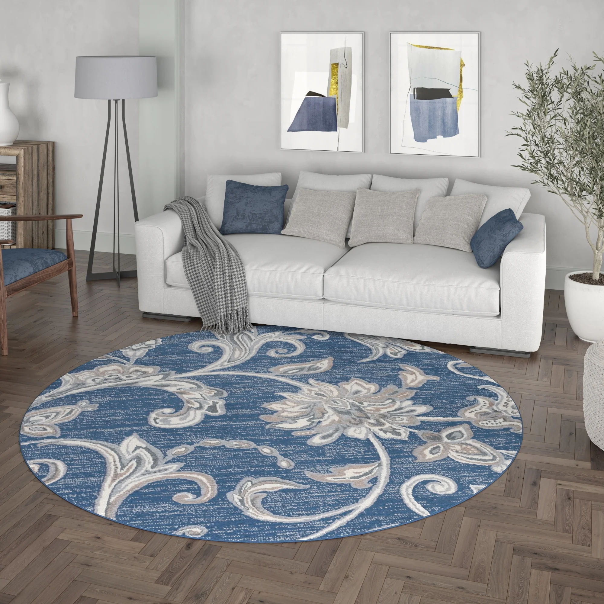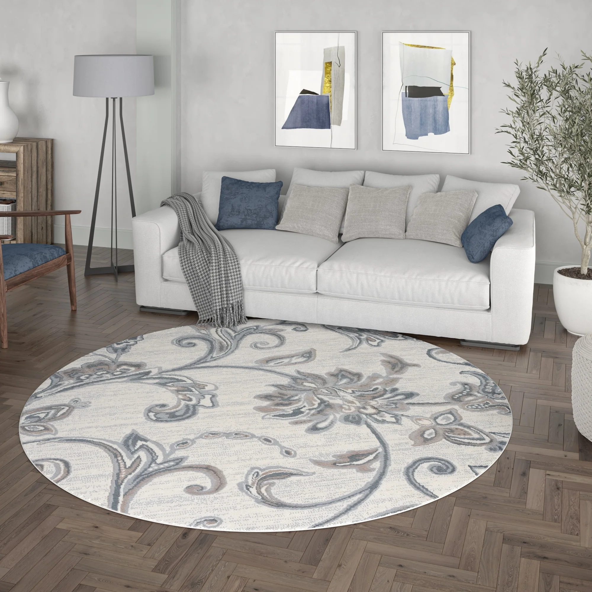 5' Round - Cream/Blue - Round