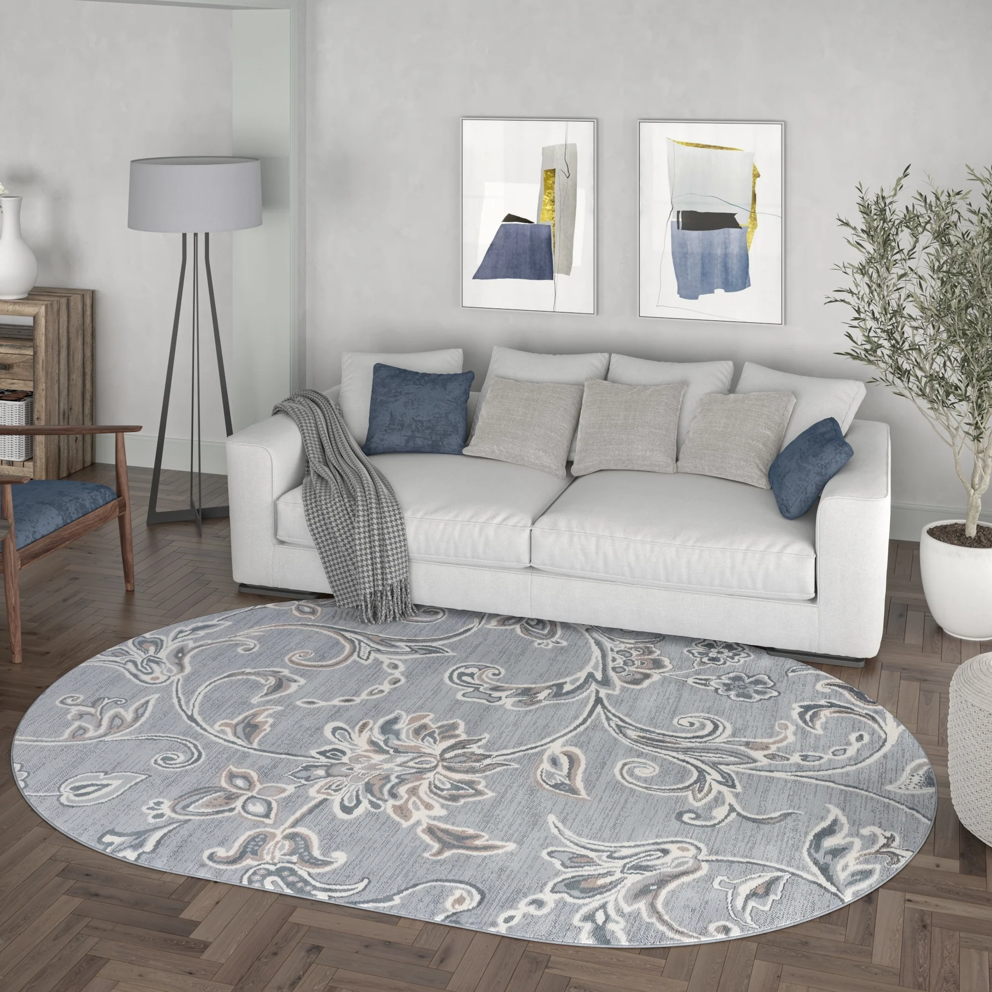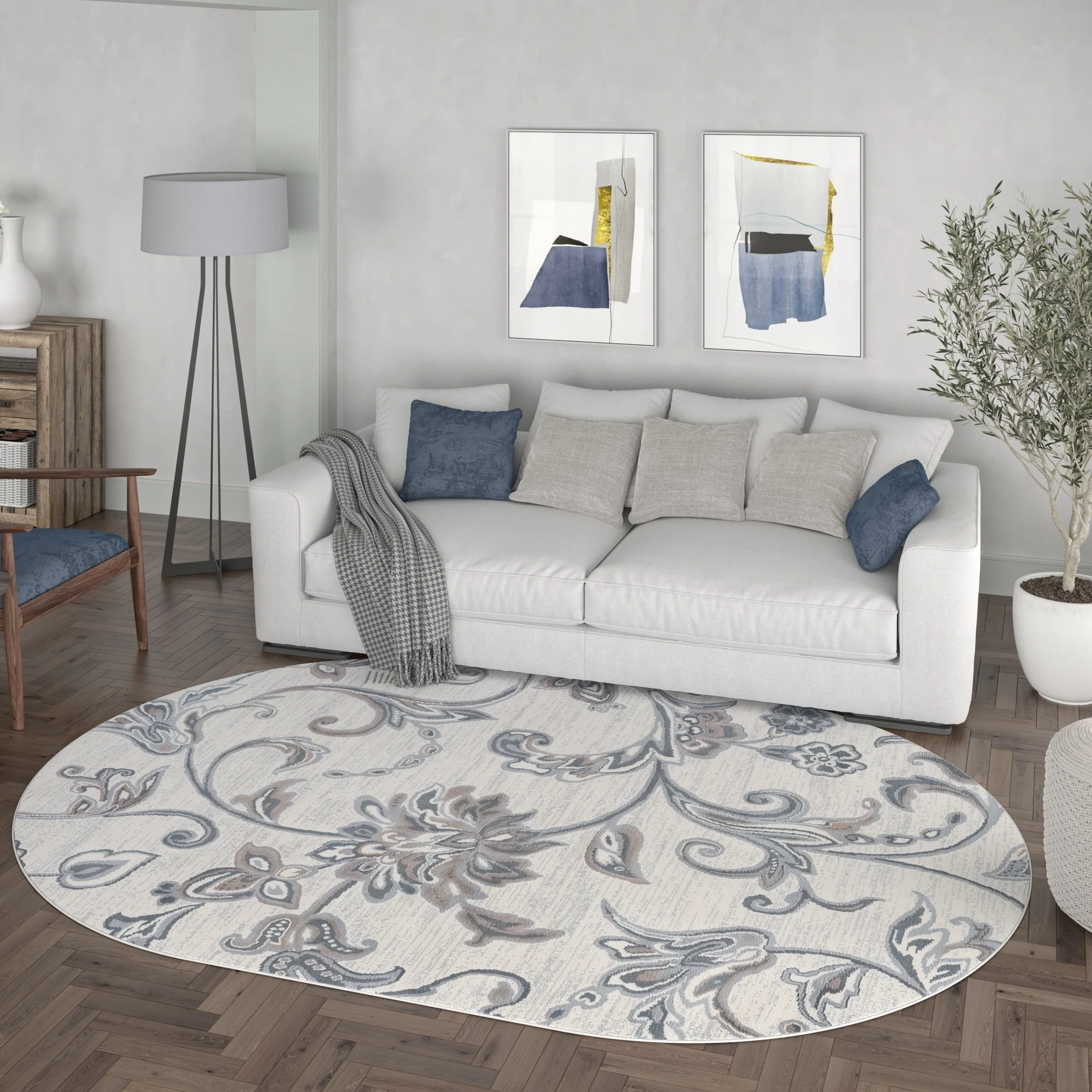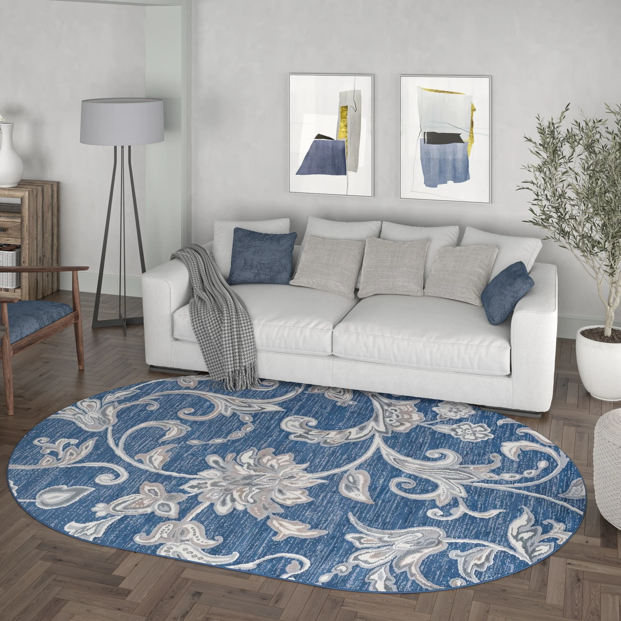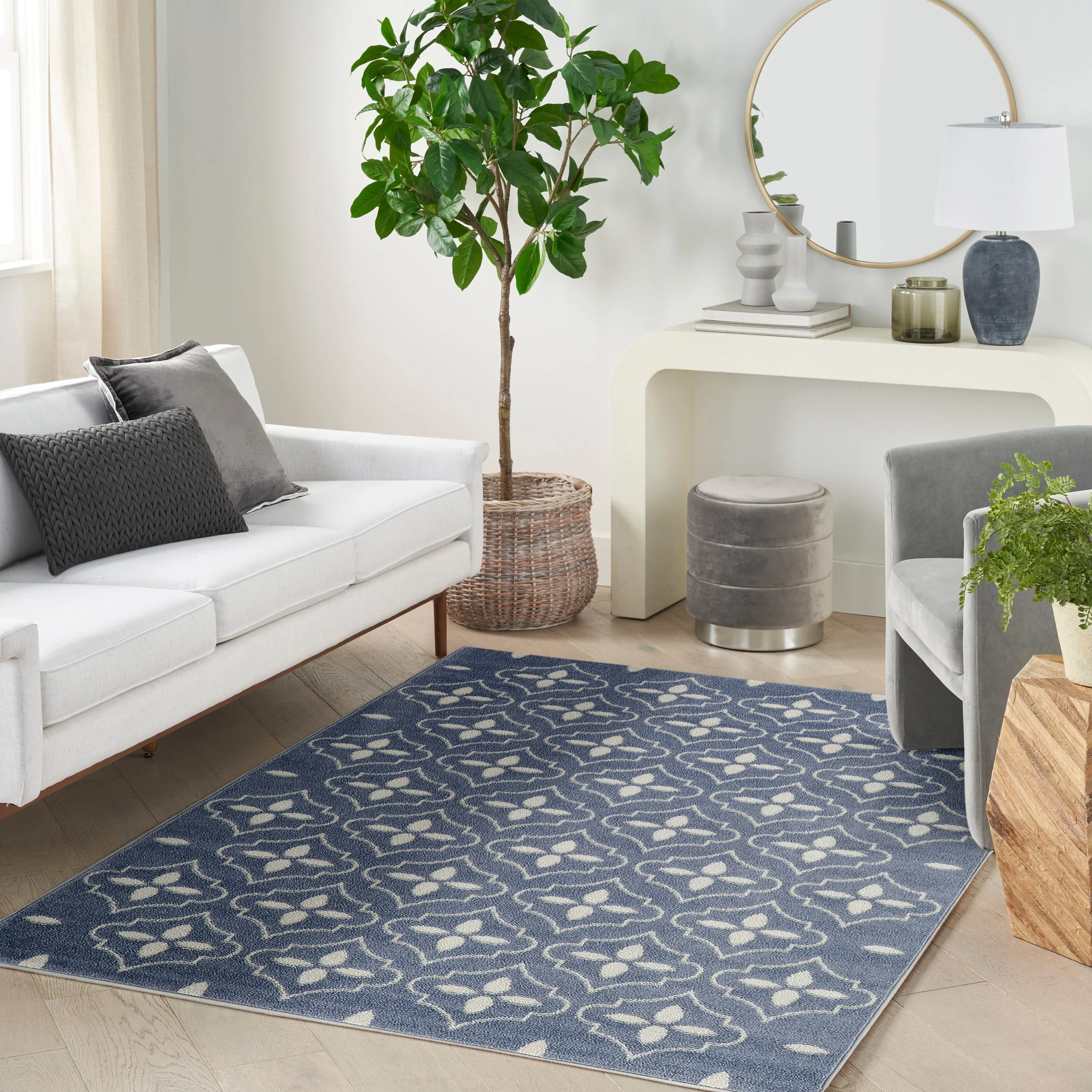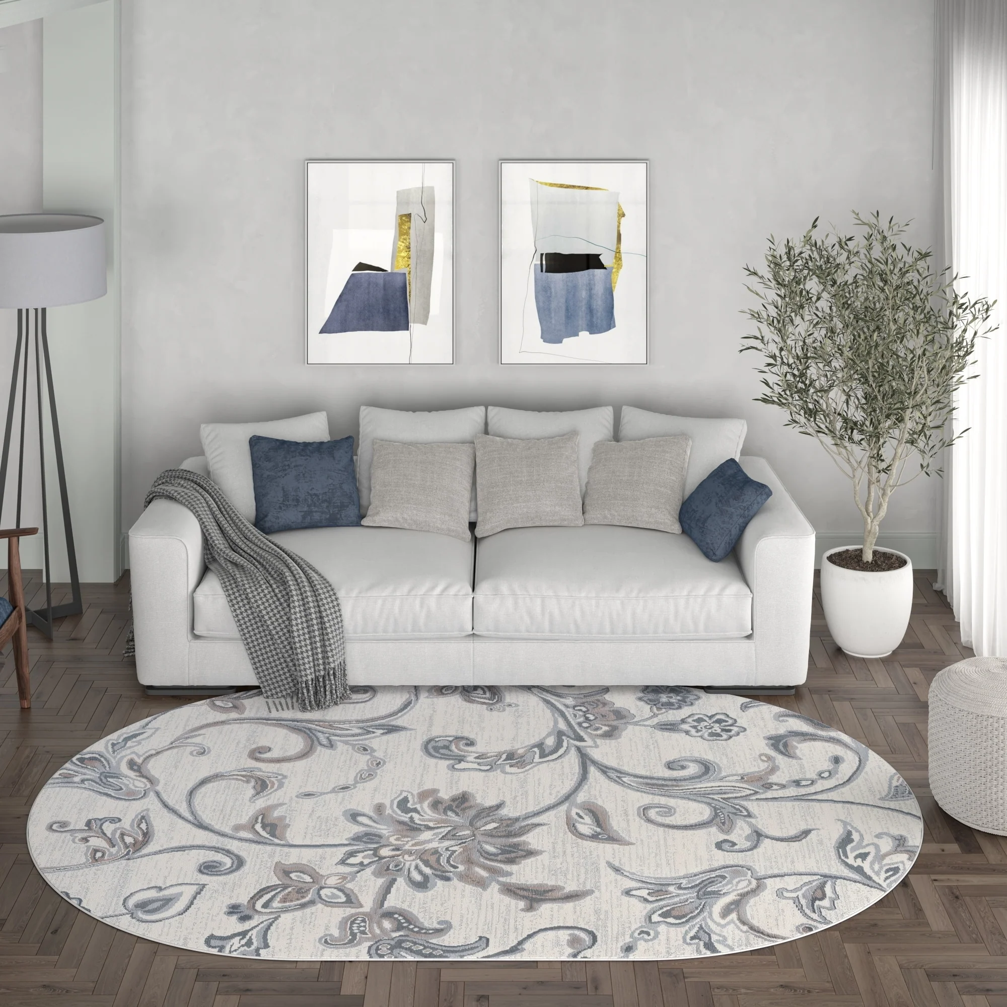 5' Round - Cream/Blue - Round
