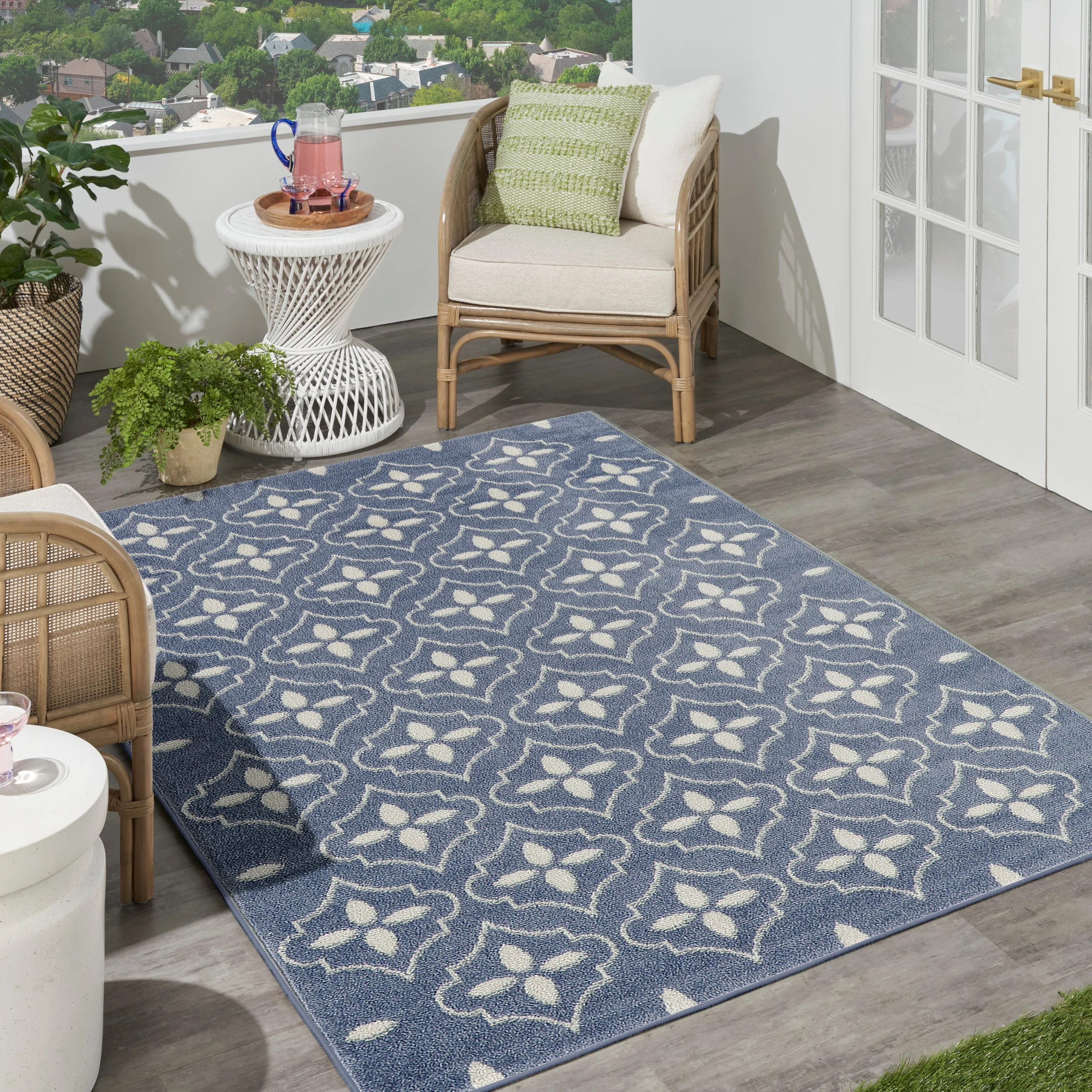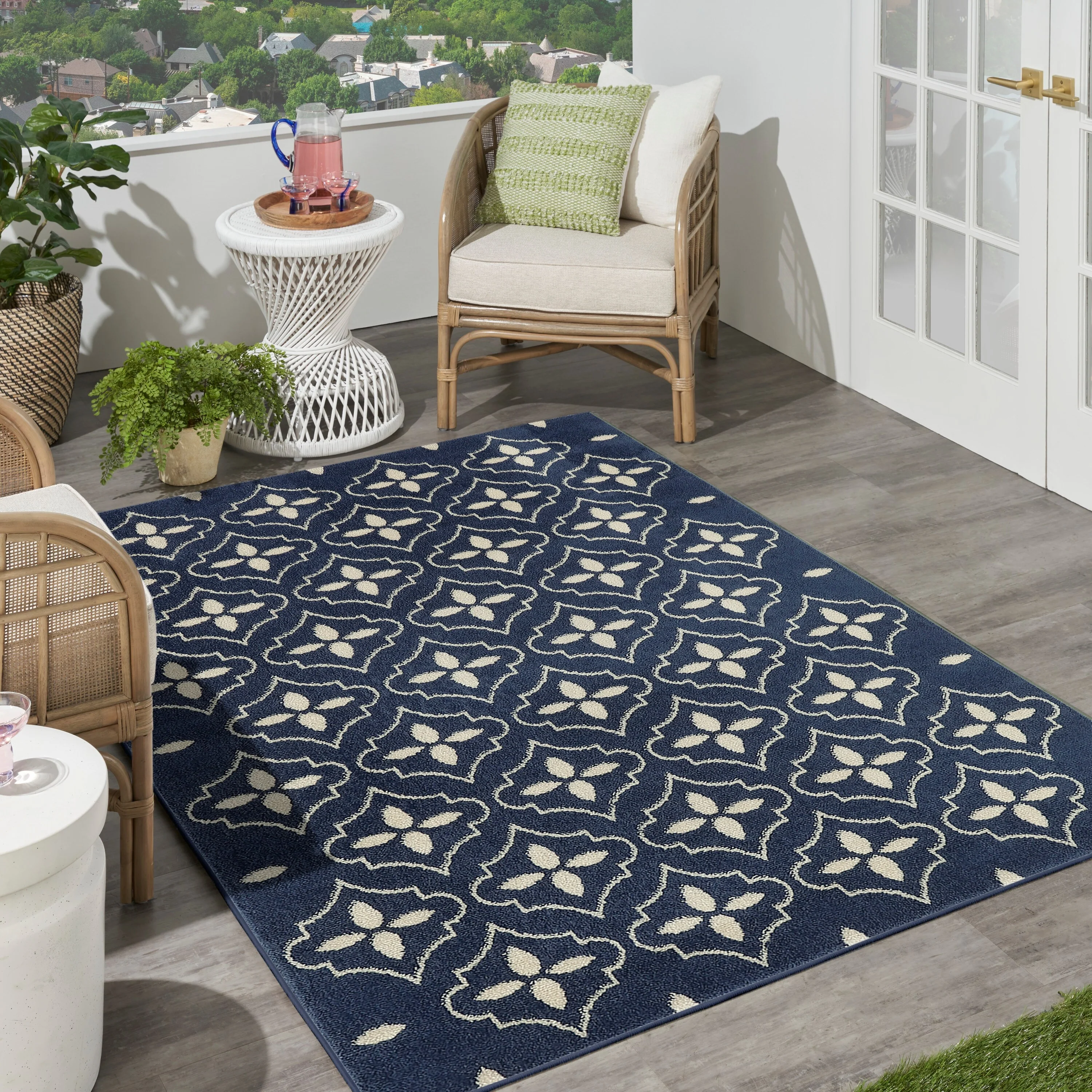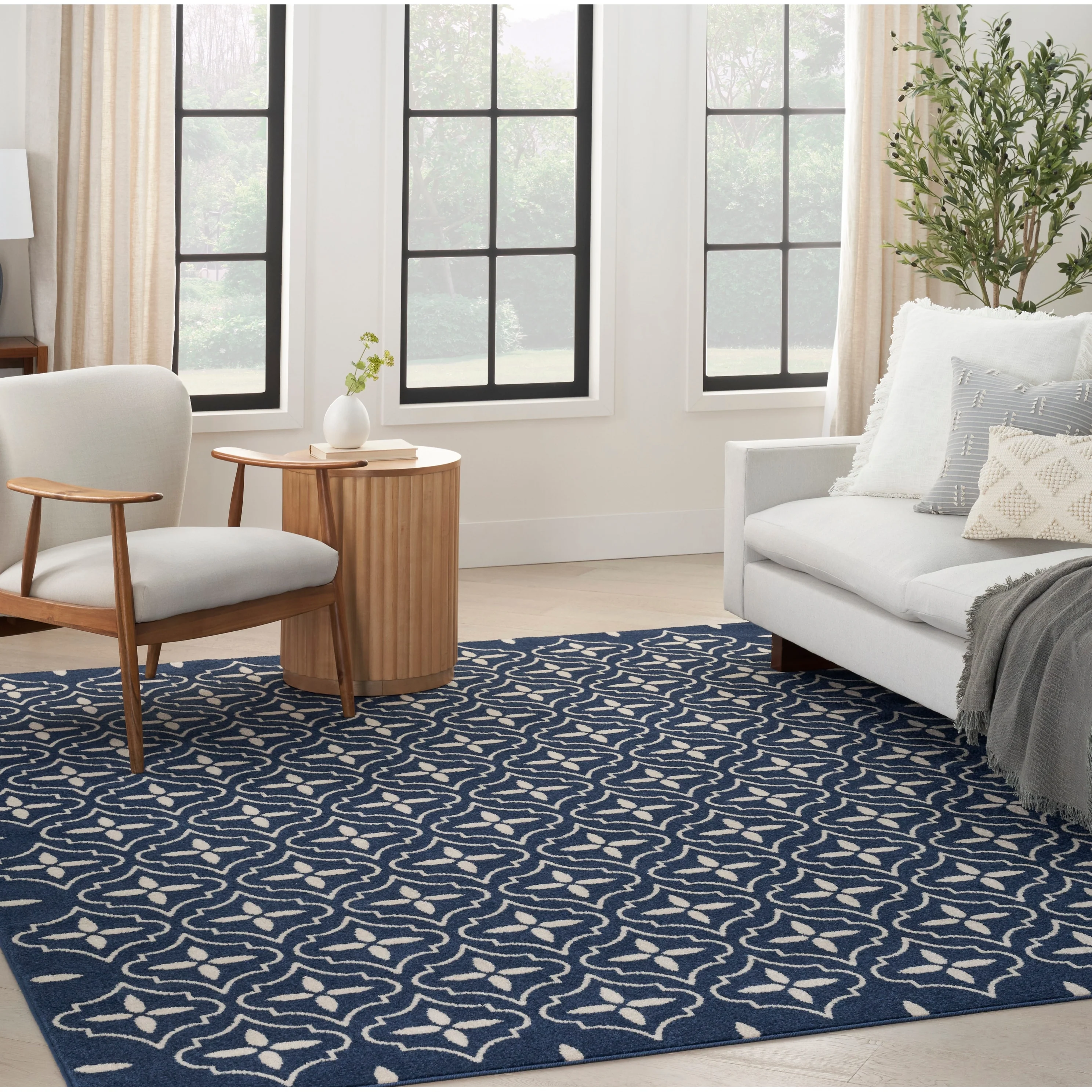 8' x 10' - Dark Blue/Cream - Rectangle
